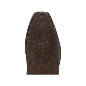 Crafted from rugged Elephant hide, this Western silhouette inherited its name from the mining town in Southwest Texas along the bluffs of the Rio Grande Valley, Terlingua. Untamed and wildly beautiful, the Terlingua takes the Muerte stitch pattern and cleverly reinterprets it as a skull. Midsoles are added to the boots to offer more stability and durability, affording their owner an extended lifetime of wear. Enriched by a whipstitch scallop detail, Terlingua is touch of elegance to an otherwise daring look. Handmade in Texas.