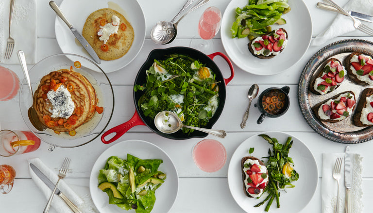 “I love the idea of a big table outside, dining with friends and family,” explains Meeker of her inspiration around the morning meal. “As a chef, our favorite time to dine is brunch because we work nights and dinner. We’re always cooking dinner, so it’s enjoyable to cook eggs and something a little different.”