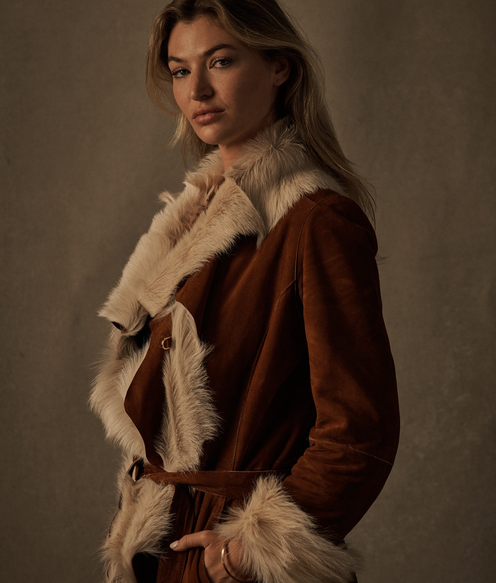 The Supreme Kid Coat is the ultimate western statement piece. Crafted from Goat Kidskin, this coat features an adjustable sleeve with a turnback cuff and a double unstructured edge that flows gracefully with you.