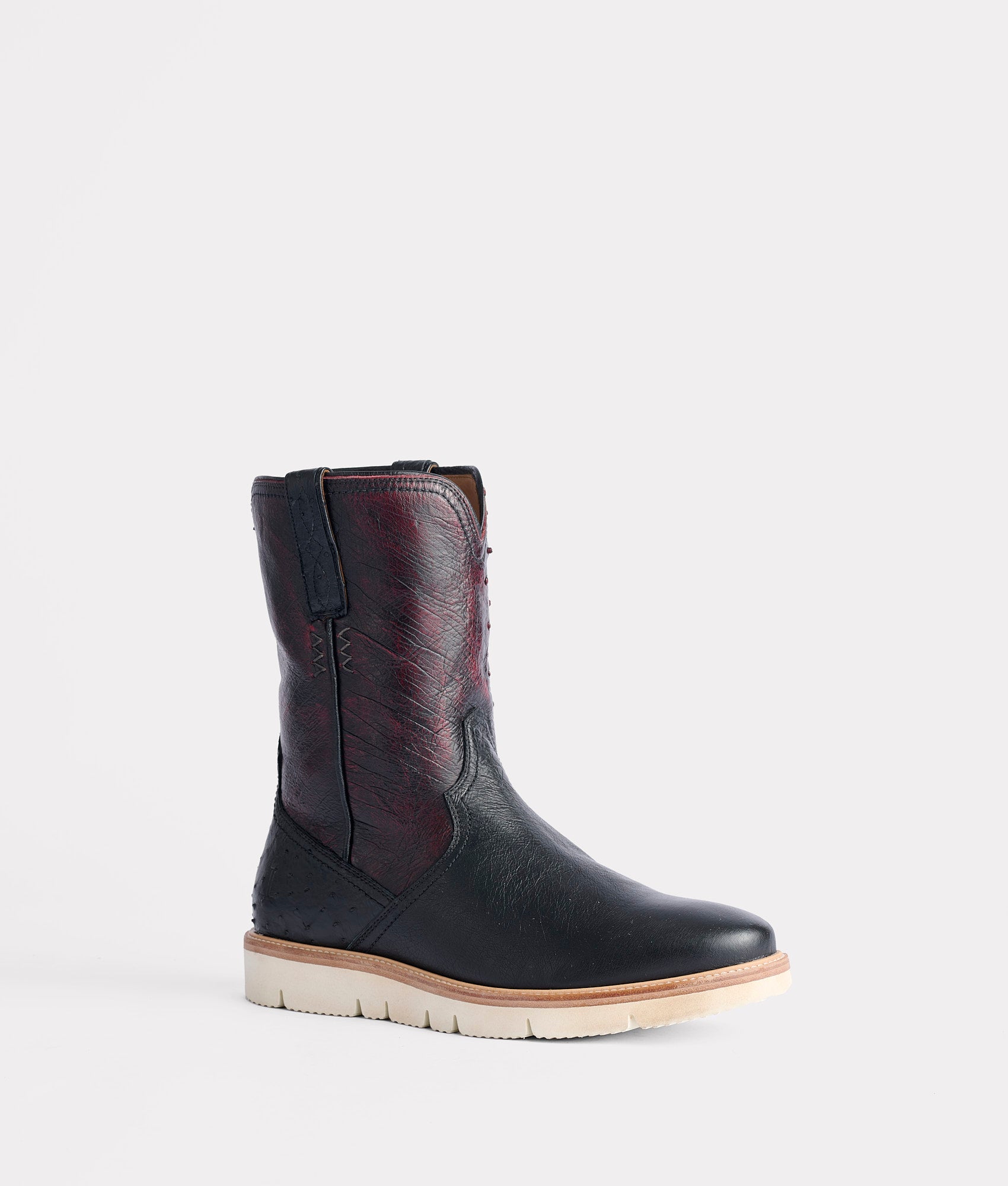 One outsole. Endless versatility. Named after the outdoor-inspired Ridgeline outsole, the collection was designed with the adventurer in mind – rugged and ready for action, but simultaneously subdued for casual occasions. Since 1883, Lucchese has abided by the unyielding principle, “Fashion Follows Function” – Smooth Ostrich all over and grit throughout. Pull on and push forward with this 9 ½-inch-tall silhouette made from the most rugged materials. But rugged doesn’t always mean rough… internally, that is. Whether it’s muddy trails or slippery sidewalks, our team prioritizes comfort by utilizing the softest, most durable components – curated to a lifestyle that bridges the gap of mild and wild. The wedge Ridgeline outsole offers maximum anti-slip grip from the aggressive tread pattern. Get and go where boots have never tread before. Impromptu expeditions and planned excursions are why our team developed this collection. Summit your Ridgeline!