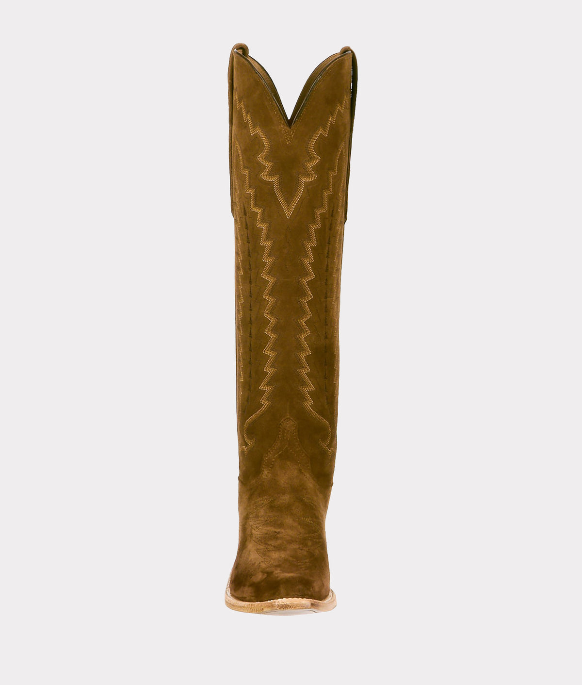 Our No. 1 bestselling boot for women, Priscilla walks an elegant line between timeless classic and cowgirl chic. The vintage-inspired Tioga stitch pattern harks back to yesteryear, but Priscilla is a boot built for today. This knee-skimming, pull-on silhouette handcrafted from Maracca suede deserves the spotlight under dresses and over jeans. Handmade in Texas.