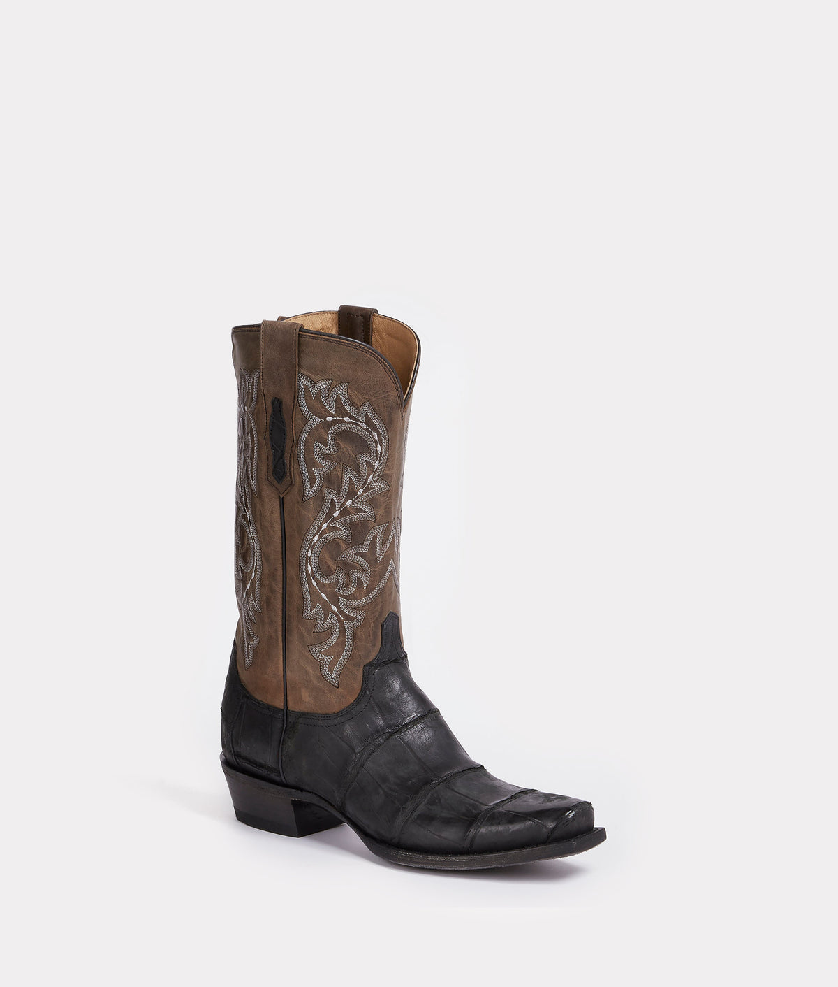 The Burke is a Western silhouette founded on the beauty of age. Handcrafted from distressed Giant Alligator leather, tile for tile, the Burke is a Lucchese staple that deserves a spot in the cowboys closet.
