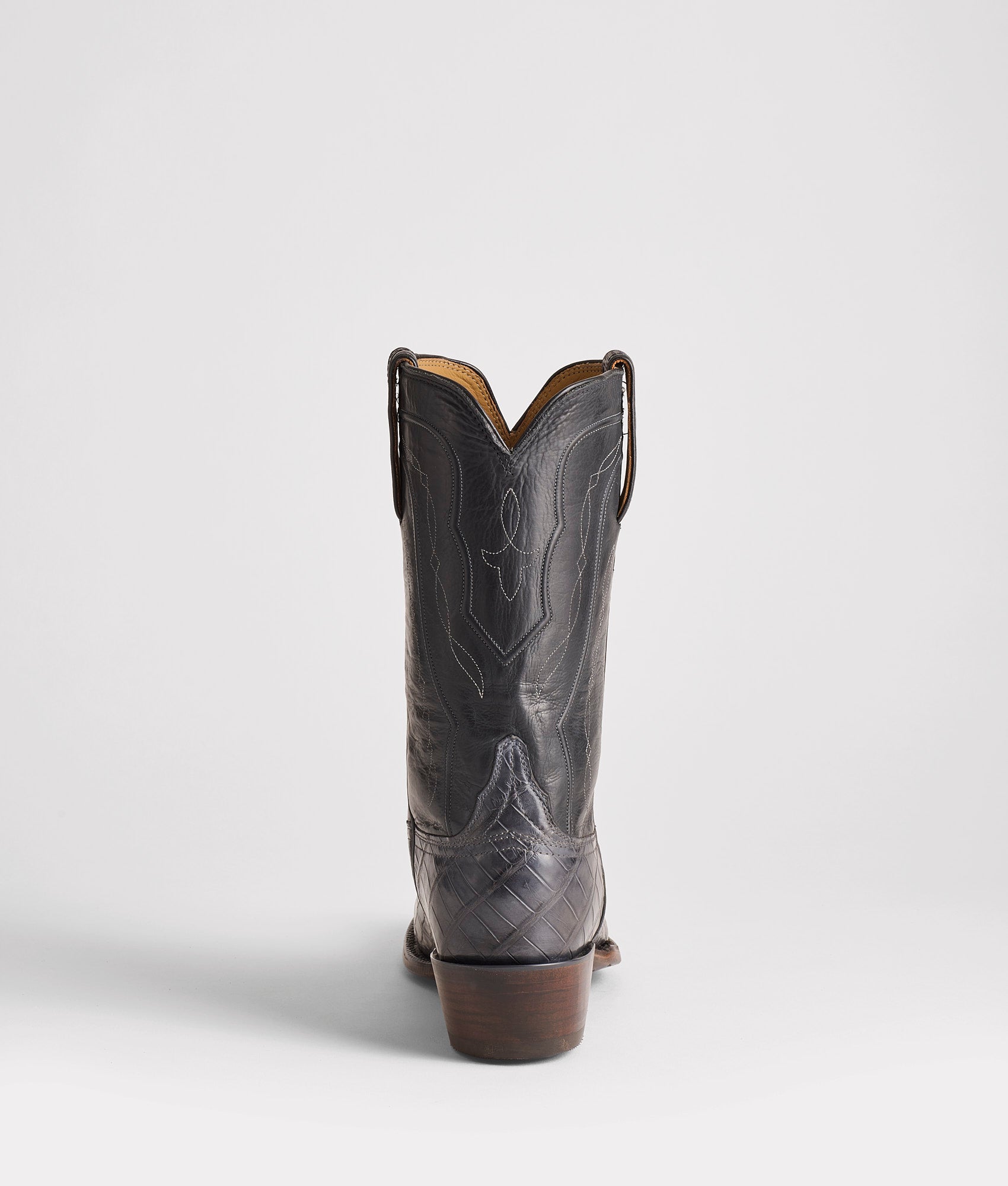 Part of Chris Stapleton's Volume II collection, the Original Exotic is a style pulled directly from the archives just for Chris. Reminiscent of vintage Lucchese construction and design, the Original is slightly modified with shorter 11-inch quarters to provide that lived-in feel. The detailed Del Rio cord pattern on the quarters overflow into the vamp with a Moc Cord construction. These American Alligator vamped boots with Royal Calf quarters offer a one-of-a-kind fit and feel for the all-American man. Handmade in Texas.