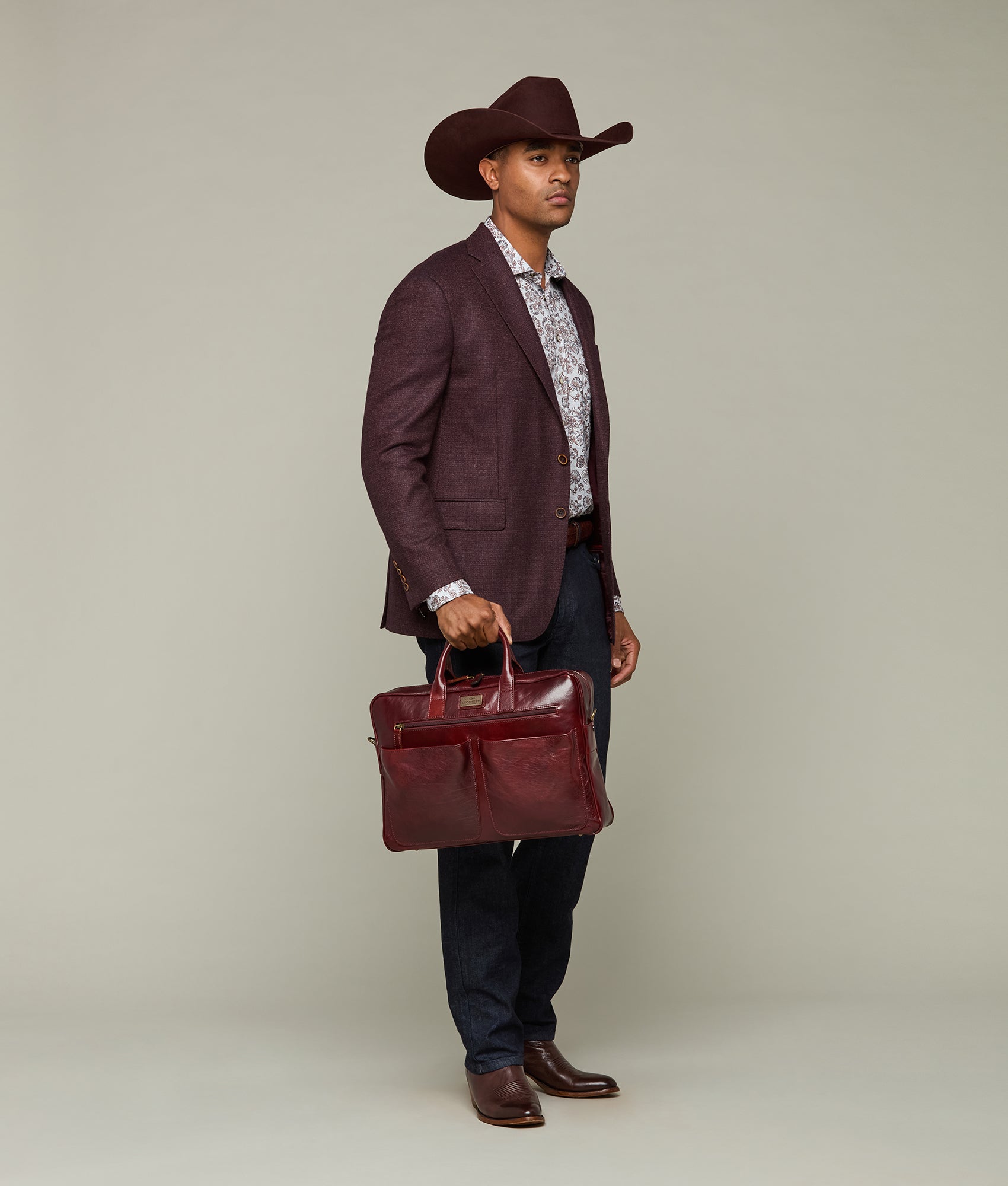 The Cosimo Briefcase, named in honor of our second-generation bootmaker, exemplifies exquisite craftsmanship and timeless design. An Italian veg-tanned body is equipped with dual side pockets, a side-zip, and an antique gold-plated Lucchese badge. From business trips to vacations, our Cosimo Briefcase confidently brings you into the conference room. Made by the best Italian artisans from the finest leather. Handmade in Italy.