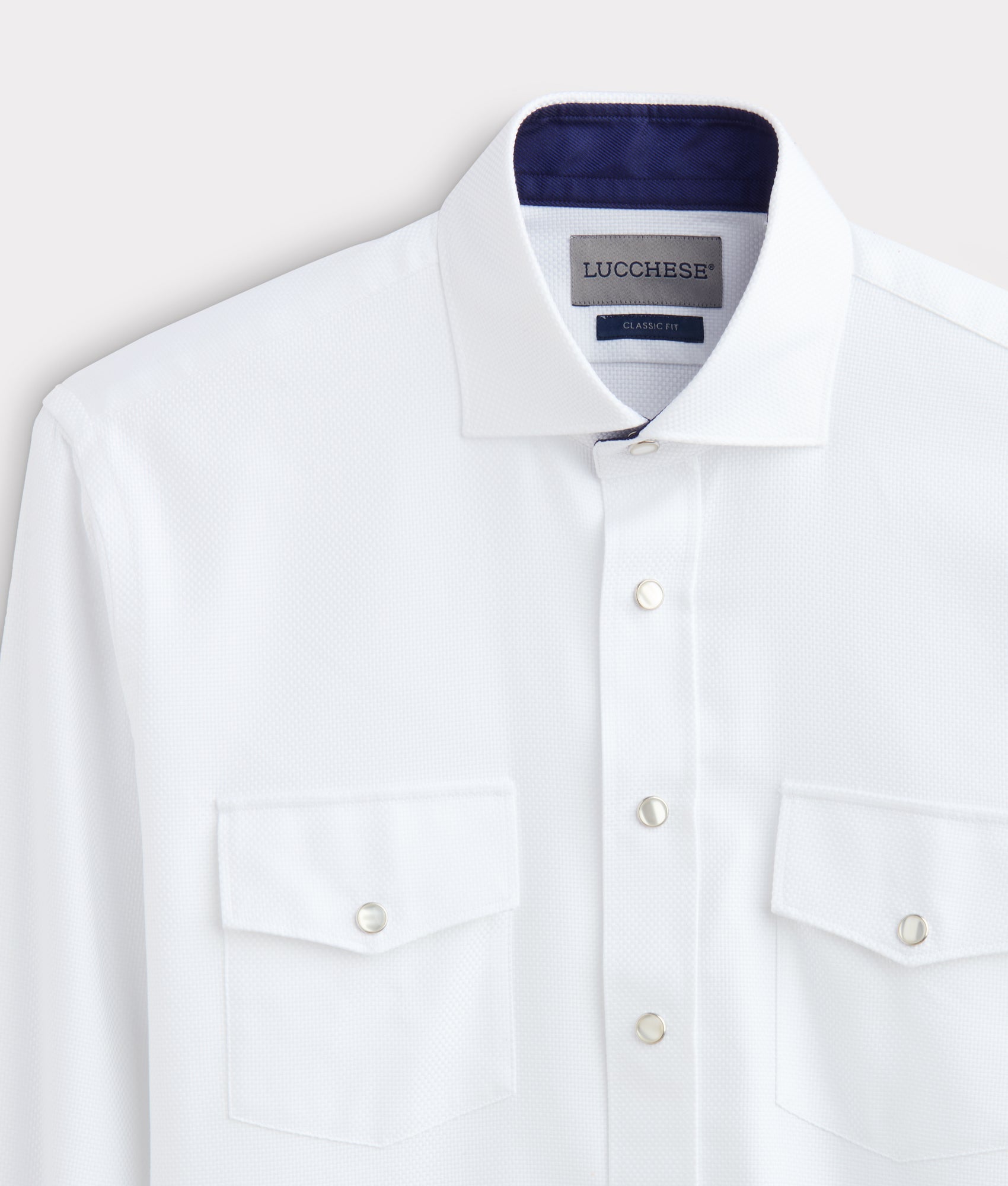 Named for the Texas city where Lucchese’s renowned bootmaking factory resides, the El Paso blends Western utility with refined design. Defined by its snap-front closure, dual chest pockets, and barrel cuffs, it embodies the character of its namesake. The modern fit is slim through the chest and waist, with narrower shoulders and shorter sleeves. It’s designed for lean builds who prefer a contemporary profile.
