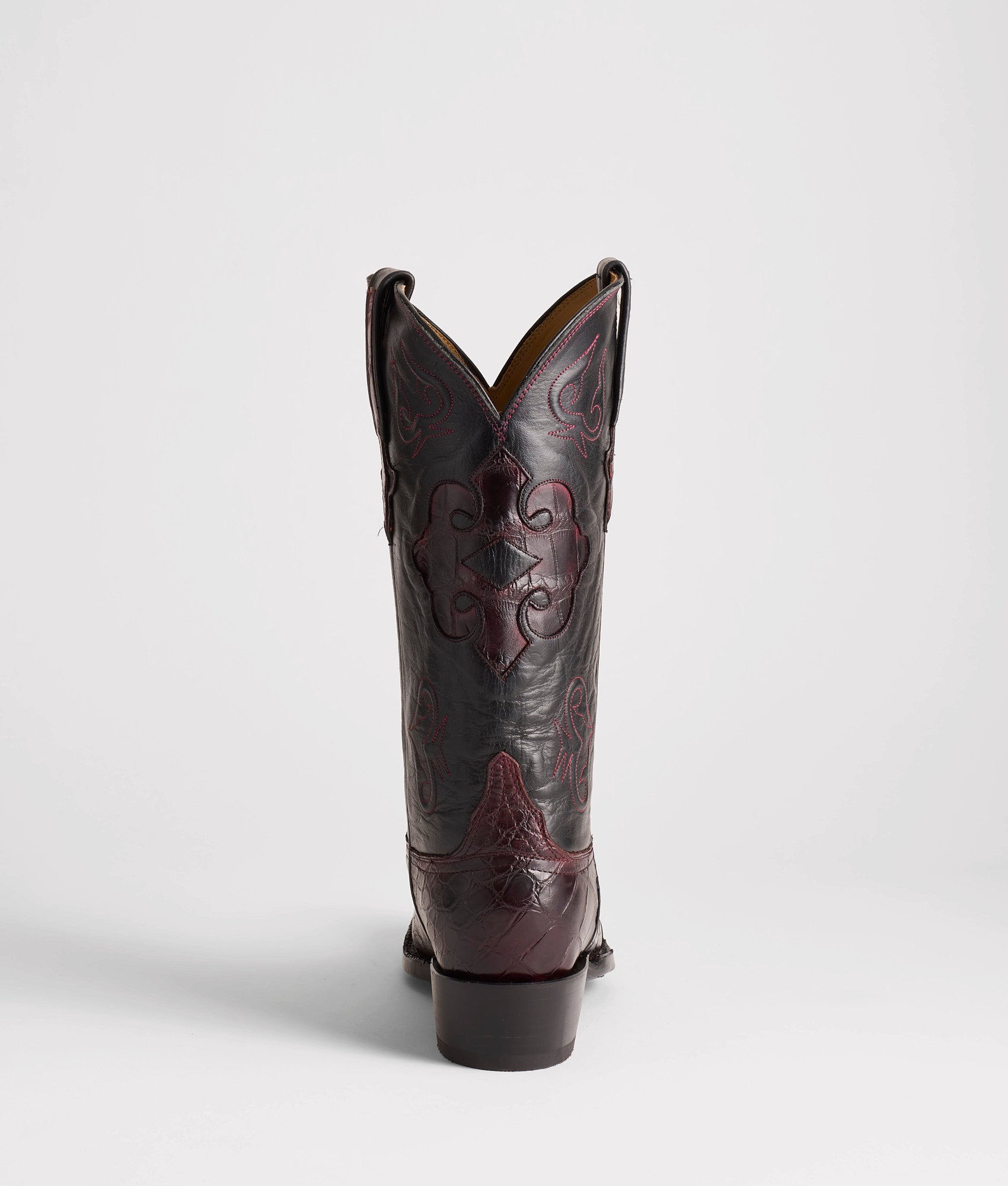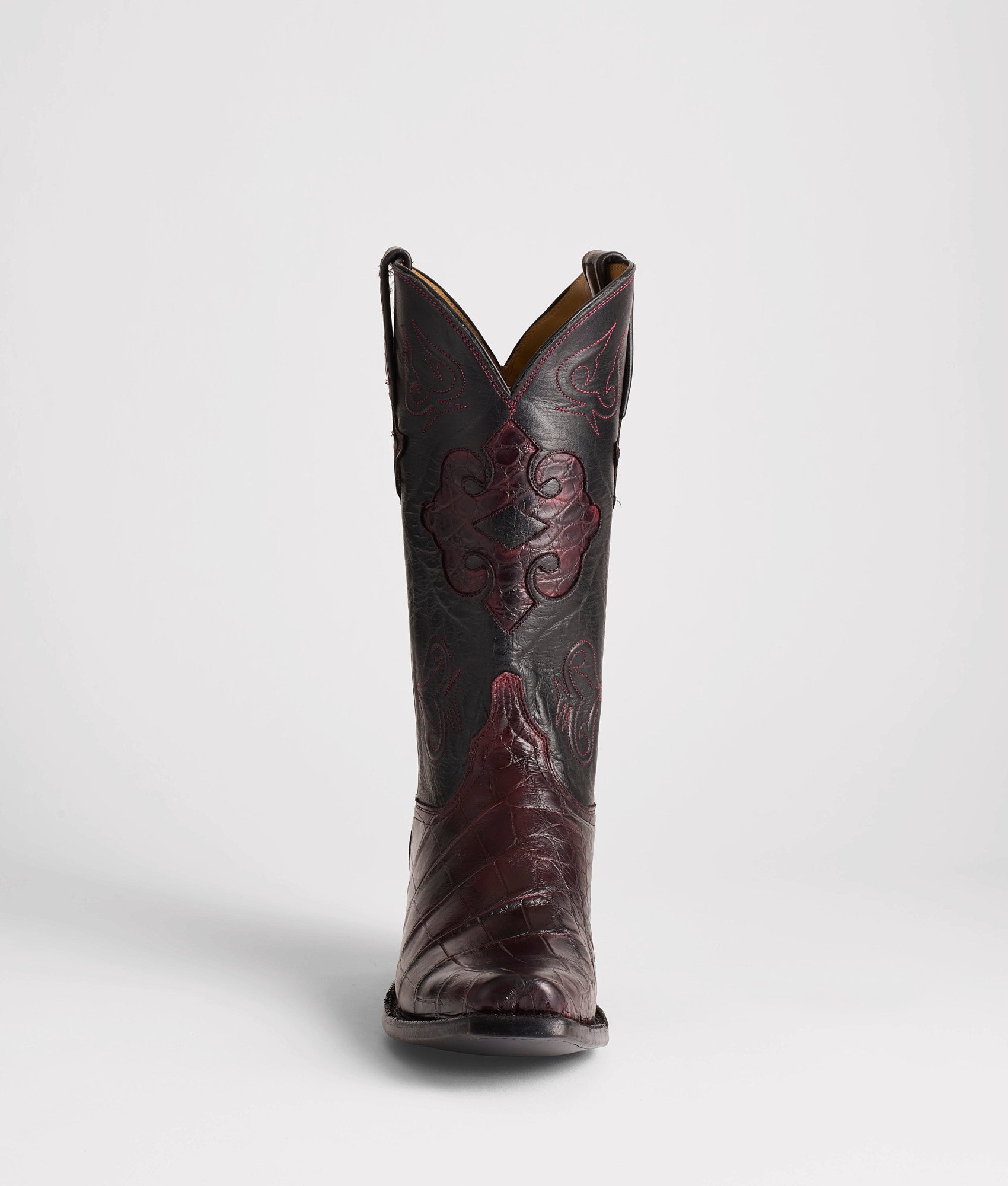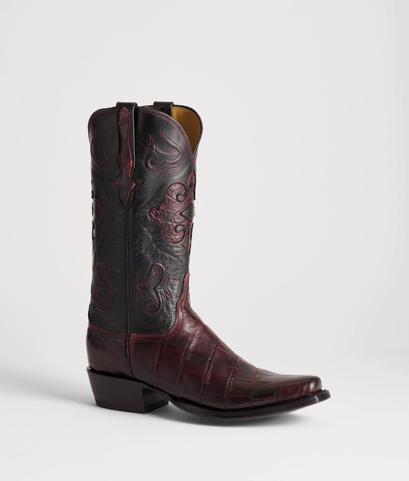 The Mission is a Texas cowboy boot shaped by Spanish influence that stretches back to the 1600s. Crafted in brand-new, hand-stained Wild-Caught American Alligator, it carries the soft, even grain of American Alligator, enriched by the subtle scars and gnarly character of its Wild-Caught Giant Gator counterpart. Paired with Bovine quarters, it perfectly balances softness and durability. Kennedy pull straps with Alligator overlays and cording adornments accentuate the intricate Mission inlay. Available in a range of colors and toe shapes, there’s a style for every discerning gentleman. Handmade in Texas.