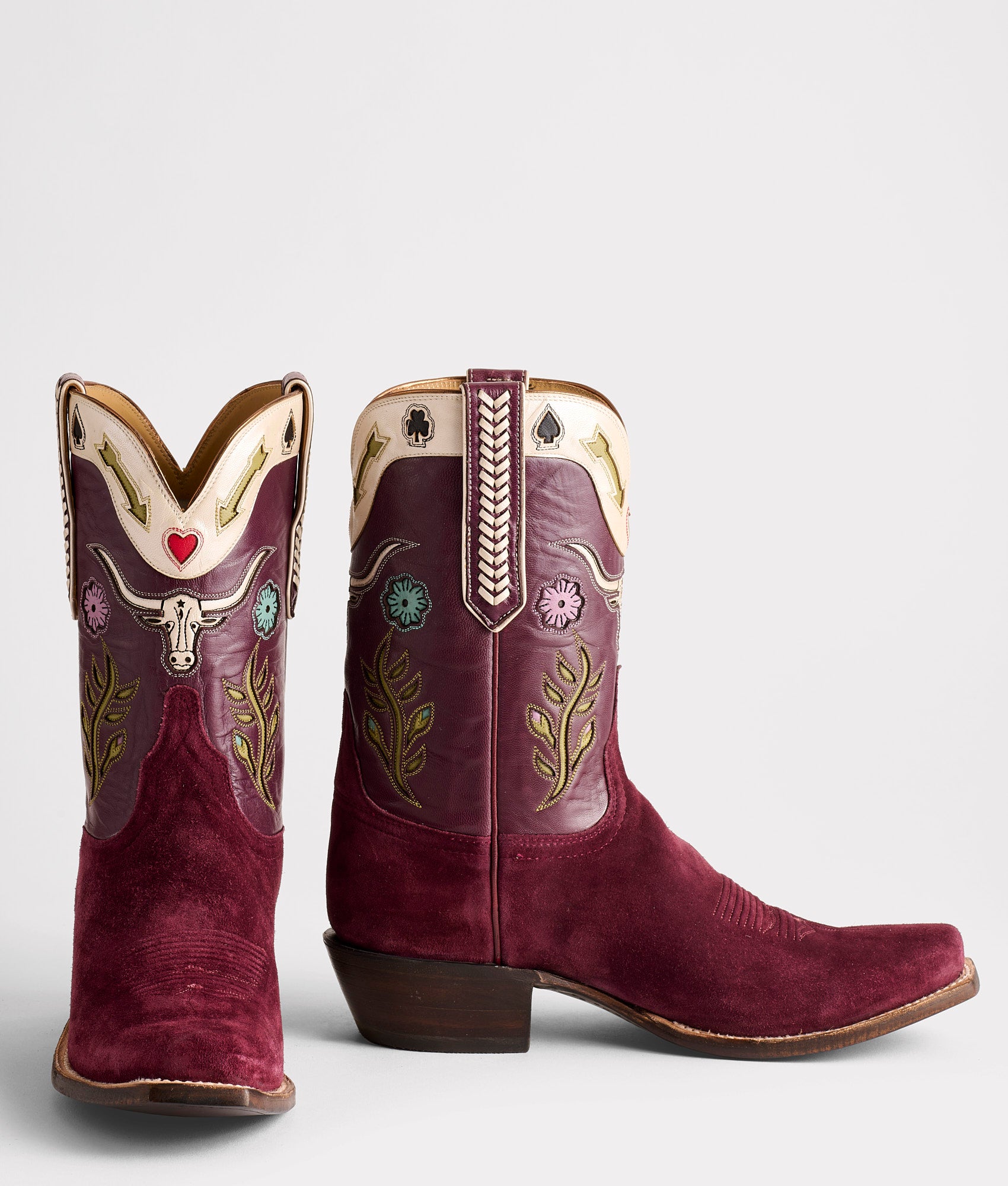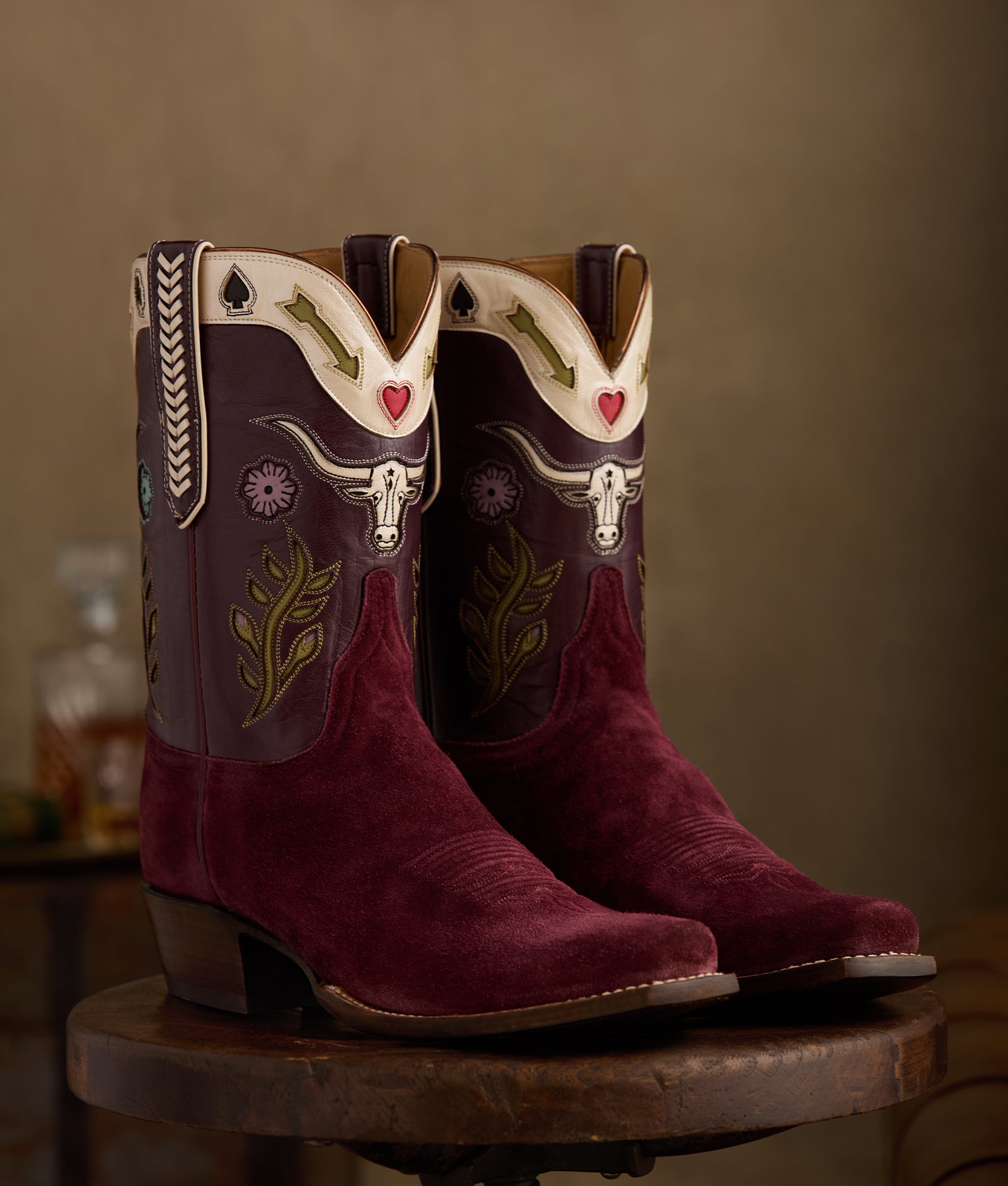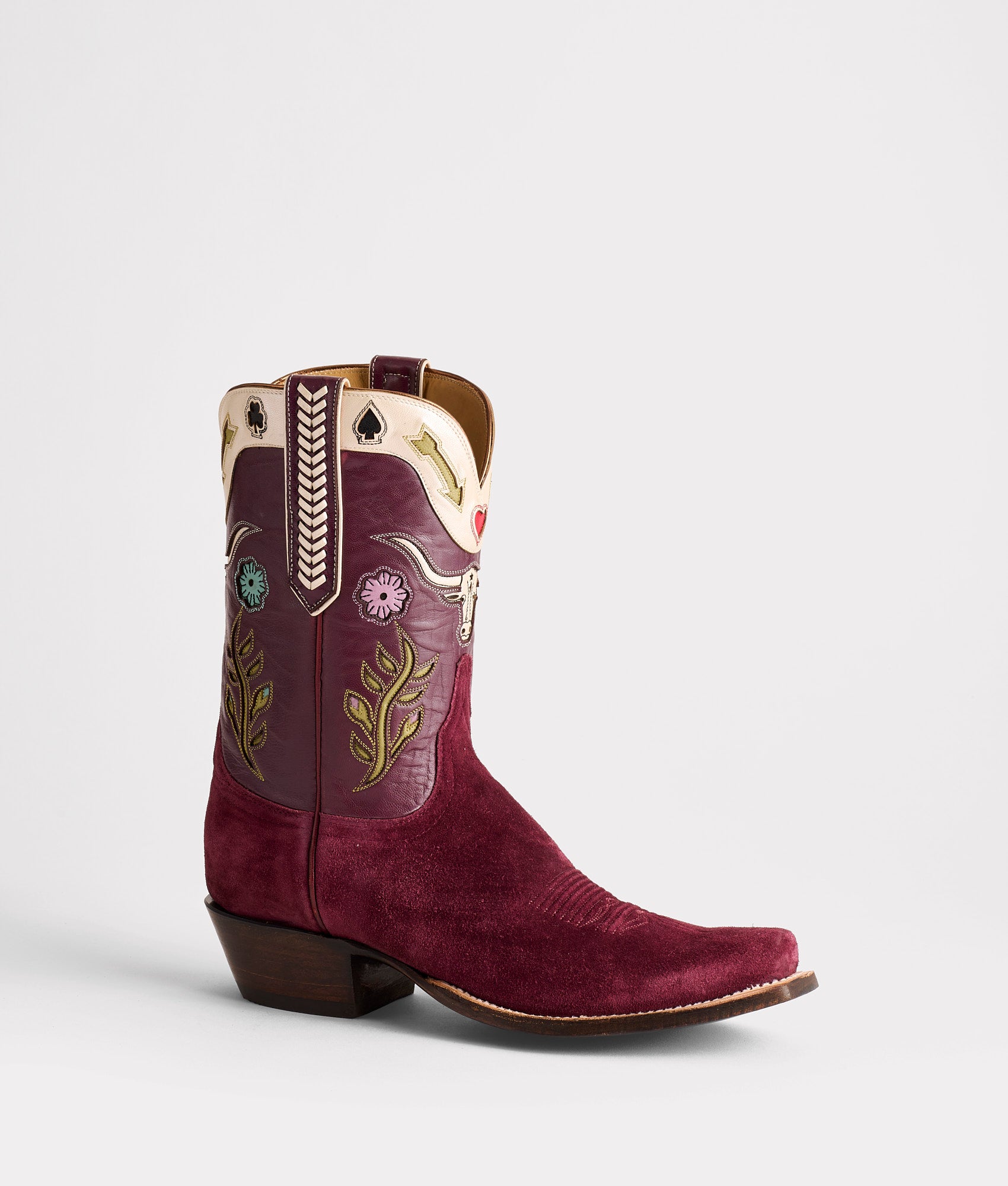 The Watchman is a quiet guardian—a hybrid style that keeps a low profile yet holds your gaze. Its muted base, crafted from smooth Ranch Hand leather and silky Italian Suede, is accented with pops of color in the Victorino inlay. This eclectic contrast reveals itself only when the moment calls. The Watchman merges the shaft height of a roper with the toe and heel of a western boot, creating a thoughtful balance between two classic silhouettes. Traditional cowboy hues anchor the vamp, refined and understated under denim. But cross your legs, and the quarter’s vibrant inlays reveal themselves—subtle, intentional, and quietly confident. This boot doesn’t seek attention but stands guard, protecting, preserving, and enduring the West. Handmade in Texas.
