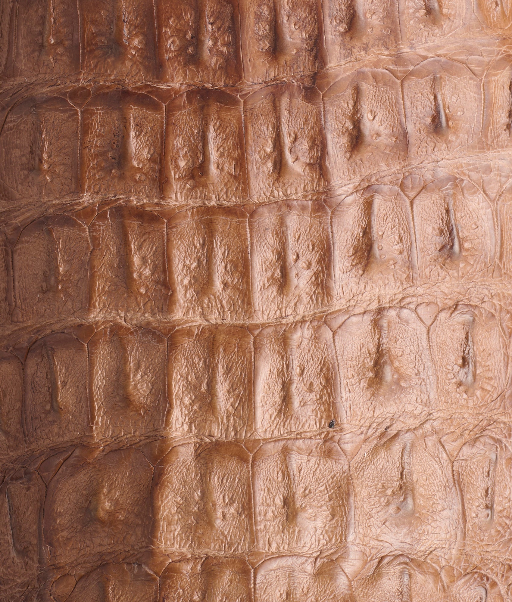 We craft boots from several cuts of this crocodilian: belly, ultra belly, and hornback. Ultra belly is ultra smooth; belly is only slightly less so. Abrasion-resistant hornback is heavily textured, with deep, tall ridges. The most recent caiman in the Lucchese family, giant caiman has larger tiles than the other varieties. All these crocodilians hold firm around the foot, even after repeated wear.