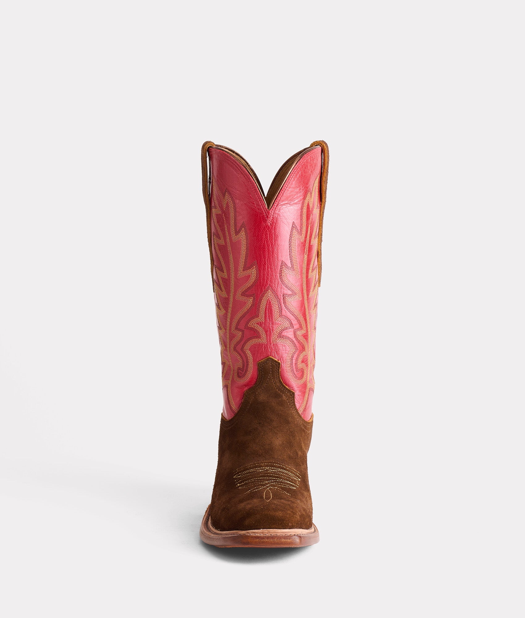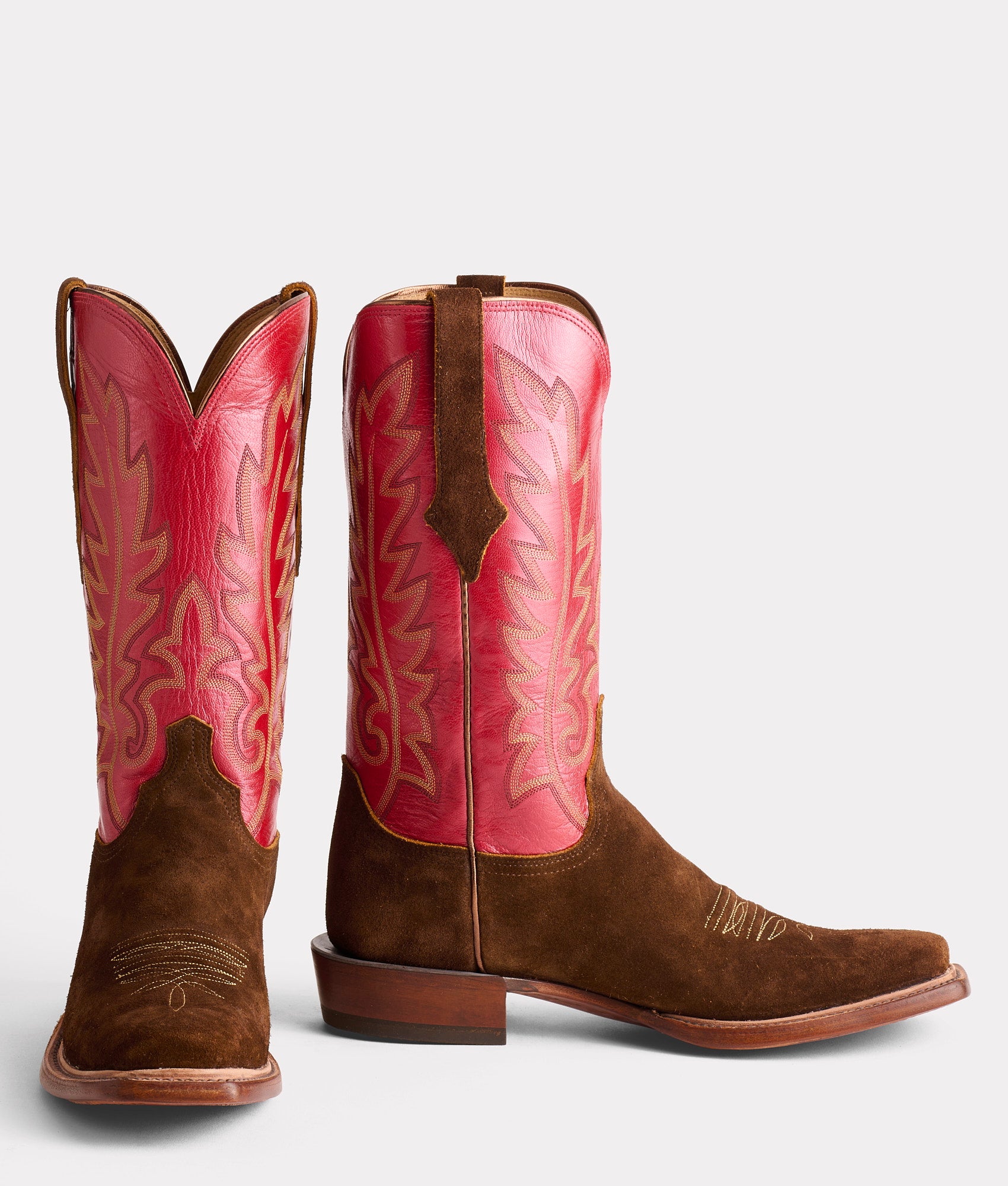 Silo rings true to the modern cowboy - crafted by our coveted Lucchese artisans from rich, bold tones of Italian suede. A single-stitched Storm welt, spur-ridged heel and elongated TG pull straps offer elements of function and style to this already breathtaking horseman silhouette. Handmade in Texas.