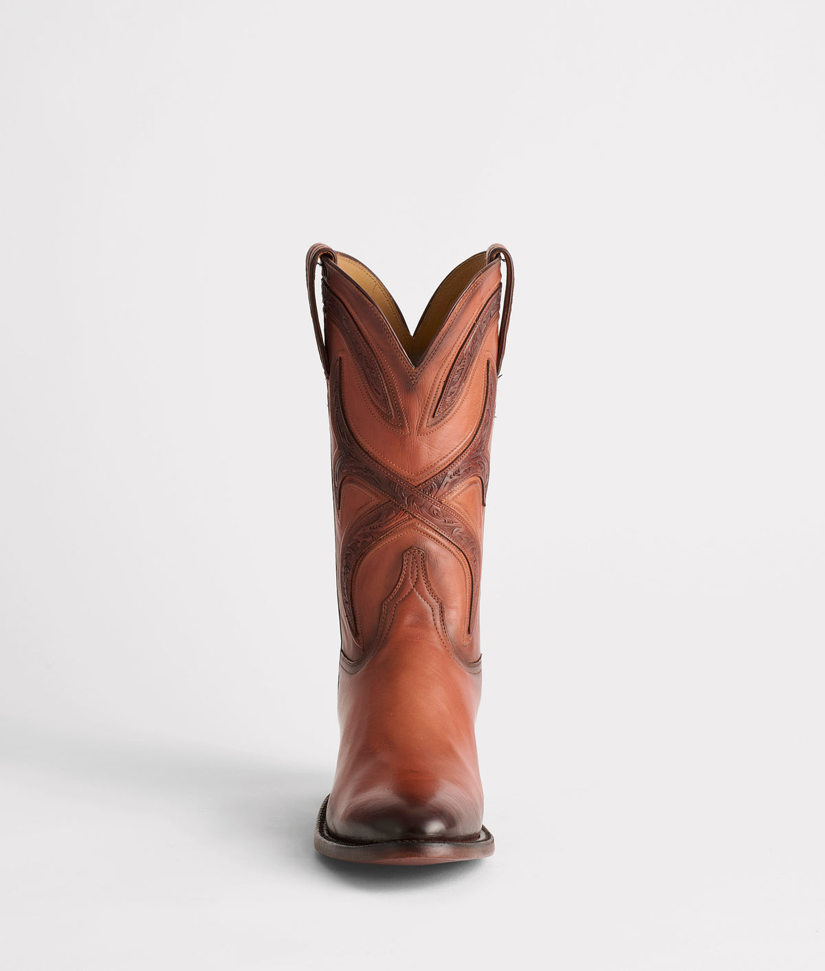The Knox is a chic Western style riddled with stunning benchmade components - named and designed after the Kentucky bullion depository, Fort Knox. A burnished silhouette with hand-tooled details on the quarter and collar give the Knox the ultimate look of Western sophistication. Take the Knox out to dinner for two. Handmade in Texas.