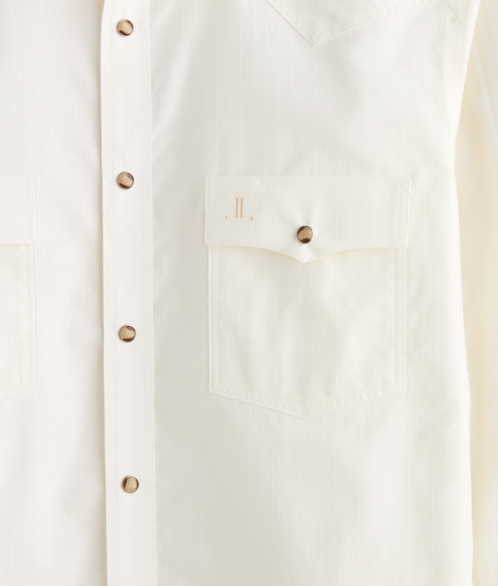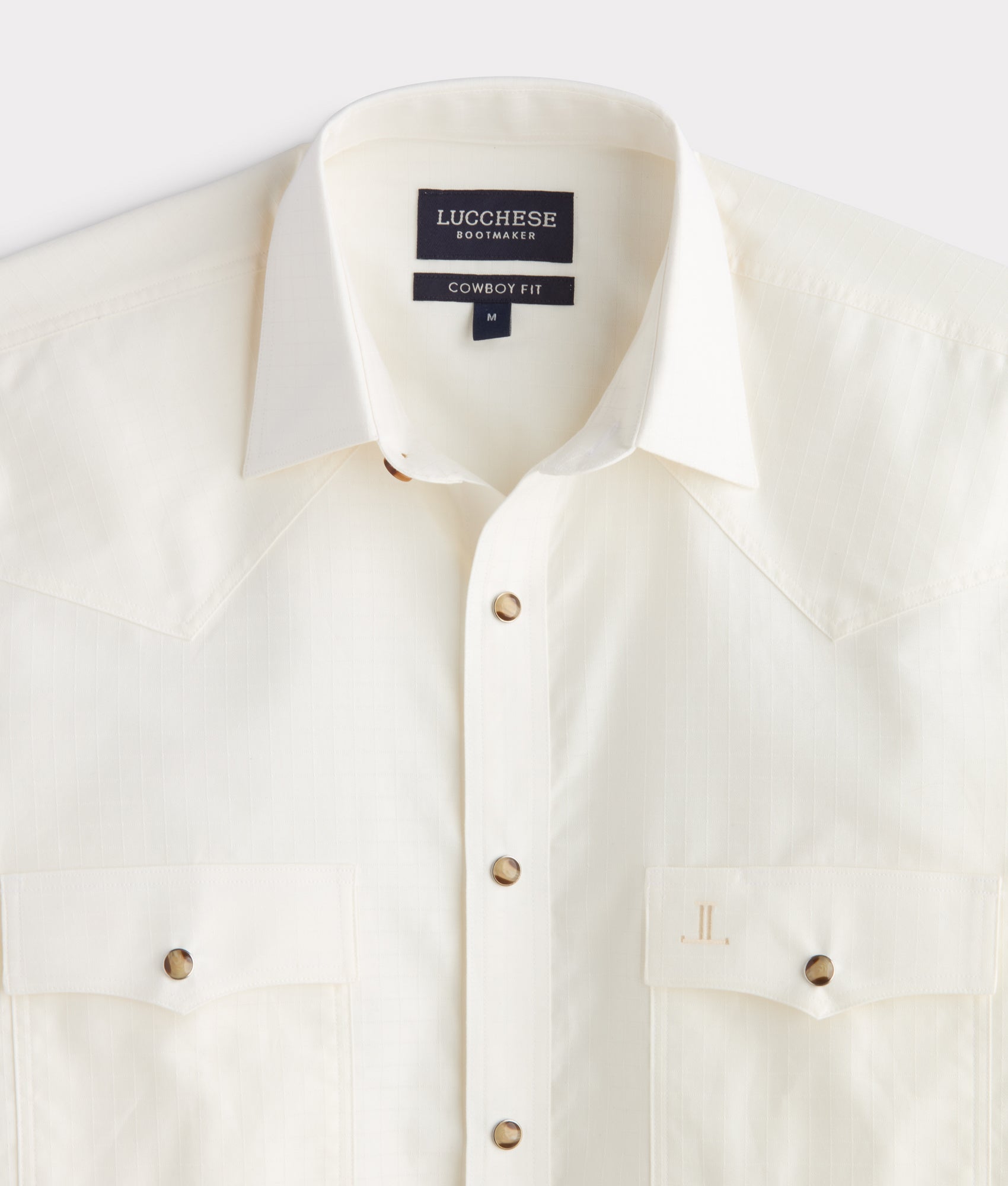 Named for the Texas city where Lucchese’s renowned bootmaking factory resides, the El Paso blends Western utility with refined design. Defined by its snap-front closure, dual chest pockets, and barrel cuffs, it embodies the character of its namesake. The cowboy fit is designed for a traditional Western build. It features a roomy chest, broad shoulders, and a longer torso for confident tucking. Extended sleeve length and a fuller bicep cut allow for ease of motion. Model is 6'1 and wearing size M.