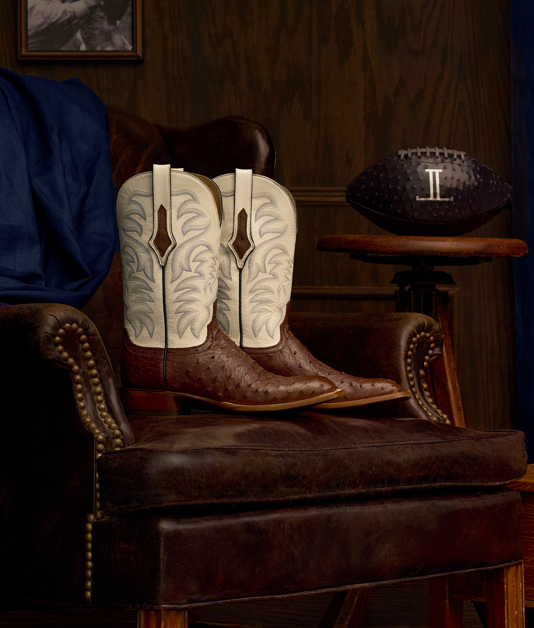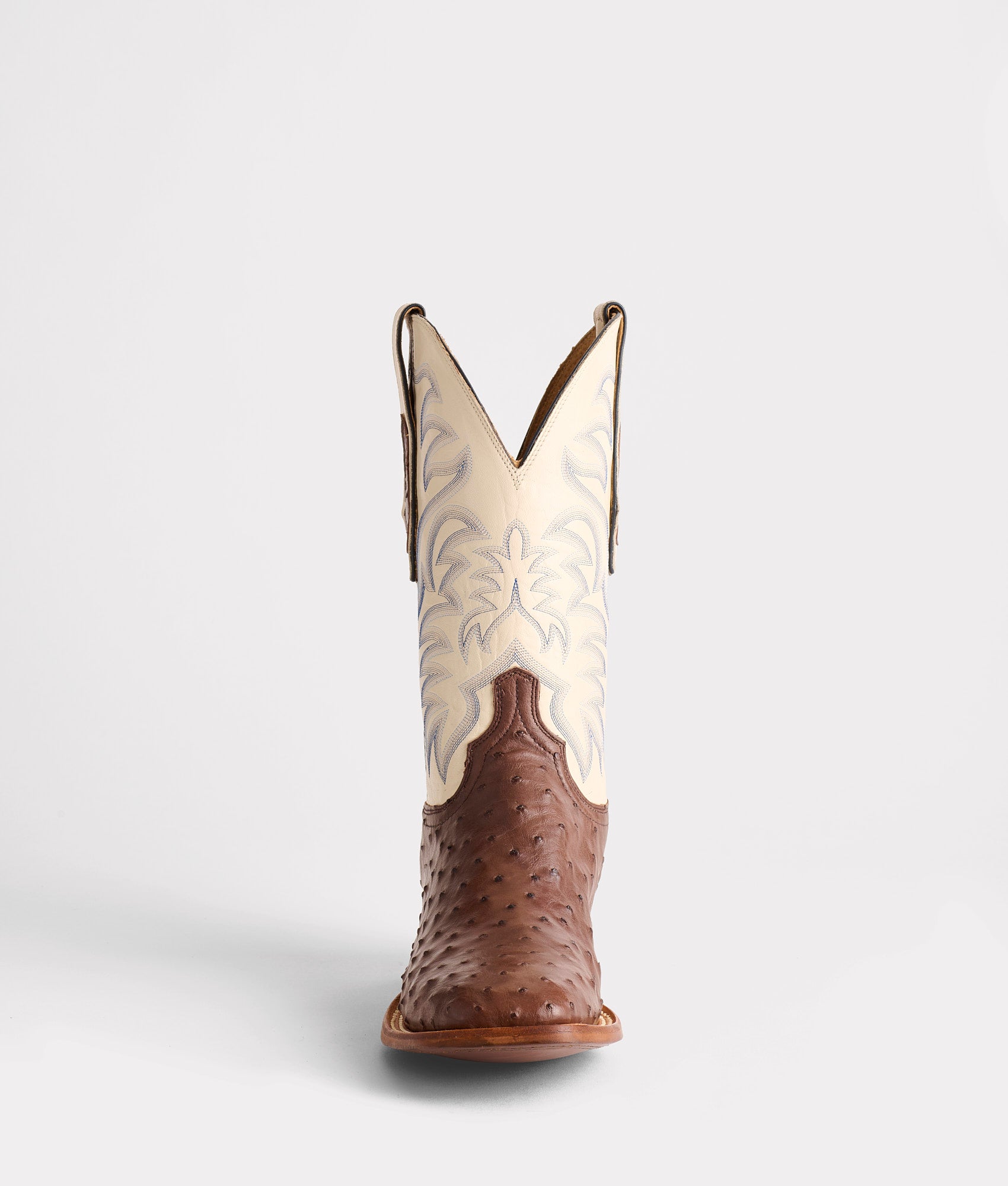 The Caller is named after a classic cowboy role—the one who rides ahead and calls in the cattle, guiding the herd with confidence and control. It’s a nod to leadership, presence, and unmistakable voice on the range. Just like its namesake, this boot stands out, commanding attention and setting the tone wherever it goes. Full Quill Ostrich will always be a part of our line. This Horseman silhouette comes in our tried-and-true W toe for an authentic cowboy look and feel. Handmade in Texas.