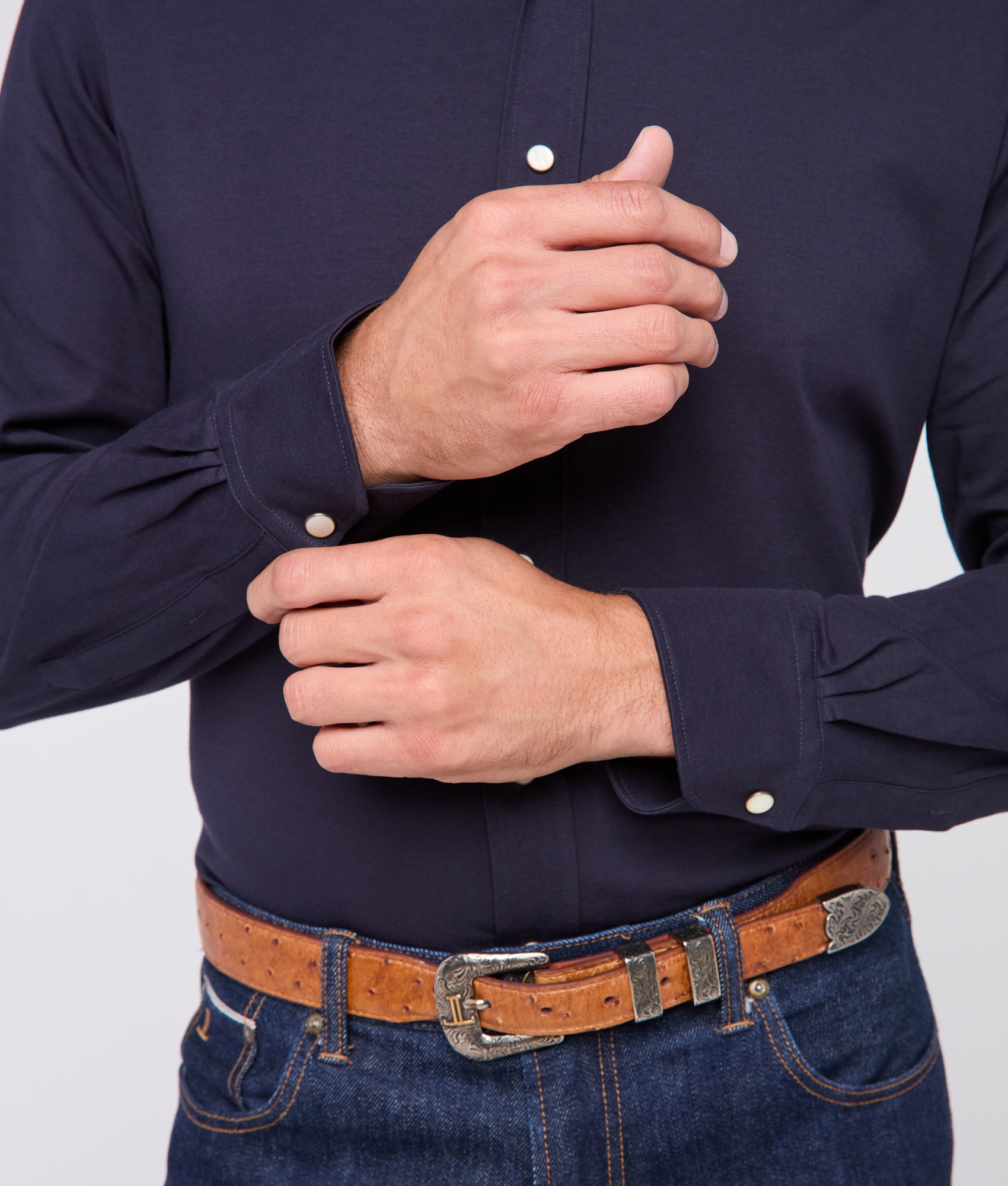 Named for the Texas city where Lucchese’s renowned bootmaking factory resides, the El Paso blends Western utility with refined design. Defined by its snap-front closure, dual chest pockets, and barrel cuffs, it embodies the character of its namesake. The modern fit is slim through the chest and waist, with narrower shoulders and shorter sleeves. It’s designed for lean builds who prefer a contemporary profile.
