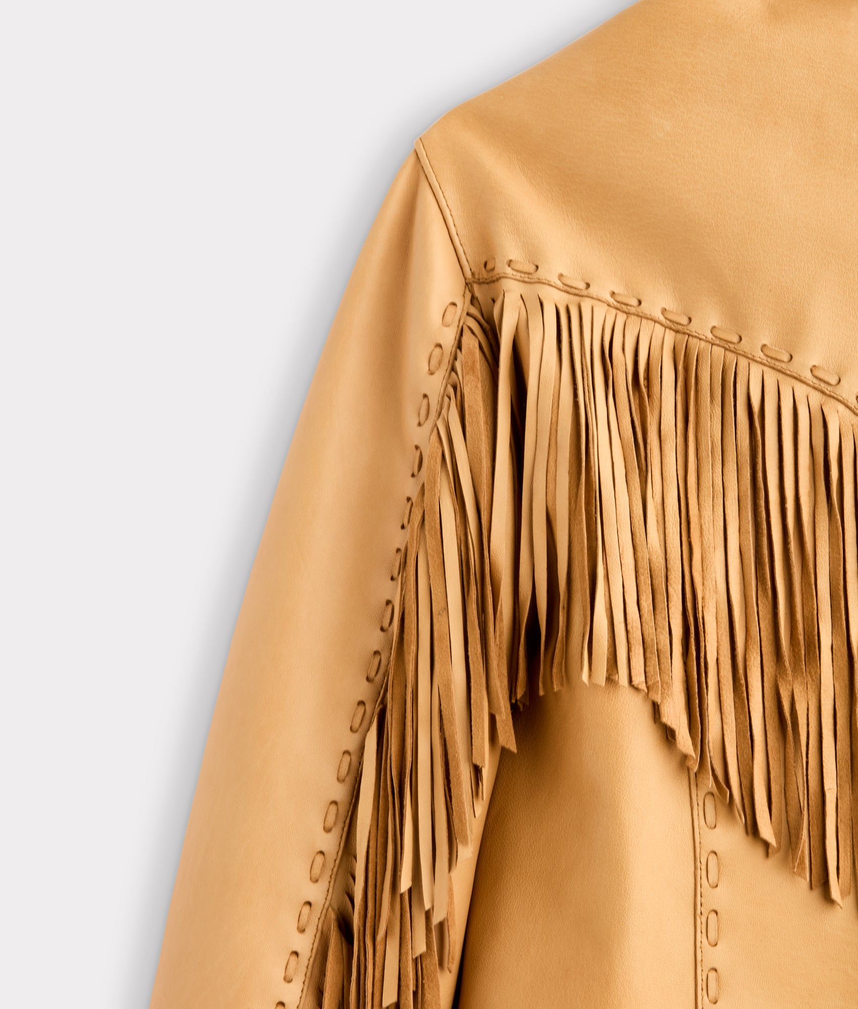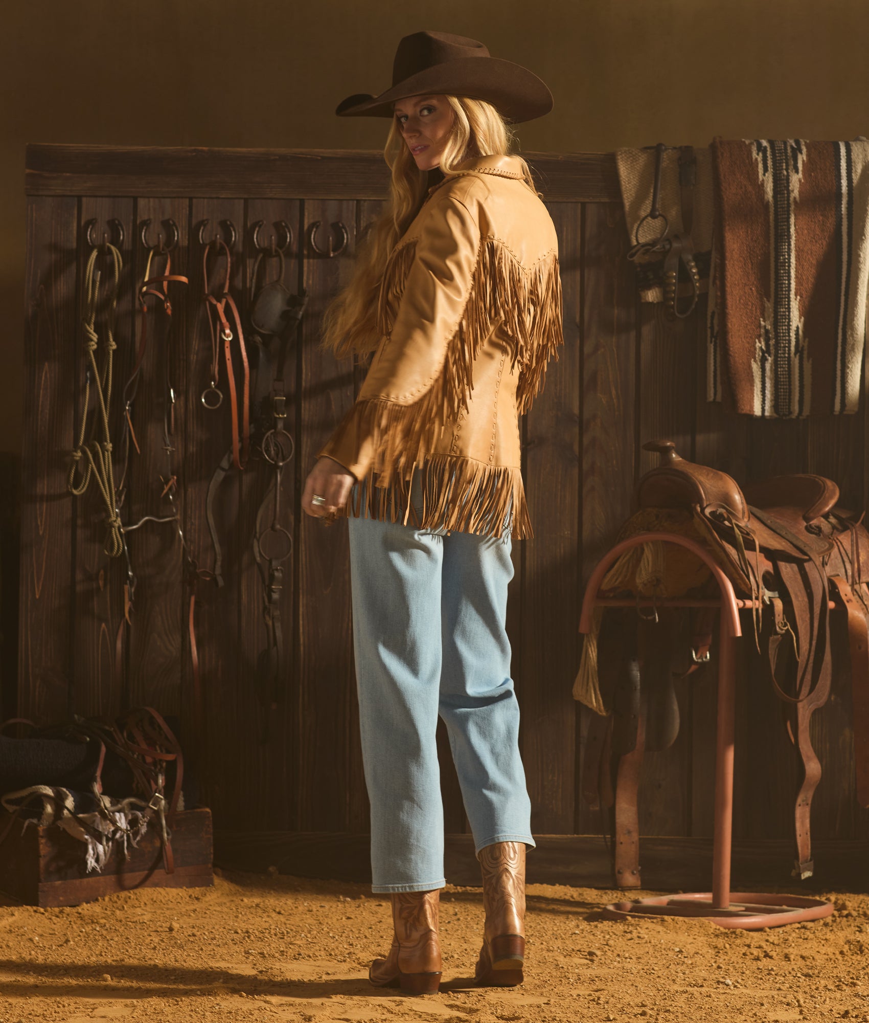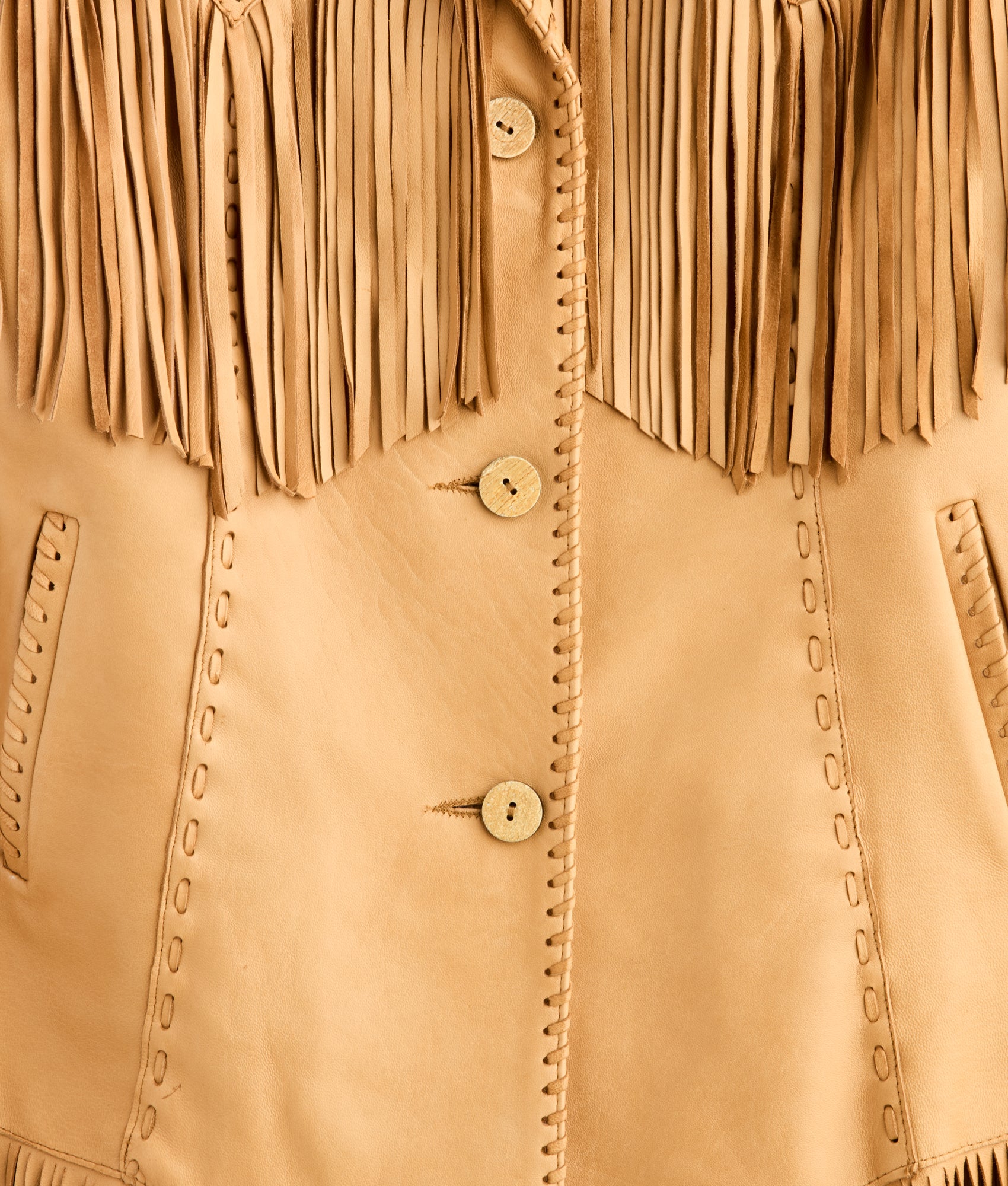 The Tallulah Fringe Jacket is Western chic. Fashioned from 100% leather and 100% style, this whipstitch jacket exudes cowgirl spirit. Two welted-whipstitch side pockets allow you to reach for personal items with ease. From the fringe embellishments to the whipstitch detail, this fun piece of outerwear will bring out charisma. Clean professionally.