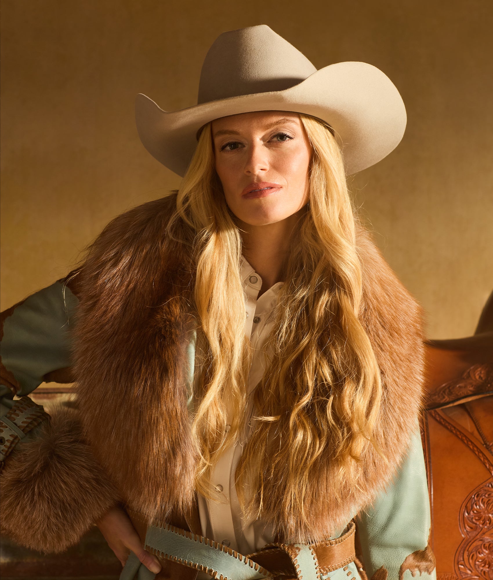 Part of our exclusive Lucchese Western hat collection, the Alamo is a hat that pays homage to the Lone Star State - inspired by the city where Lucchese Bootmaker was founded in 1883 and named after the historical landmark in Texas. The Alamo is 100% custom made and hand-shaped from a blend of the finest beaver nutria furs. A 5 ¾" tapered crown with a slightly modified cattleman's crease and a 4 ½" brim achieve a Western look. A self-band made from its own body are attached with a handmade hat pin styled in the shape of the Alamo with the Lucchese mirrored-L 1883 logo inside the outline. Distressed to give an aged appearance. Handmade in Texas.