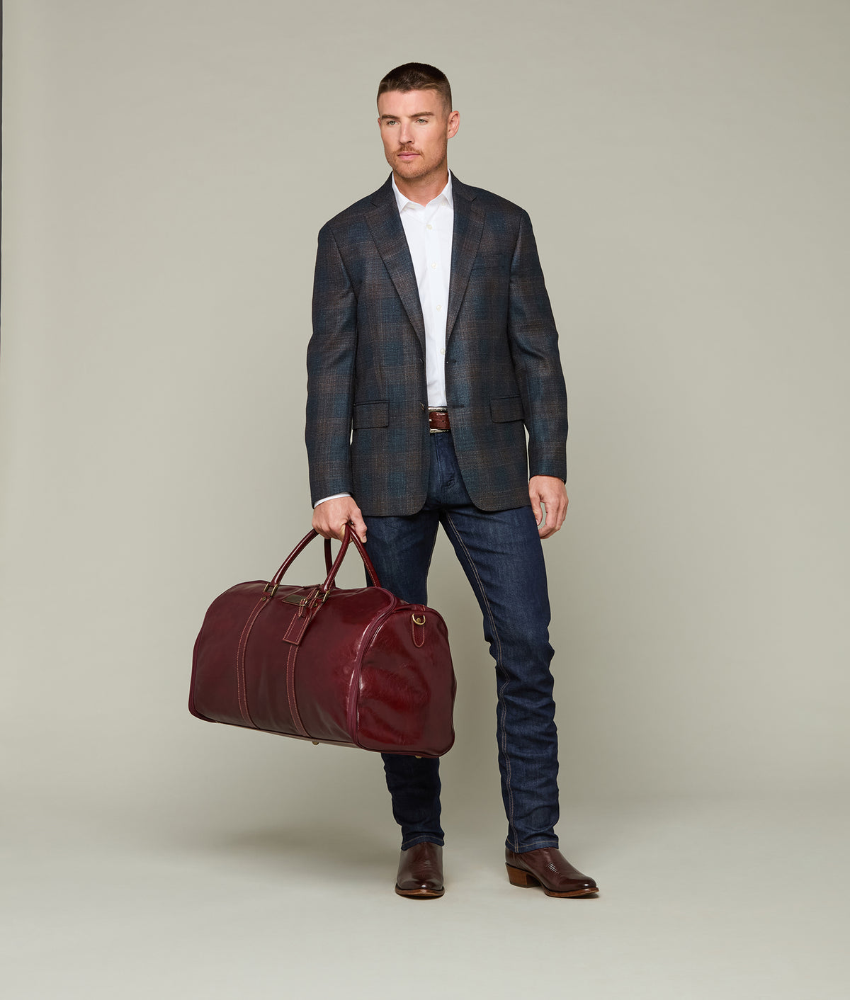 The Cosimo Garment Duffle, named in honor of our second-generation bootmaker, exemplifies exquisite craftsmanship and timeless design. Crafted from premium Italian veg-tanned leather, this duffle bag will produce an aged-patina with consistent use. The interior is thoughtfully designed with integrated hangers, ensuring that garments stay organized and wrinkle-free. Designed for the Texas man and the businessman, the Cosimo Garment Duffle is a must have. Handmade in Italy.