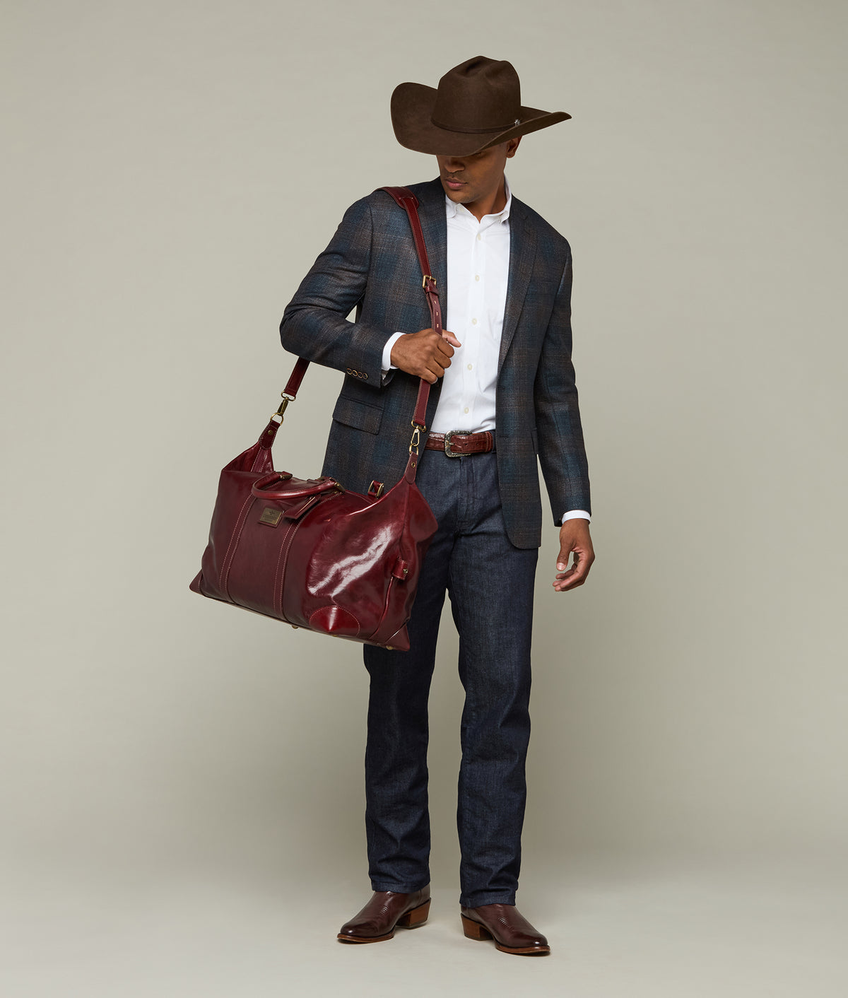 The Cosimo Weekender, named in honor of our second-generation bootmaker, examplifies exquisite craftsmanship and timeless design. Crafted from premium Italian veg-tanned leather, this weekender offers contemporary luxury through a western lens. Overtime, just like our boots, you'll notice a unique patina developing - adding visual texture and dimension. Designed for the modern traveler, the Cosimo Weekender is your traveling companion for a quick trip. Handmade in Italy.