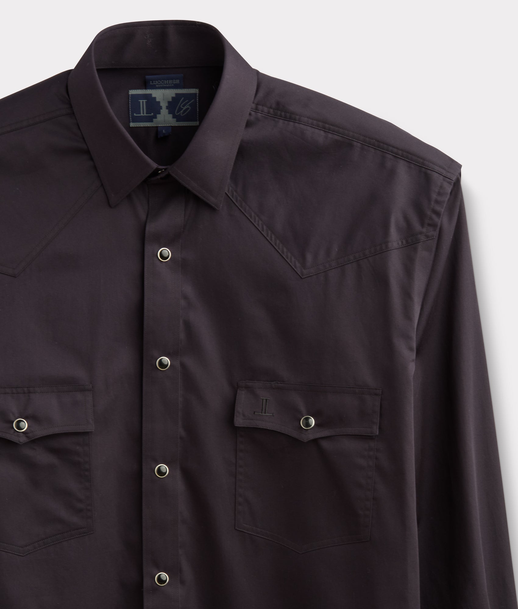 Part of the Chris Stapleton collection and named after our El Paso factory, this rugged, cotton Western shirt features a cowboy yoke in front and back with a mirrored-L on the front left pocket and a signature co-branded Lucchese x Chris Stapleton tag. Classic cowboy fit.
