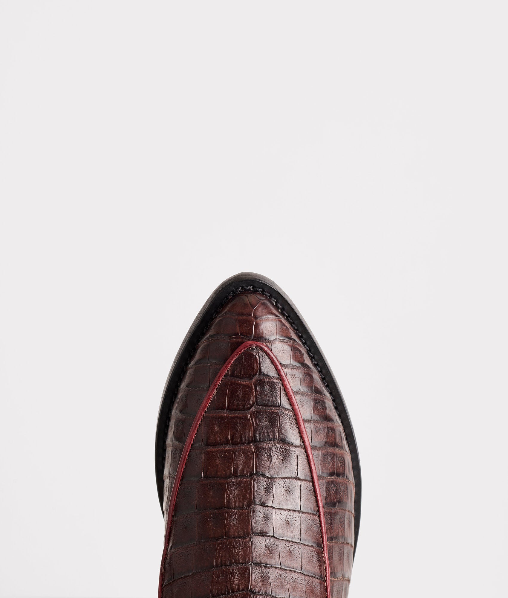Karmen is a vintage-style loafer handmade from caiman leather. A Western look without the quarters, this shoe offers a seamless transition from saddle to city. Slip into Karmen after a long day in the pasture or before a quick trip to the store.