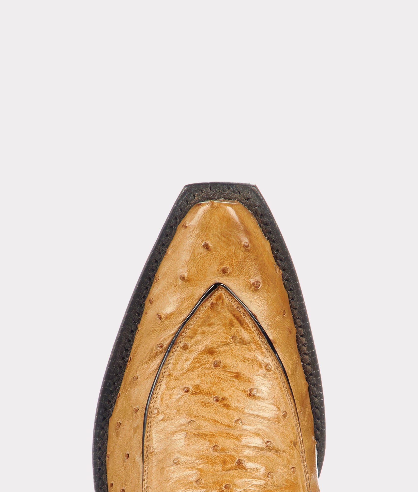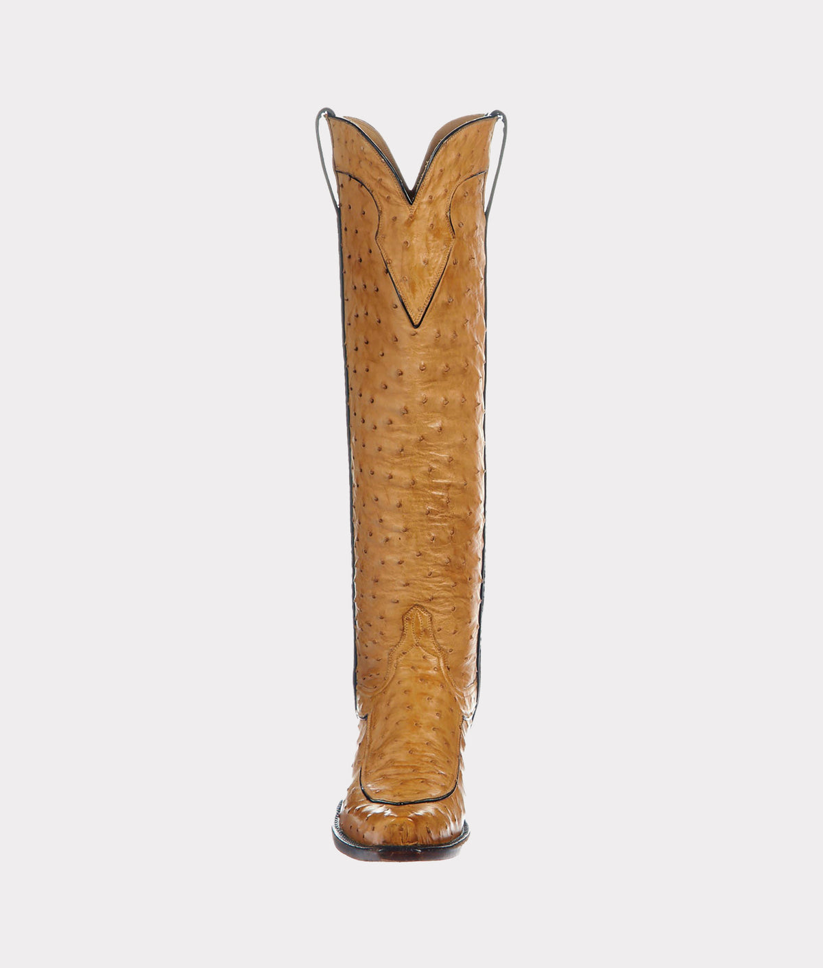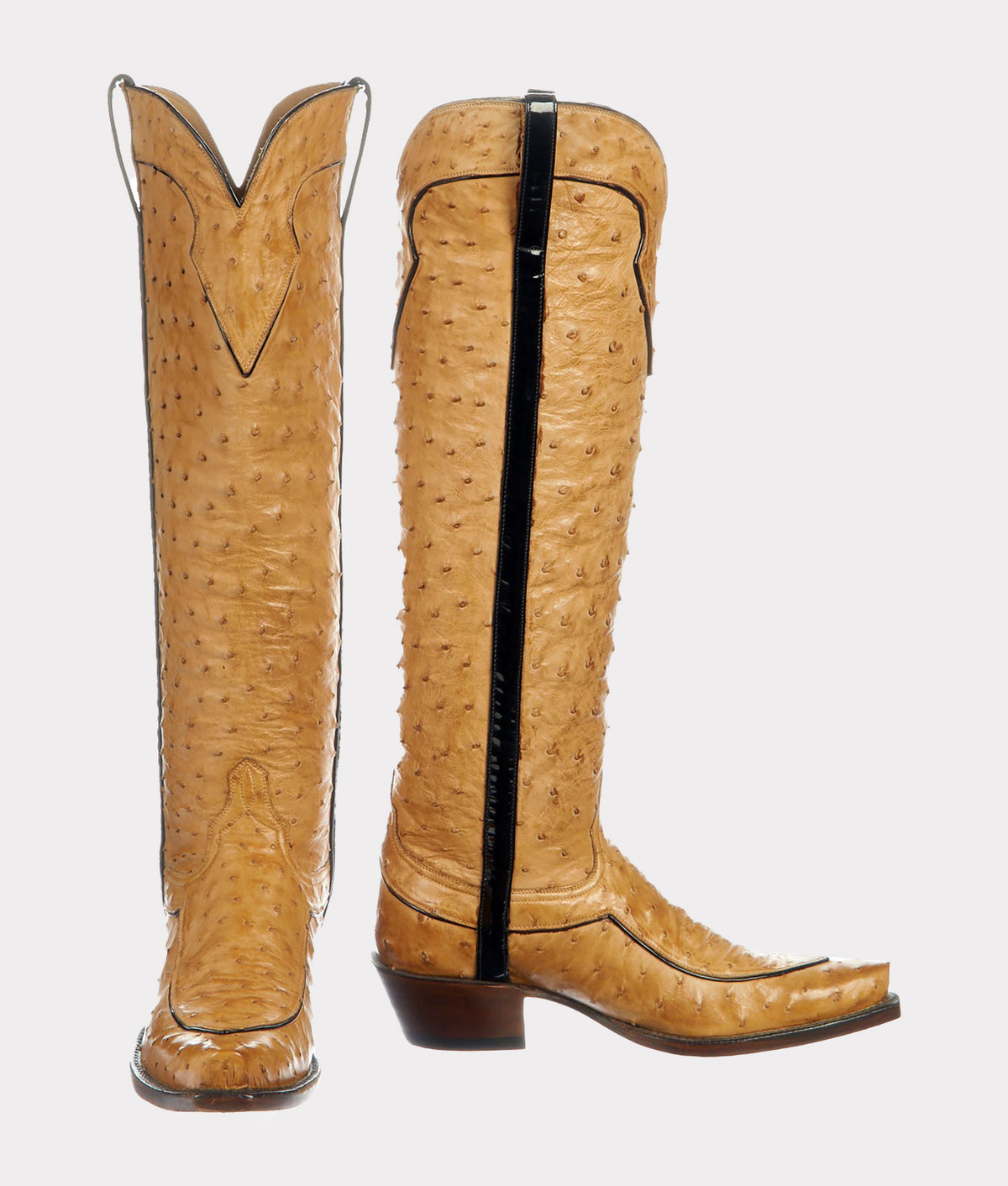 Few boots capture nearly 140 years of Lucchese artisanship quite like Marylin. The 17-inch-tall women’s style is handmade top to toe from exquisite, hand-stained full-quill ostrich. A contrasting exterior side seam and piping around the collar and vamp are dramatic accents on a boot sure to draw admirers and leave the crowd in awe.