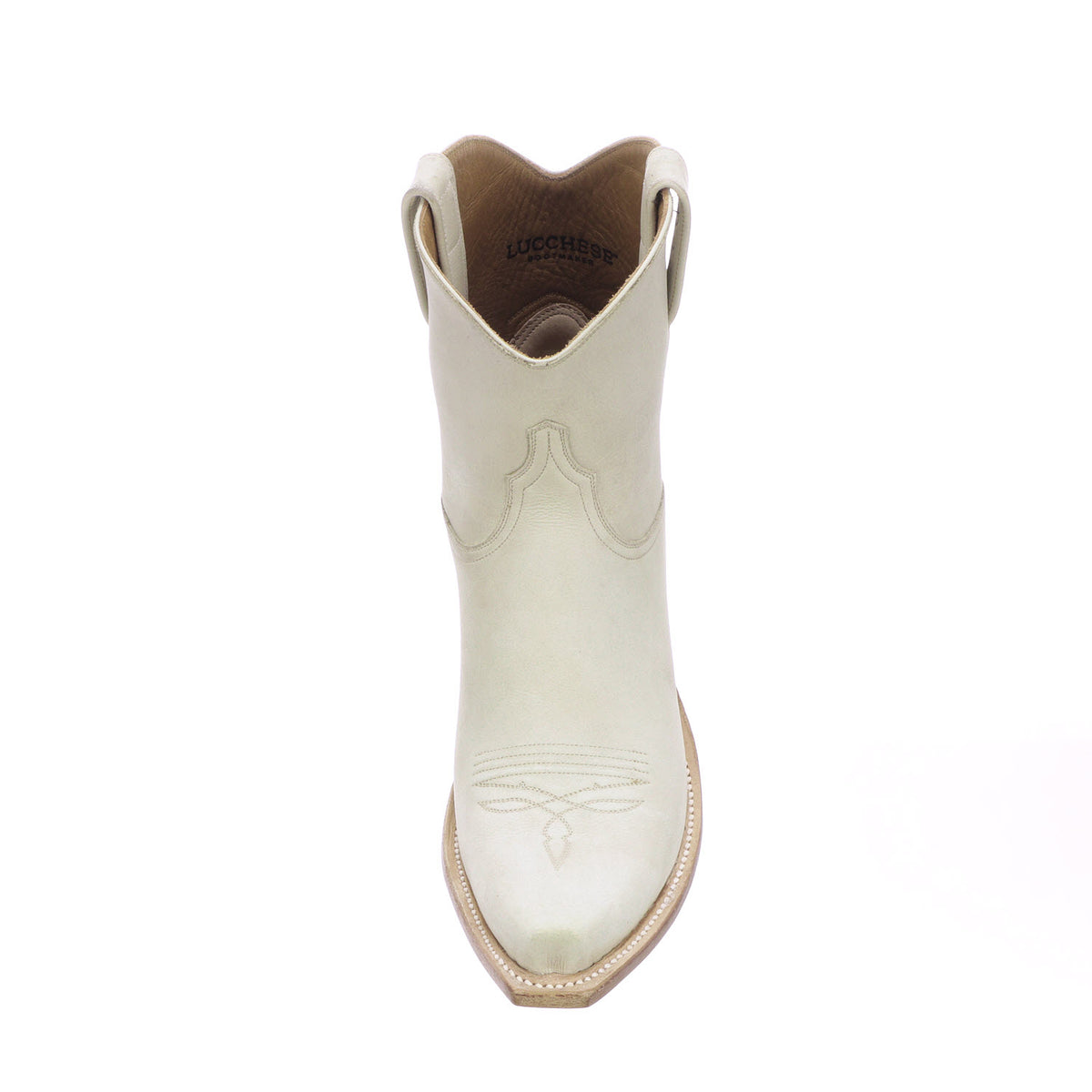 Simple beauty wrapped in a Western bootie silhouette - the Gaby is a shortie that stands tall in the Lucchese lineup. Fashioned from rich Old English goat leather, the Gaby is the blueprint for the quintessential Texas cowgirl. The Gaby is made for memories. Handmade in Texas.