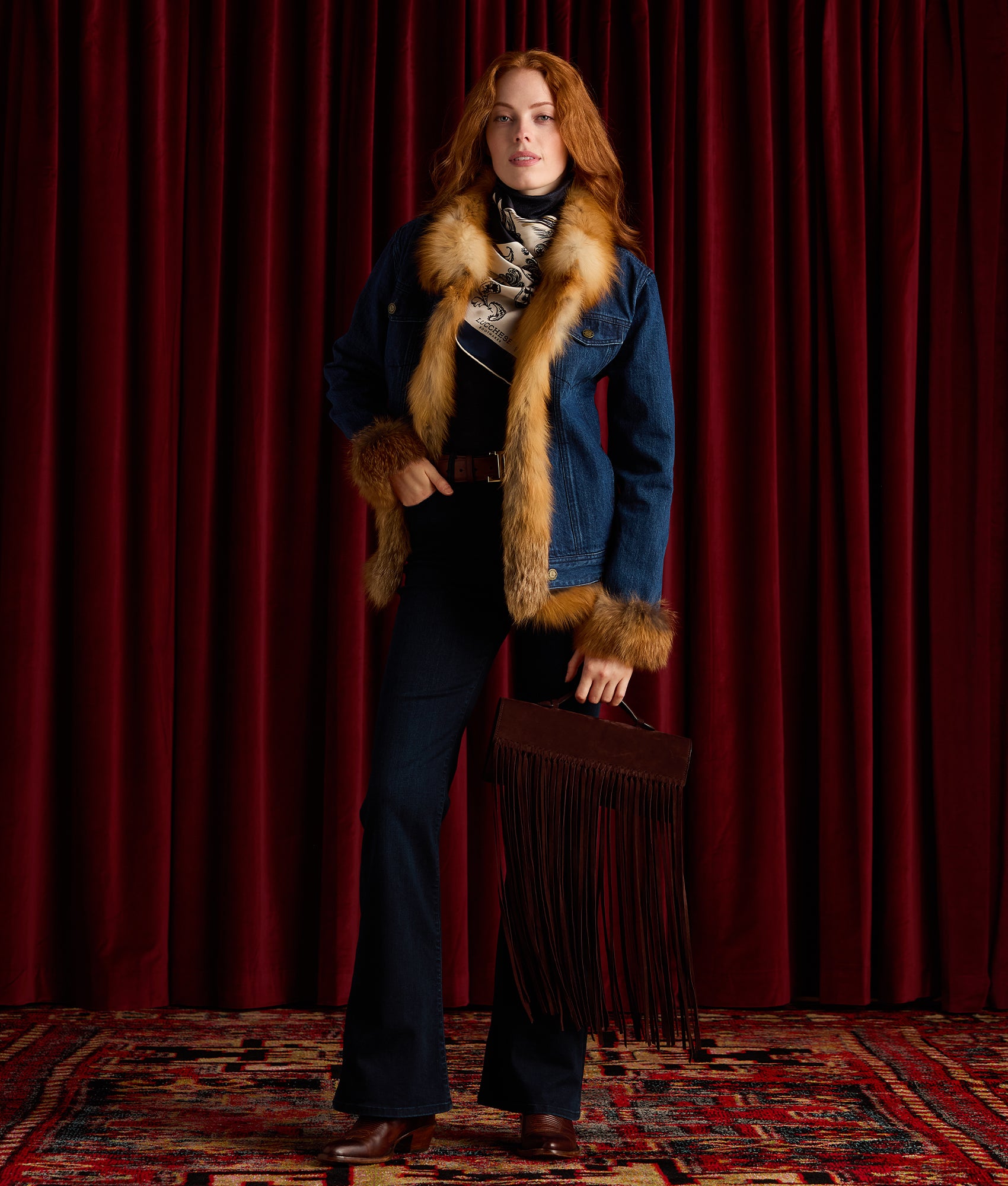 Hadley is a true high-rise-waisted pair of jeans, sitting comfortably above the waistline. From waist to knee, the fit is slim – below the knee, the denim begins to flare for that retro cowgirl look. An upper thigh suppression built into the denim pattern defines the shape of any repertoire. Slightly stonewashing and hand-sanding, the denim gives it that sought-after “soft hand” and lived-in look. Hadley is cut from luxe Turkish denim that contains a special polyester fiber for a soft hand and ultimate fabric recovery. Isra has our iconic boot toe medallion embroidered on the back pockets.