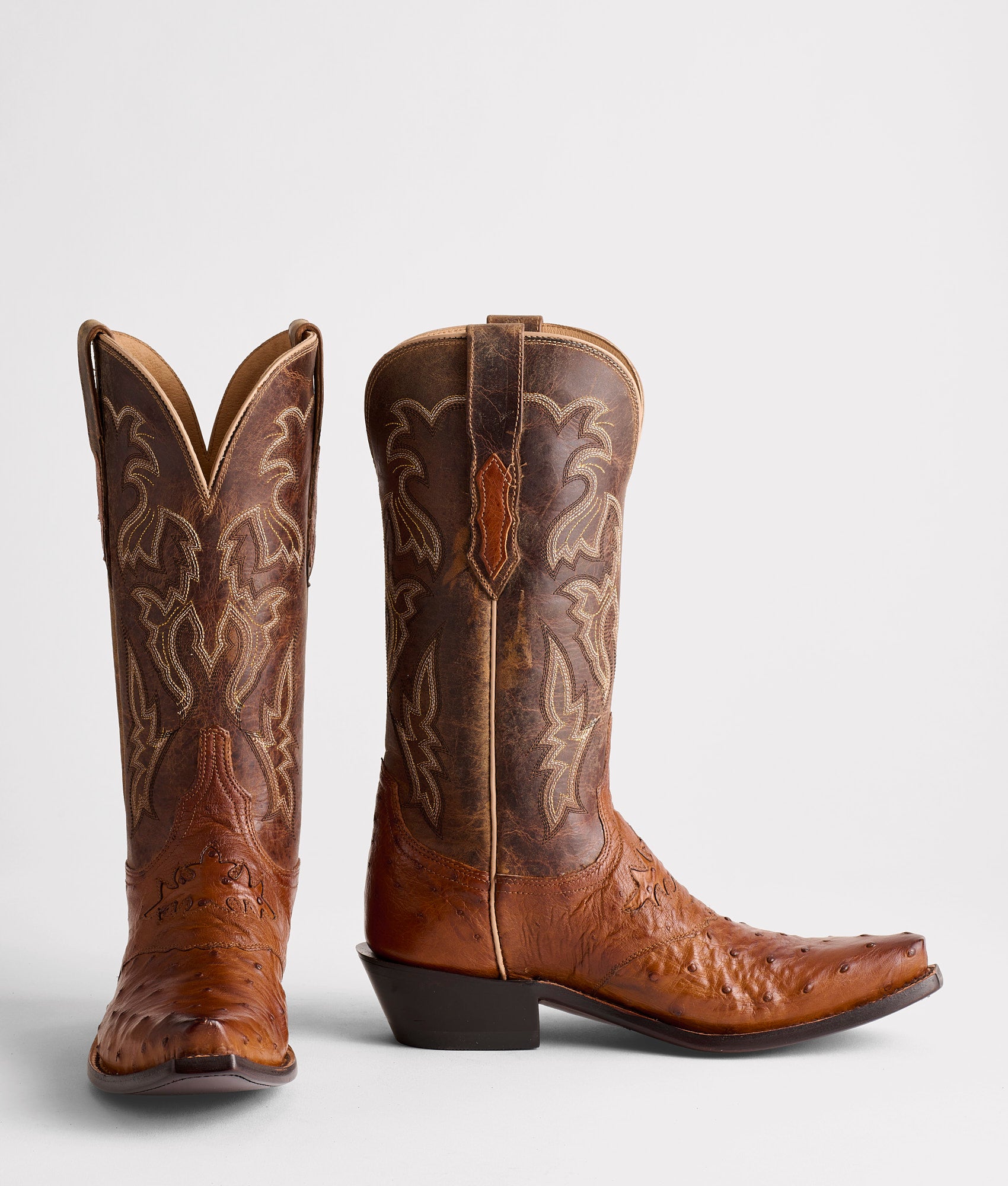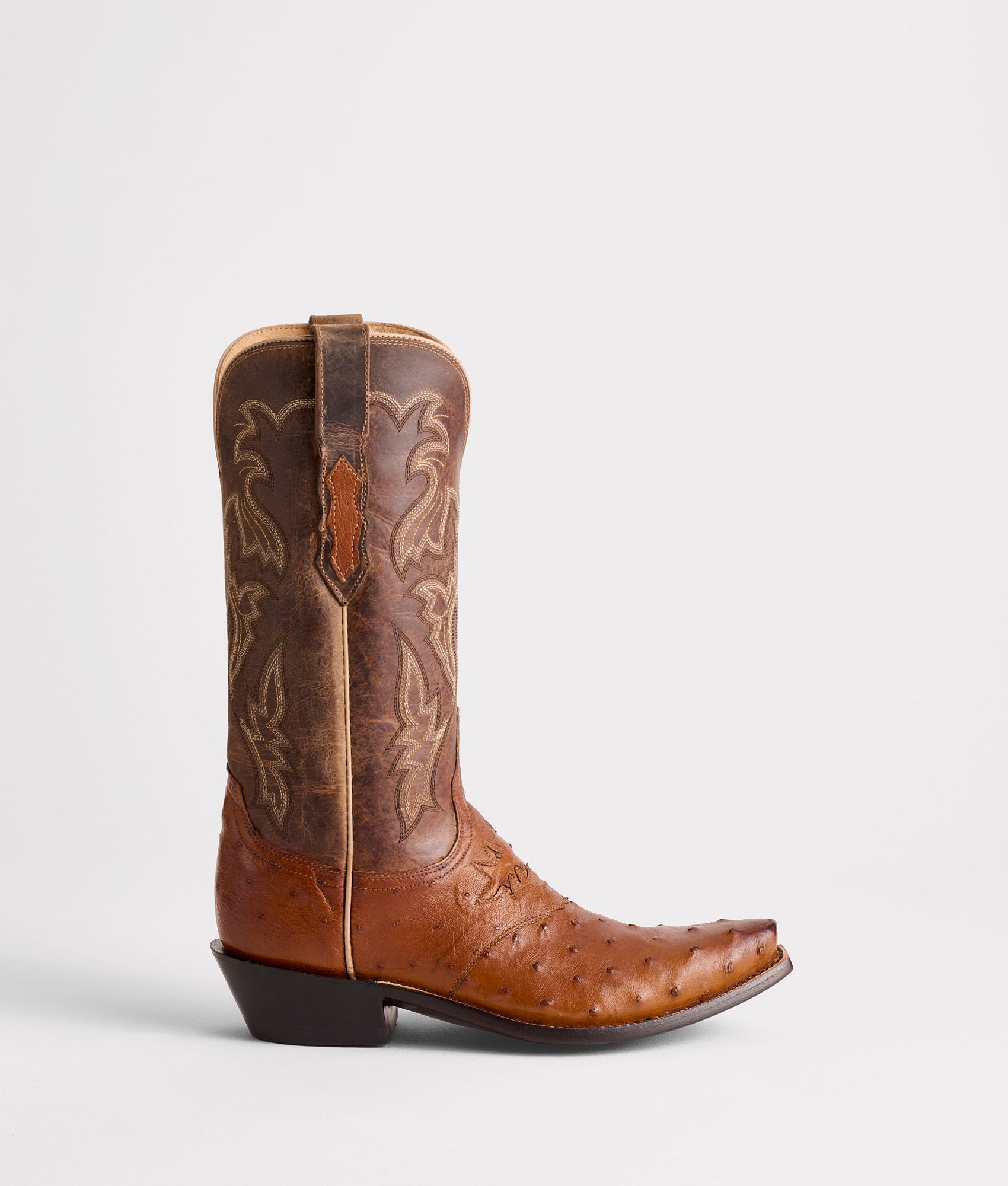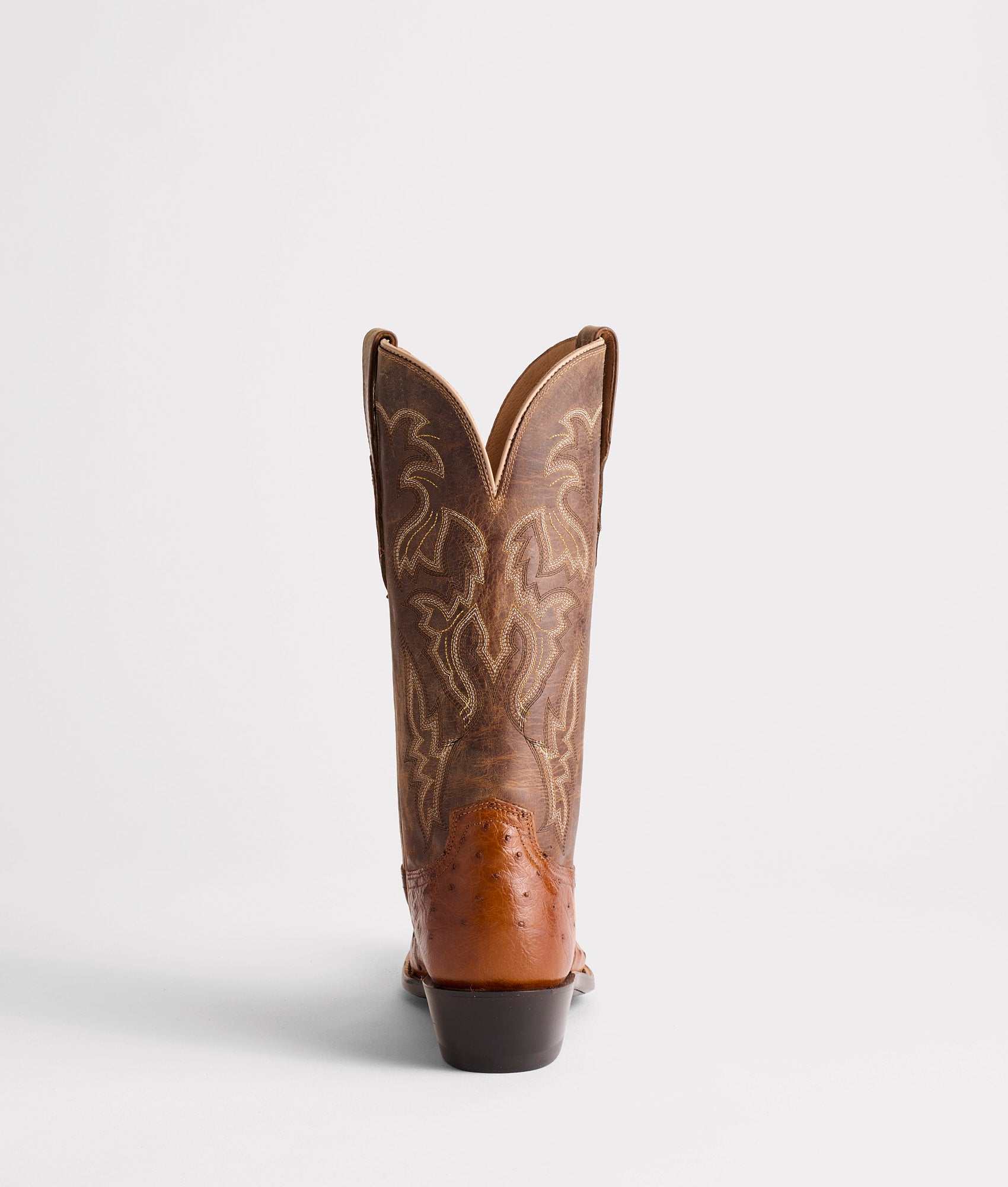 Our No. 1-selling exotic has a prized aesthetic suitable for board meetings and special occasions while also being tough enough for riding and rigorous outdoor activity. Ostrich is supple and molds nicely to the foot. Maximizing quill pattern is something we do more thoughtfully than any other bootmaker. When fit perfectly, full-quill ostrich makes the ultimate cowboy boot.
