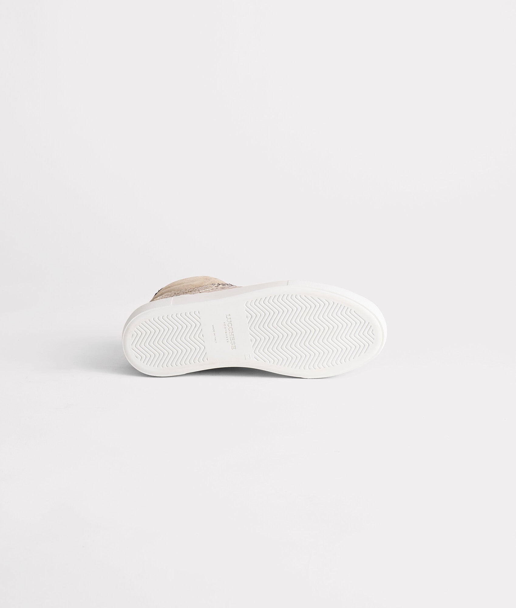Mosaico means "mosaic" in Italian—a name that perfectly captures the persona of this Italian handcrafted sneaker. Like a mosaic, where individual pieces come together to create a breathtaking whole, the Mosaico High-Top Sneaker unites every detail—material, texture, and form—into a wearable work of art. Crafted by master artisans, this women's sneaker is crafted from genuine python, with each pair offering a unique pattern and cut. The high-top silhouette is a statement, laced for a personalized fit and grounded by a durable rubber sole for all-day comfort. Handmade in Italy.