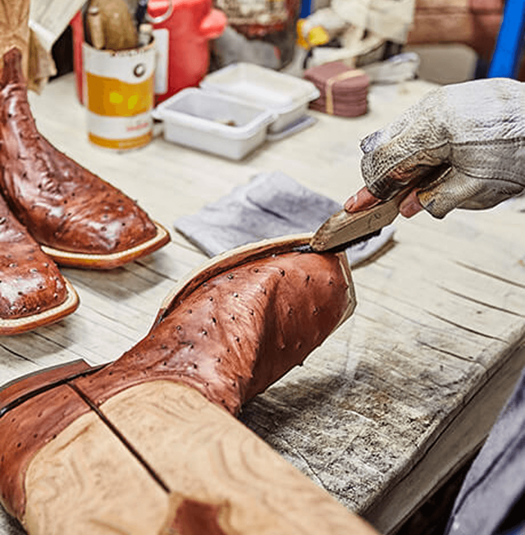 When you place your order, your boots don’t yet exist. They begin as a promise — a hand-selected hide, a shape in the mind of a maker, a future heirloom in progress. From that moment on, a team of artisans brings them to life, one careful step at a time. Every cut, every stitch, every polish is done by hand in our Texas workshop, following a tradition that spans generations.