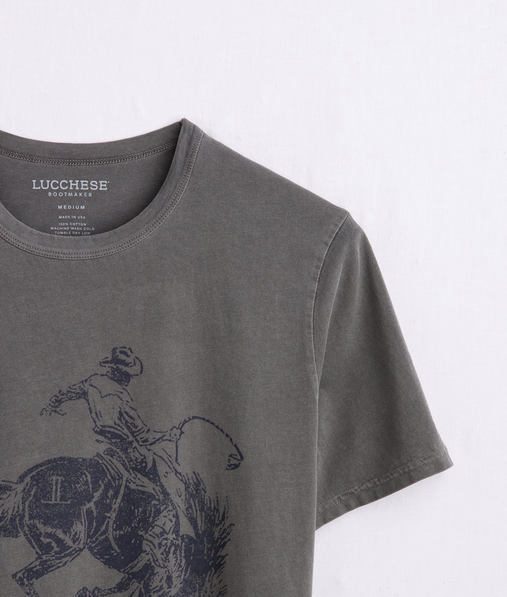 The cowboy sports a classic jersey emblazoned with the number 83, capturing the dichotomy of athlete and animal. Made from soft, breathable Supima Cotton, this tee has a feel of vintage charm with everyday comfort.
