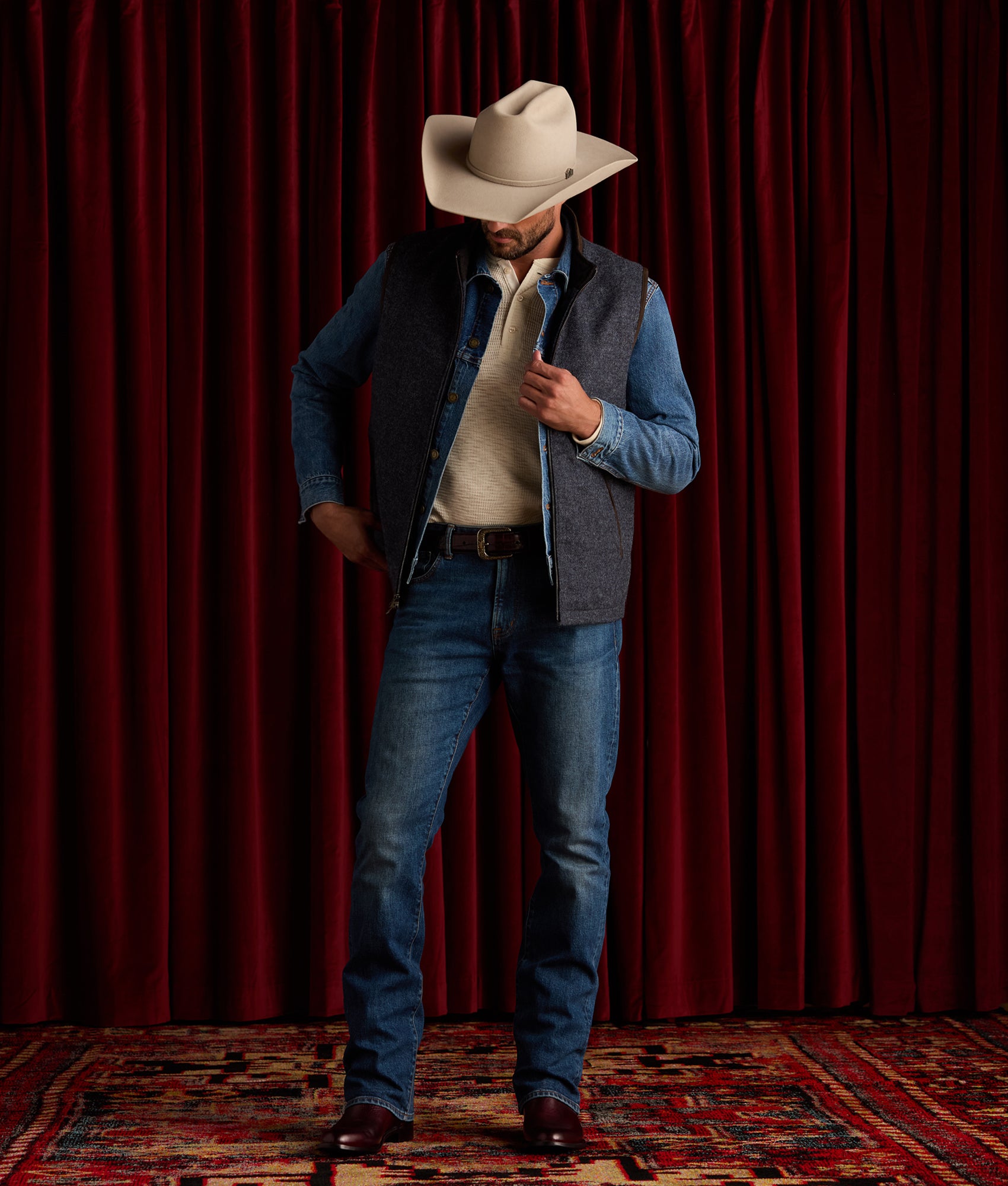 Designed for transitional weather and layering, this versatile piece features a rich woolen shell that offers natural warmth and texture, accented by supple leather trims for a touch of understated luxury. Lined with smooth 100% polyester for easy wear over sweaters or shirts, the Asheville is your go-to companion. Functional angled pockets offer convenience, while the full-zip front ensures adaptable comfort in changing temps.