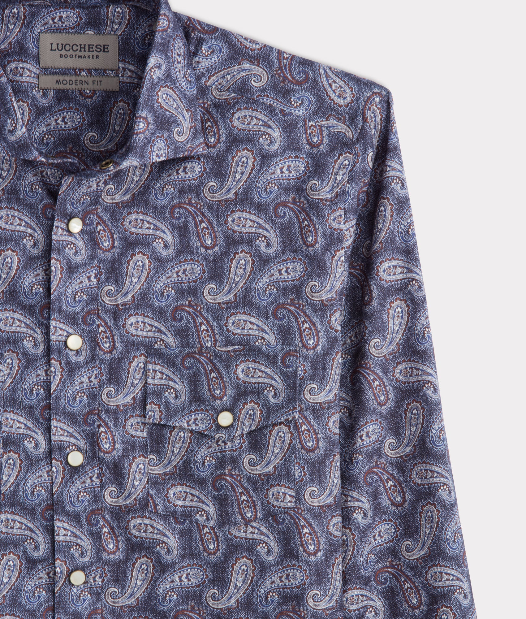 Named for the Texas city where Lucchese originated, the San Antonio is a timeless button-up designed with one chest pocket and barrel cuffs. Crafted for versatility, it blends heritage with refinement. The modern fit is slim through the chest and waist, with narrower shoulders and shorter sleeves. It’s designed for lean builds who prefer a contemporary profile.