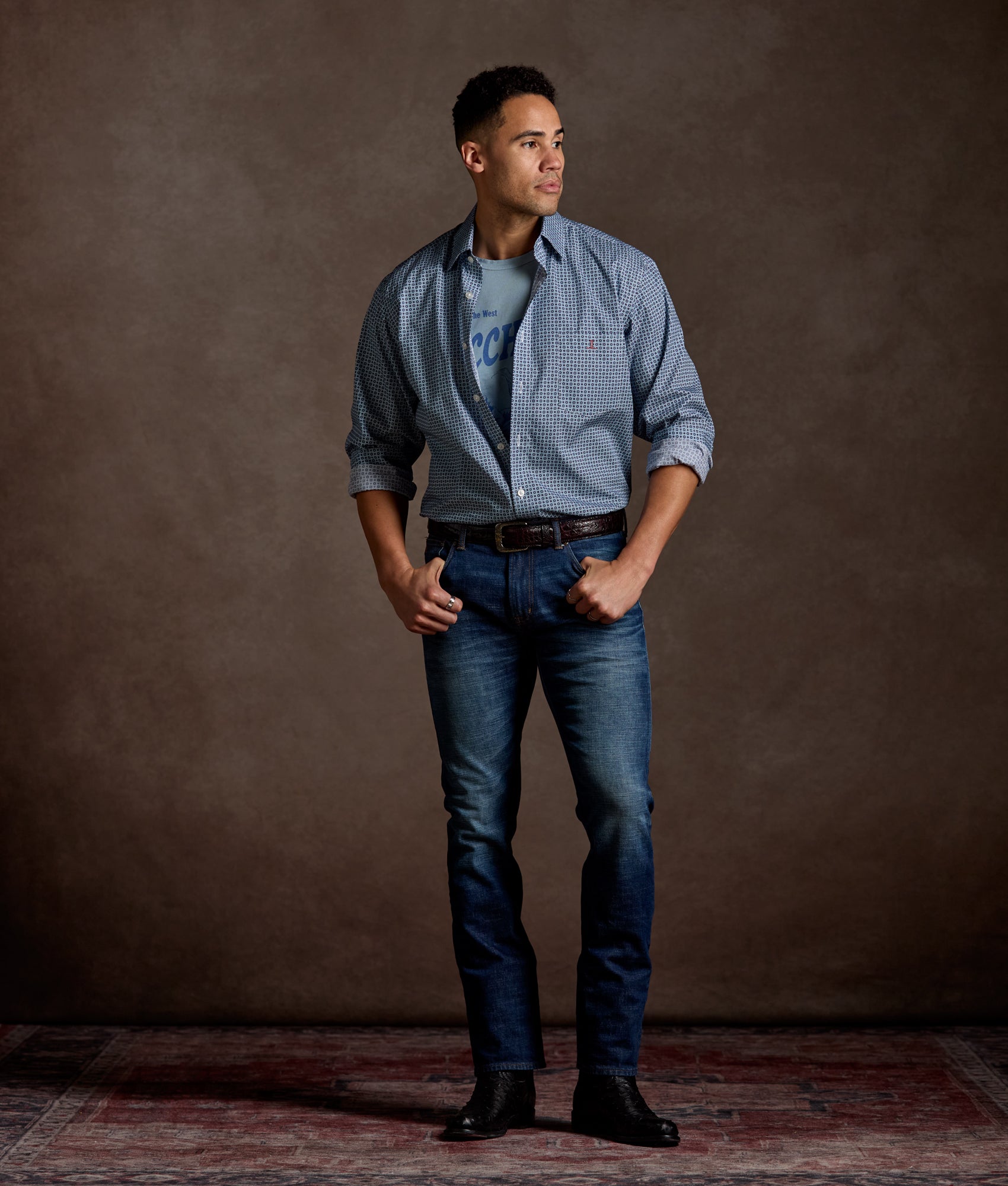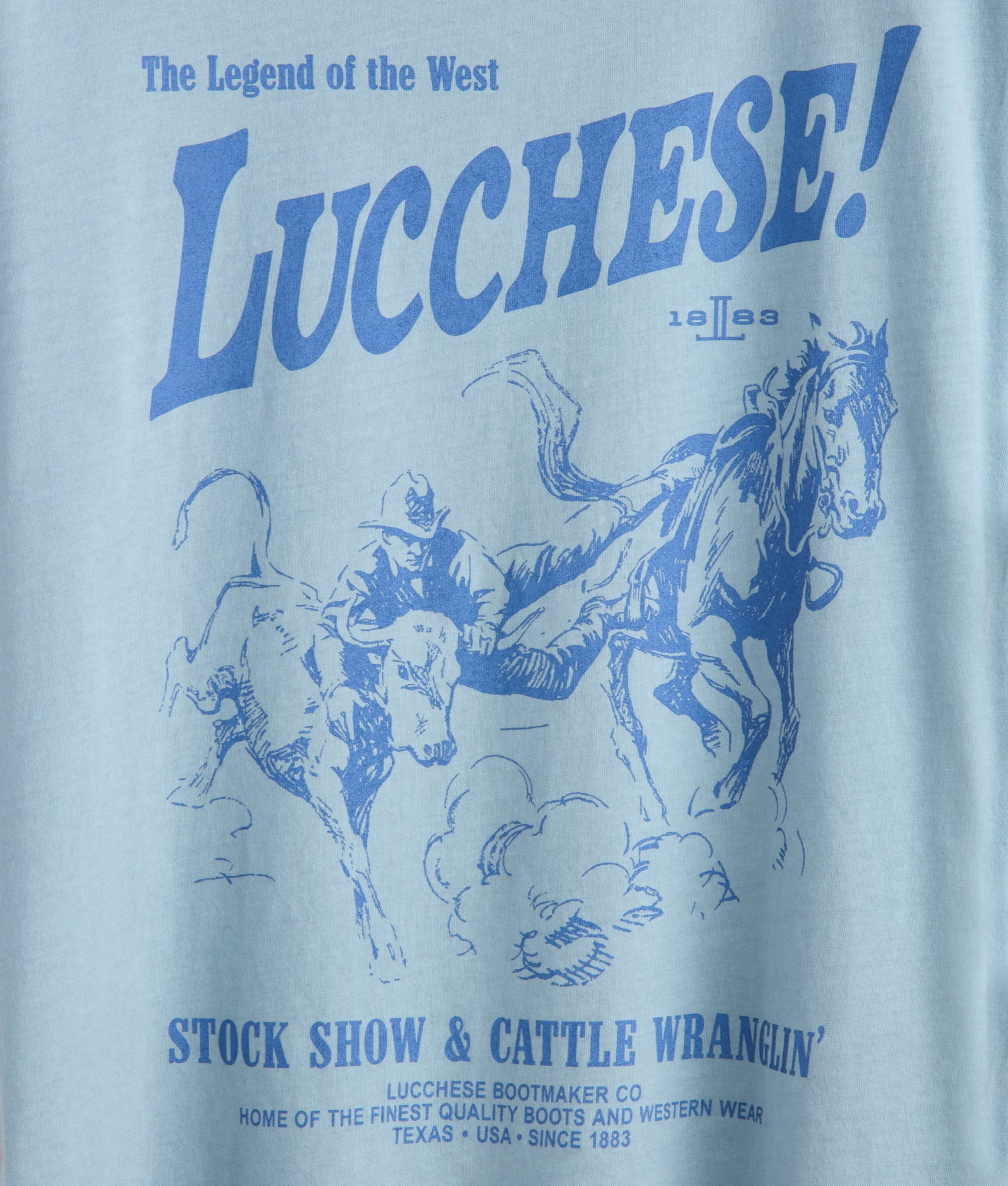 The vintage-inspired graphic tee nods to dusty landscapes and outlaw legends, finished with a modern Lucchese sensibility. Easy to wear, this tee is made for casual outings under a flannel or over blue jeans.