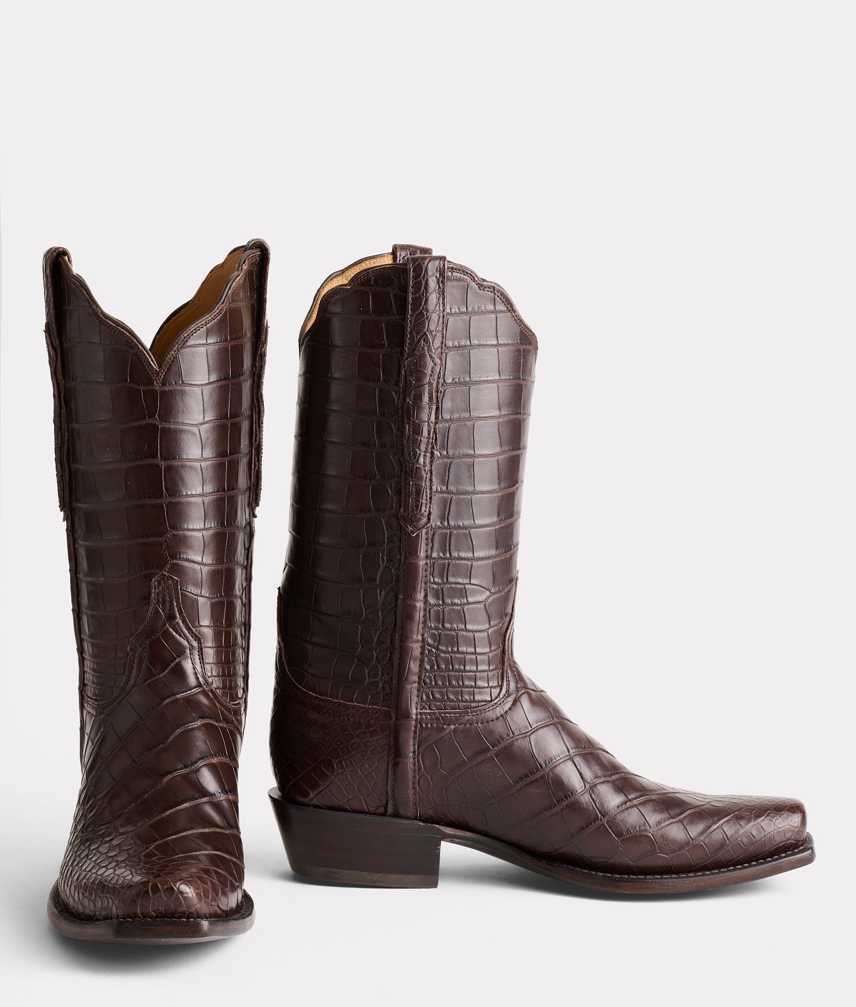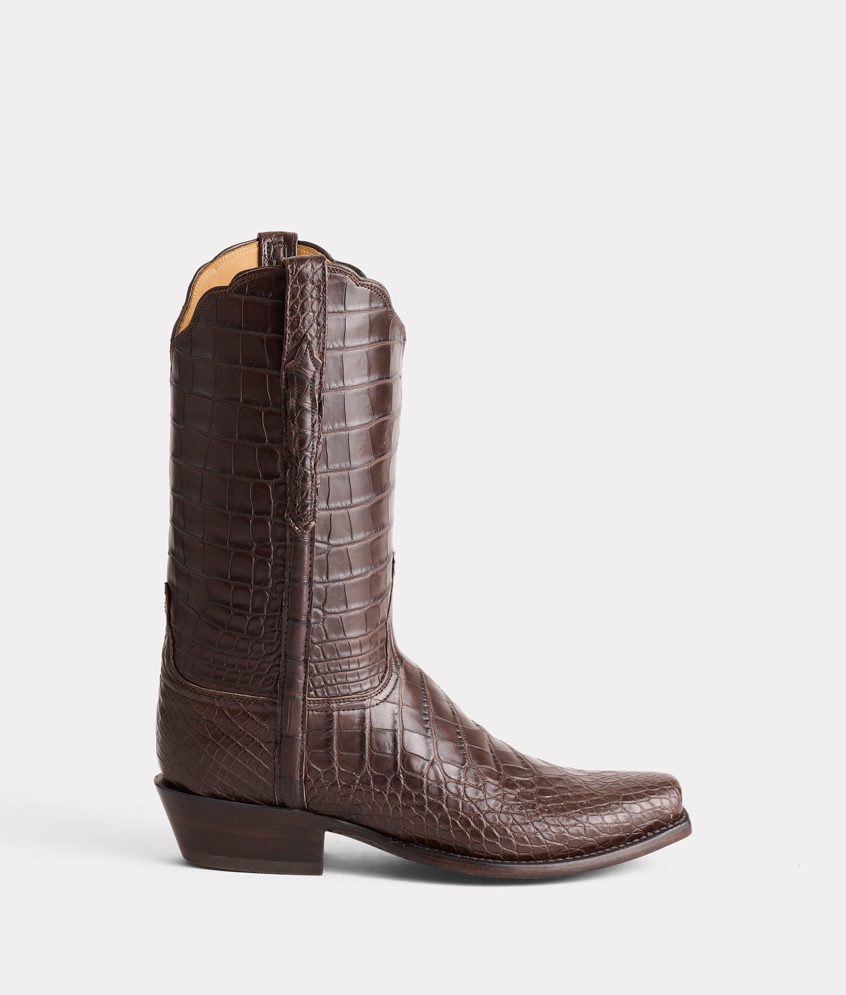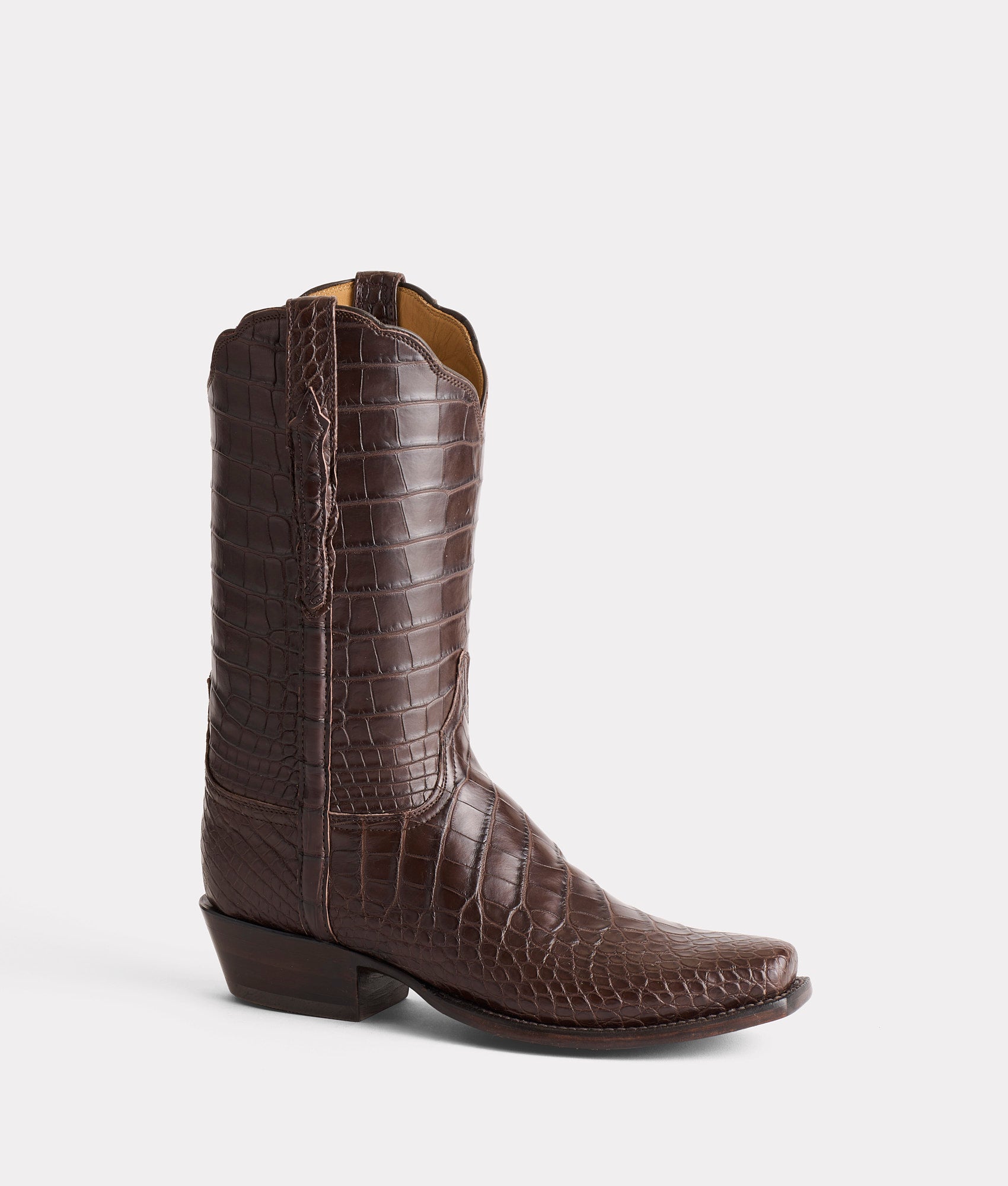 Lucchese Bootmaker's Baron stands as a paragon of luxury footwear, meticulously handcrafted from the finest American alligator leather. This premium material undergoes a rigorous tanning process, encompassing nearly 100 individual steps, ensuring both its exceptional quality and durability. Tanned entirely in the USA, each piece of leather is center cut, chosen for its unparalleled quality and texture. These full top and bottom alligator boots are painstakingly assembled by Lucchese's most skilled artisans, transforming them into more than just footwear, but a form of wearable art.  Designed for the most discerning clients, the Baron Boot is an heirloom-quality masterpiece, embodying the pinnacle of American craftsmanship and elegance.