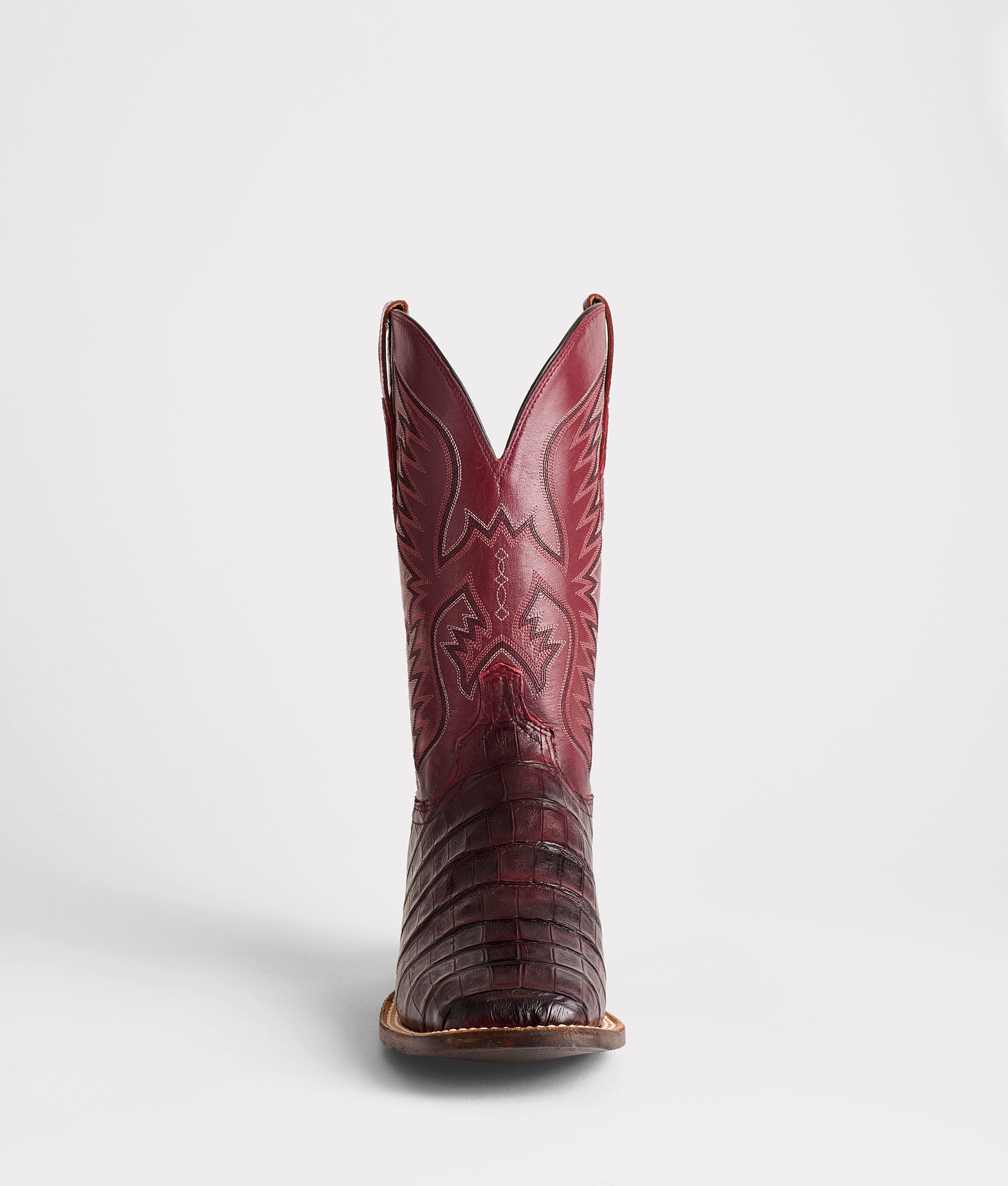 A modern reflection of Lucchese's equestrian and cowboy legacy, the Bryan Exotic is a time-honored horseman silhouette. Constructed from bias cut Giant Caiman Belly and Ranch Hand leather, the Bryan Exotic offers a refined aesthetic - saddle, stage, and supper ready. Handmade in Texas.