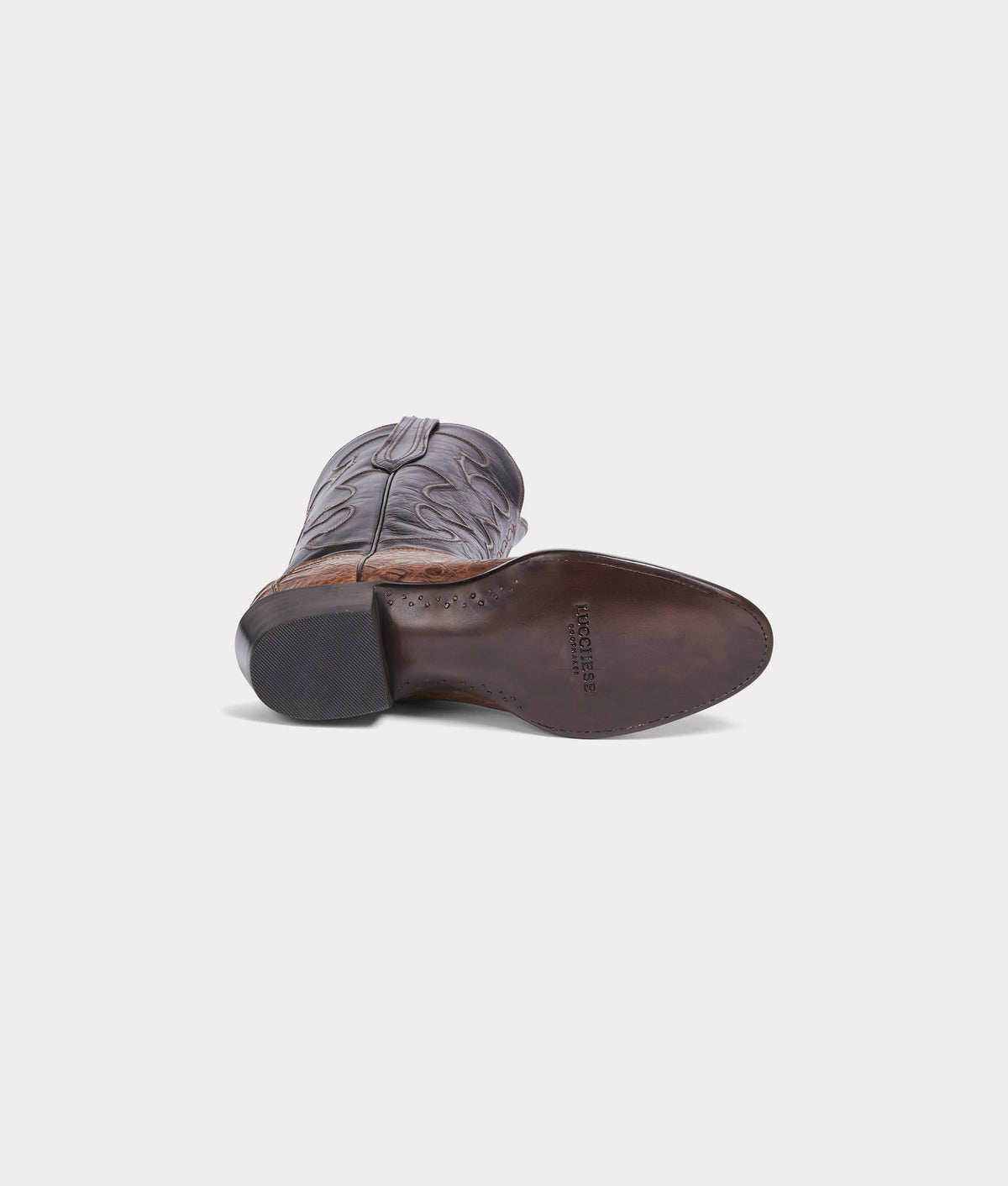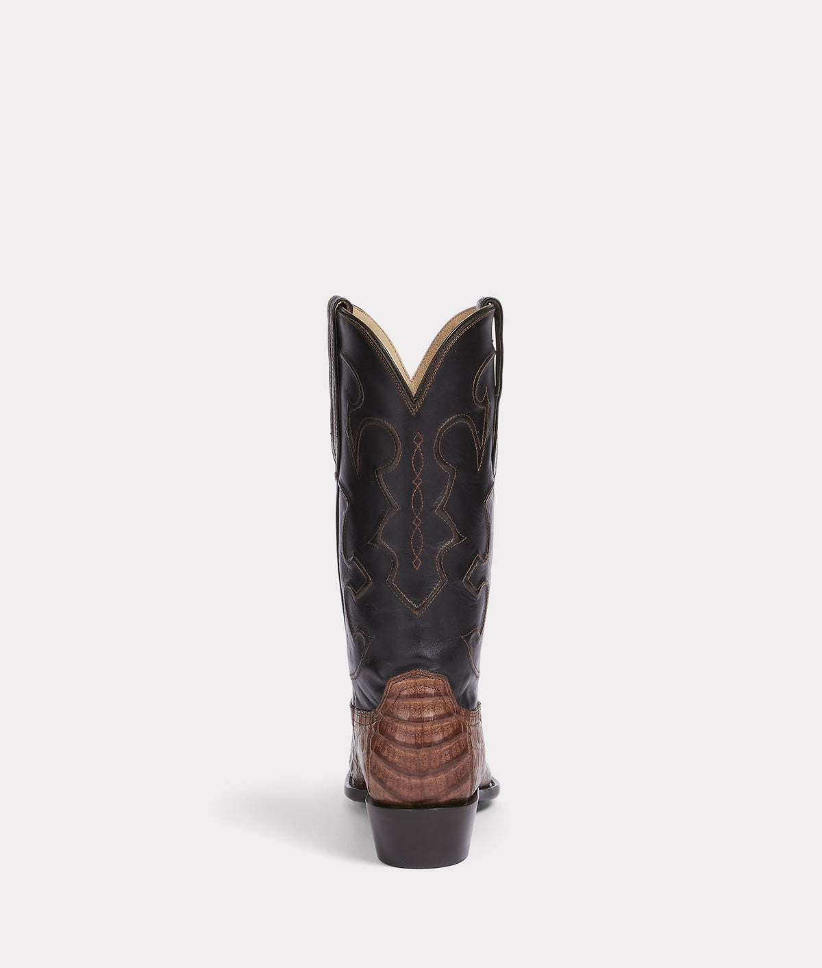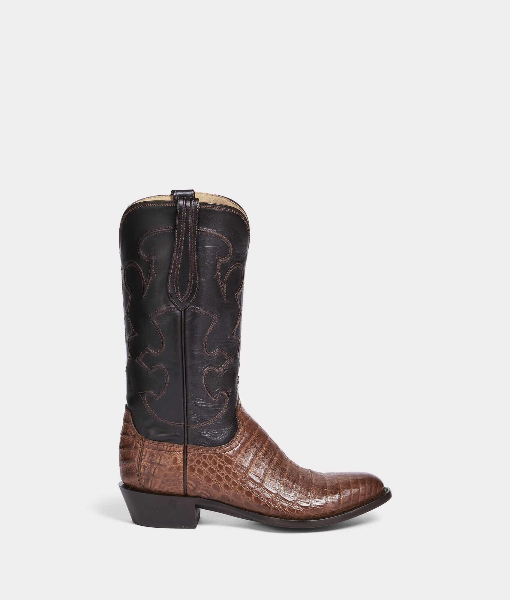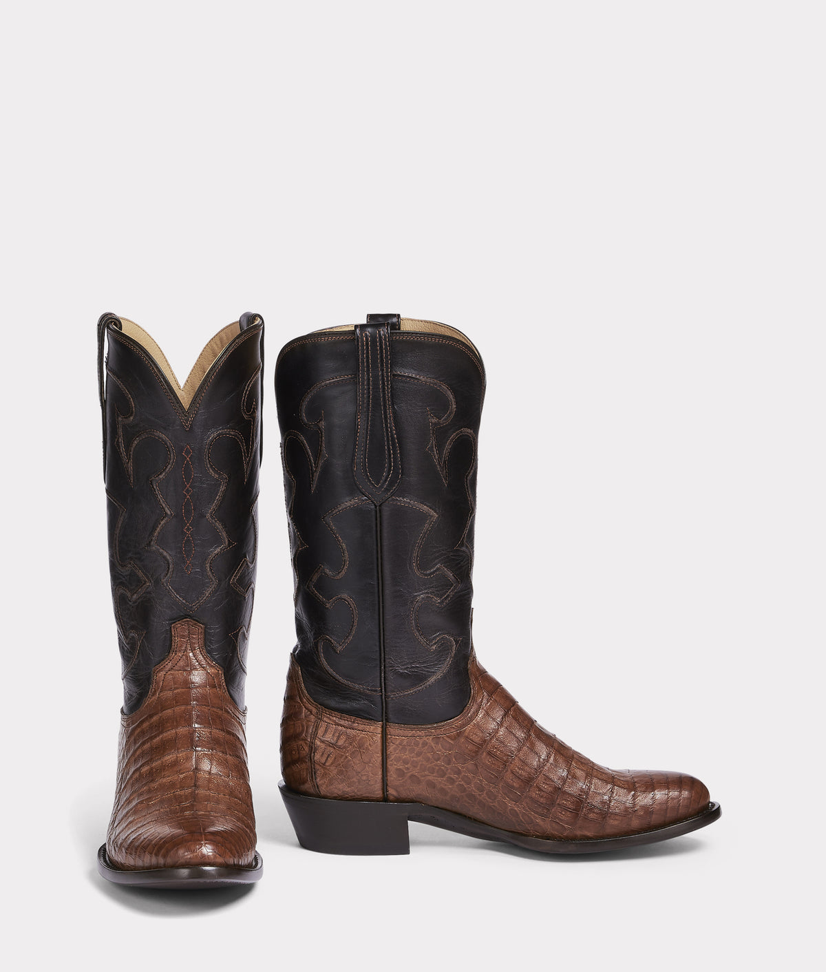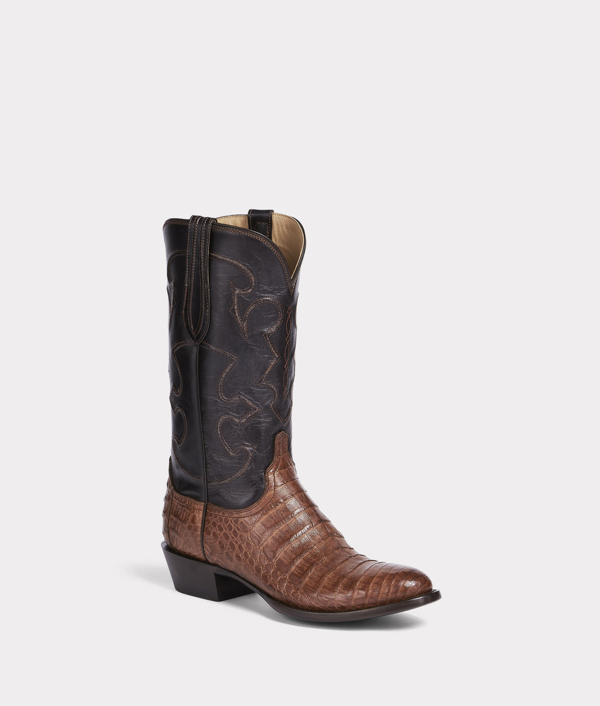 Elevate your repertoire with the Charles. Carefully crafted from the richest Ultra Belly Caiman, this Western-styled cowboy boot is coupled with an elegant cording pattern upon its shaft. A semi-gloss finish achieves a look of Western sophistication.