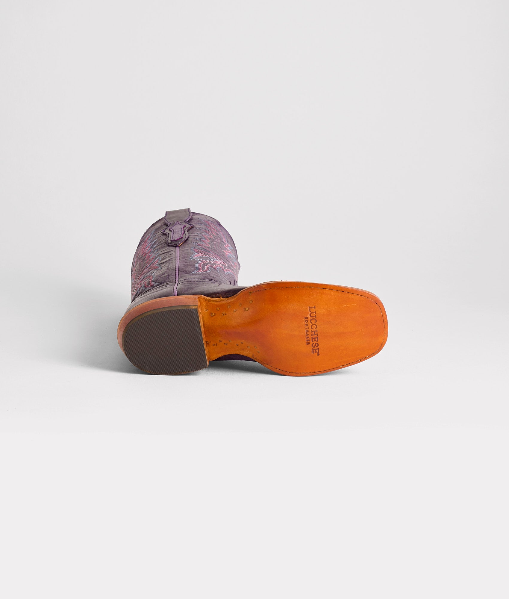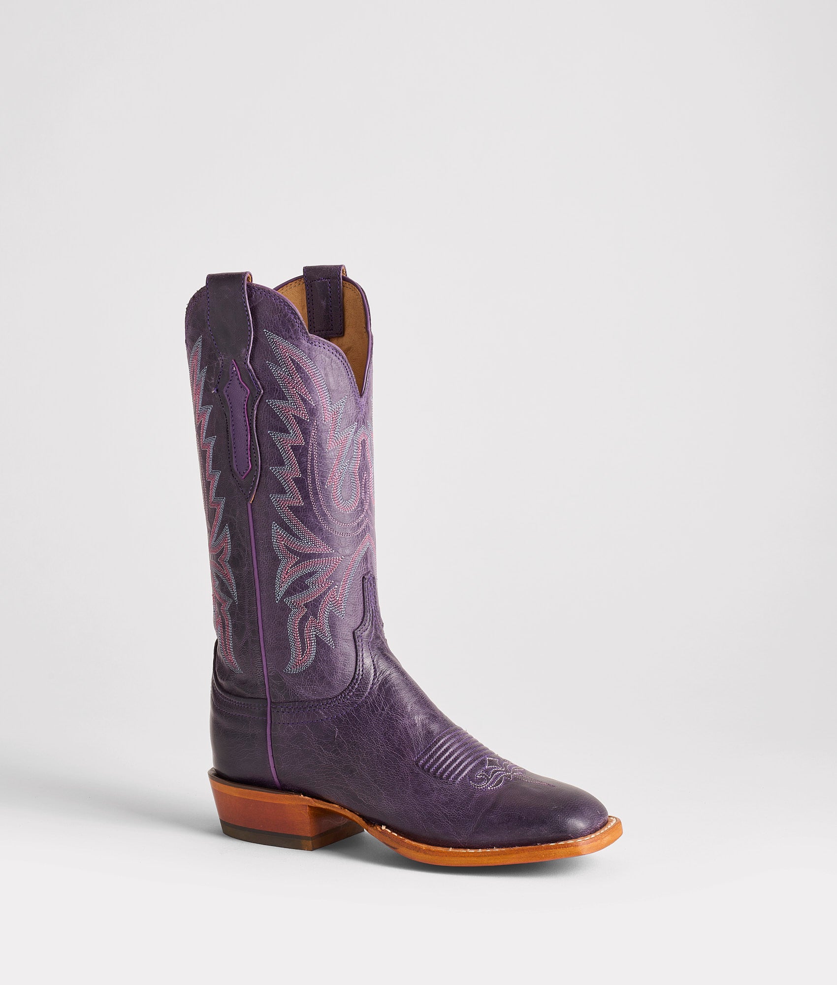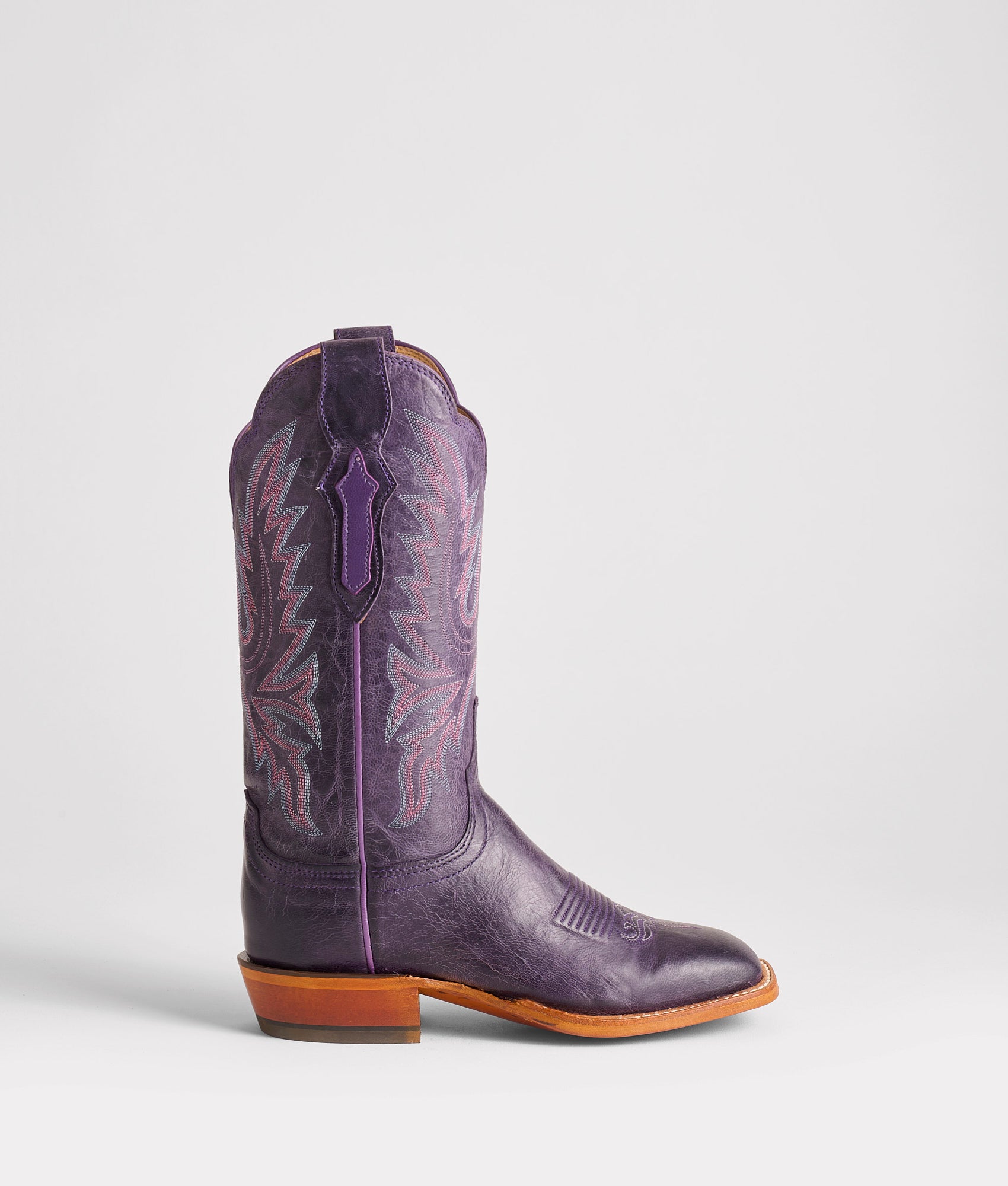 The Savannah Horseman embodies the rugged strength of the working West, reimagined through the lens of modern femininity. Inspired by her pointed-toe predecessor, the original Savannah, this rendition trades delicate refinement for enduring resilience. Featuring a square toe and a sturdy silhouette, she’s designed for women who live the Western way. Crafted from Mad Dog Goat leather, her high-low color pops through the distinct, natural grain. Handmade in Texas.