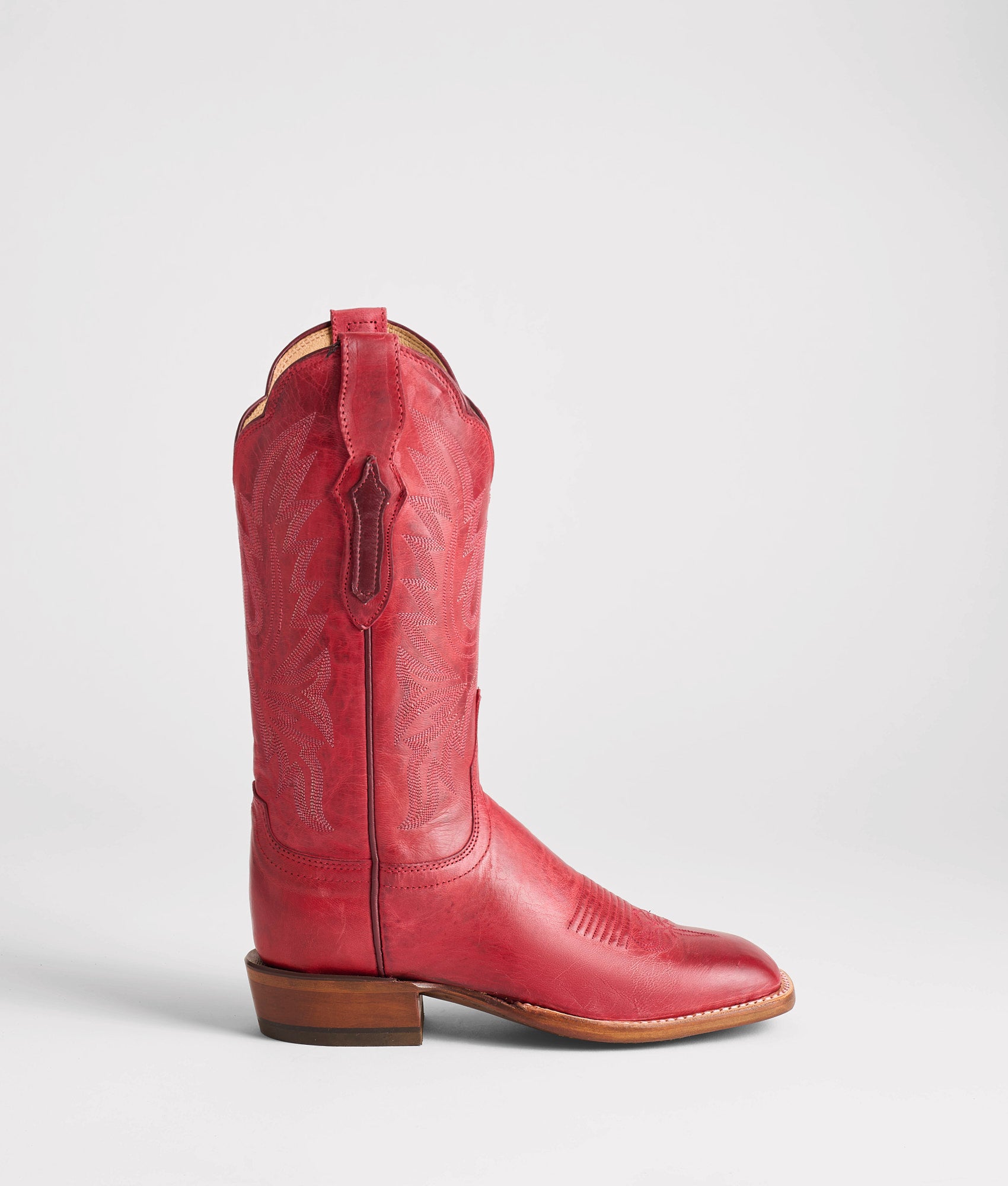 The Savannah Horseman embodies the rugged strength of the working West, reimagined through the lens of modern femininity. Inspired by her pointed-toe predecessor, the original Savannah, this rendition trades delicate refinement for enduring resilience. Featuring a square toe and a sturdy silhouette, she’s designed for women who live the Western way. Crafted from Mad Dog Goat leather, her high-low color pops through the distinct, natural grain. Handmade in Texas.