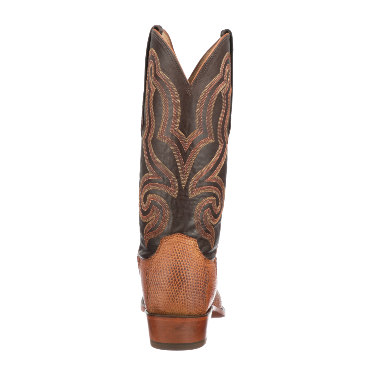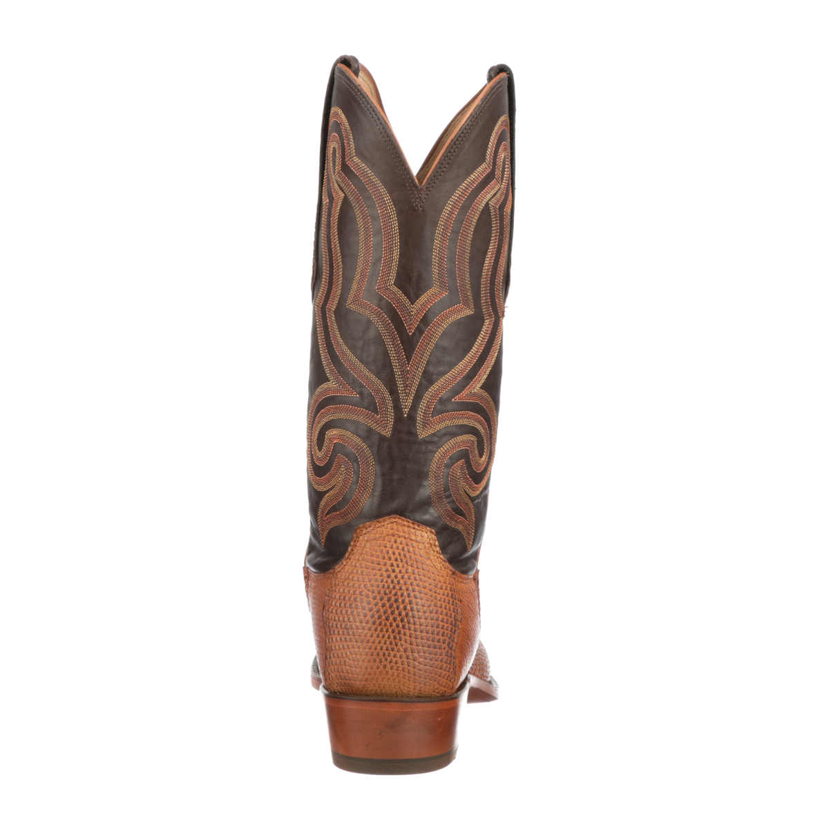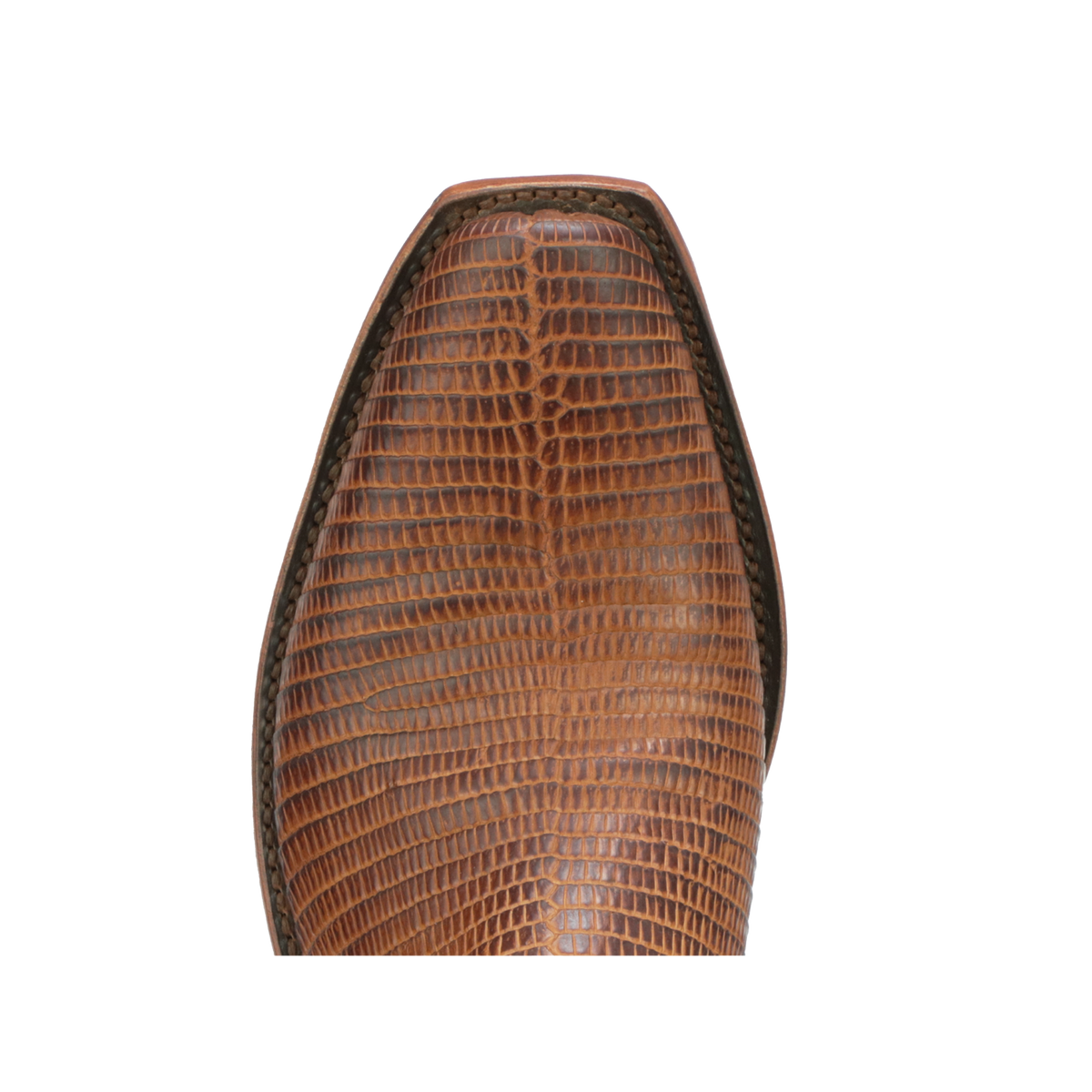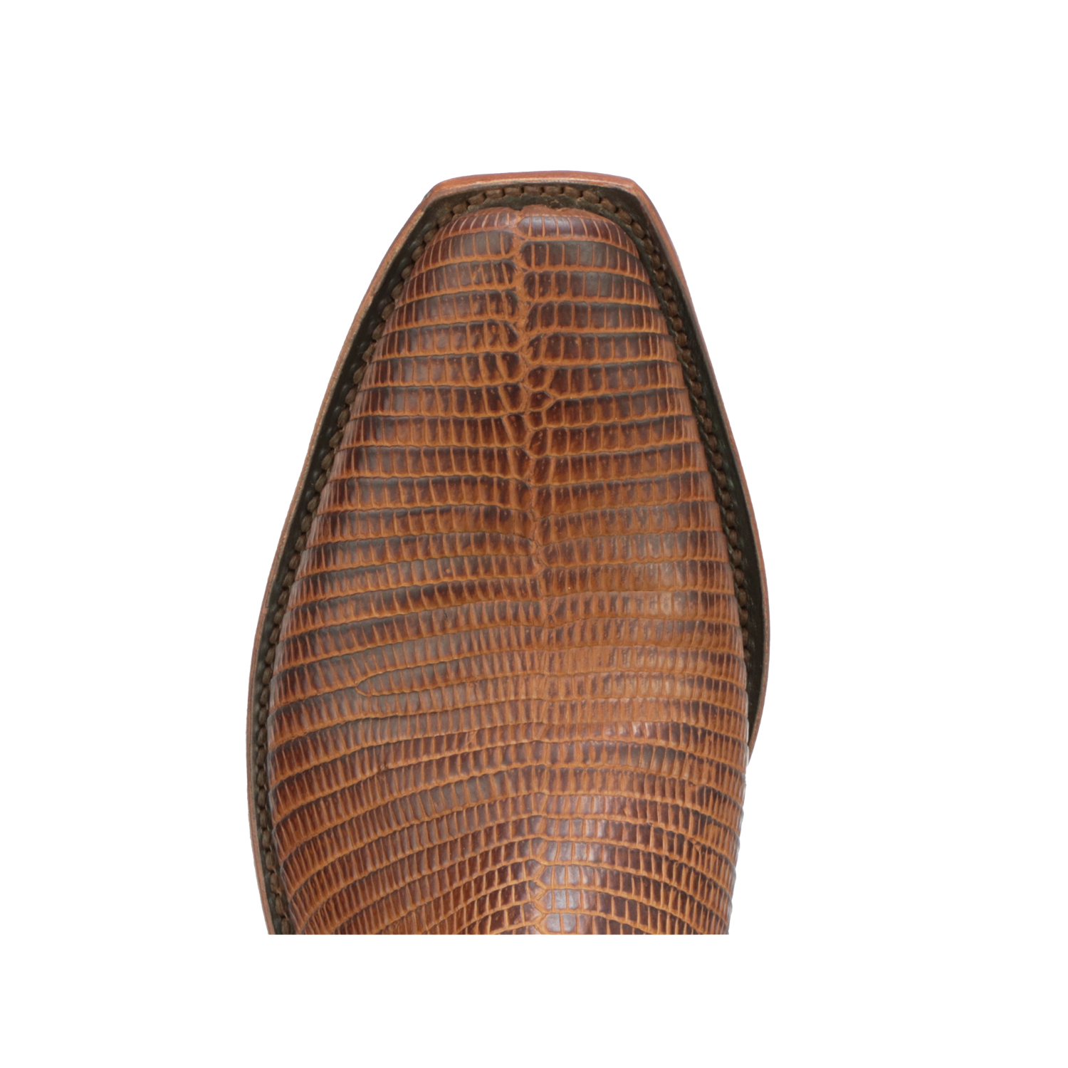 Easton is an exotic stunner handcrafted from hand stained Ring Lizard leather. Western refinement encased in a cowboy silhouette achieves the blueprint of American sophistication. Exotic overlayed pull straps elevate the overall aura of Easton. Handmade in Texas.