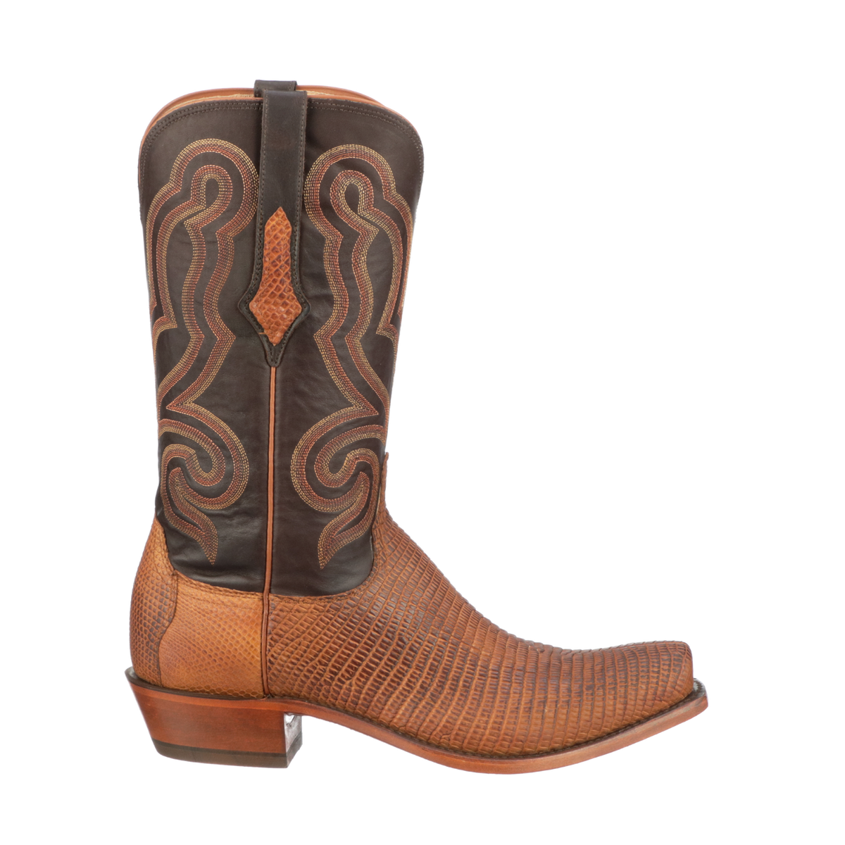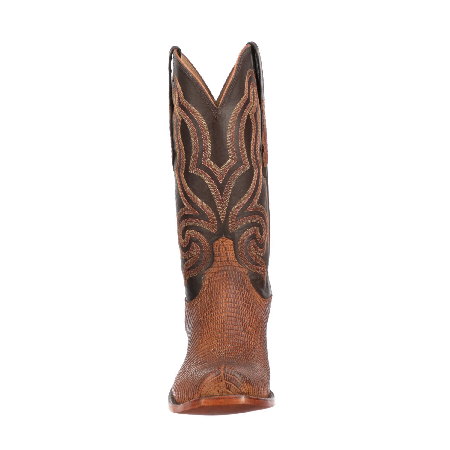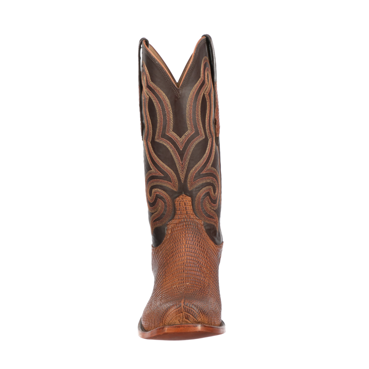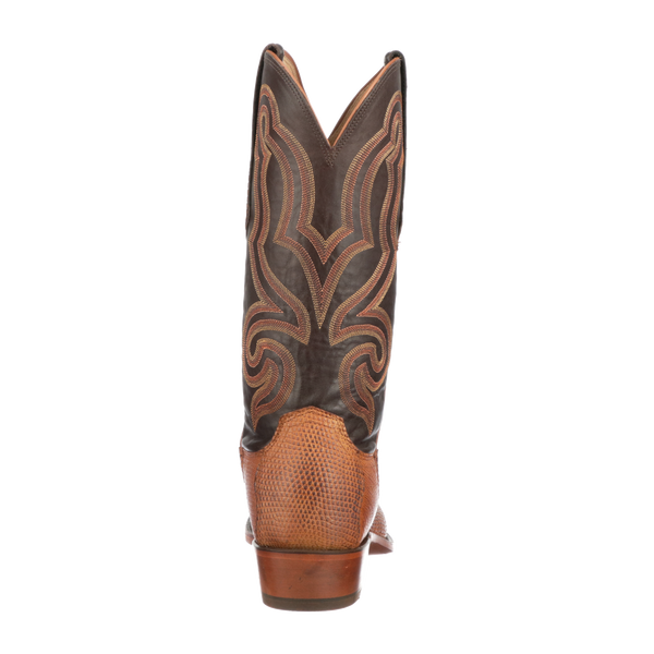 Easton is an exotic stunner handcrafted from hand stained Ring Lizard leather. Western refinement encased in a cowboy silhouette achieves the blueprint of American sophistication. Exotic overlayed pull straps elevate the overall aura of Easton. Handmade in Texas.