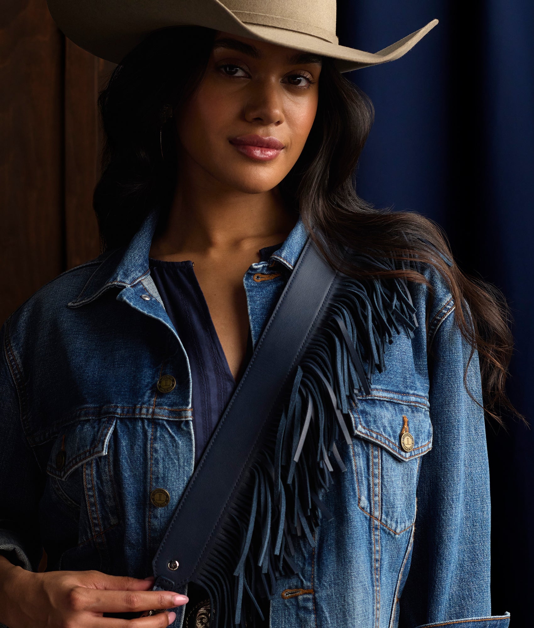 The Fringe Handbag Strap is a fusion of playful charm and game day spirit. Crafted from Italian Nappa leather, this piece features cascading layers of slender fringe that sway with every movement. Draped over the shoulder or held in hand, this strap lends some visual texture and movement to the repertoire.