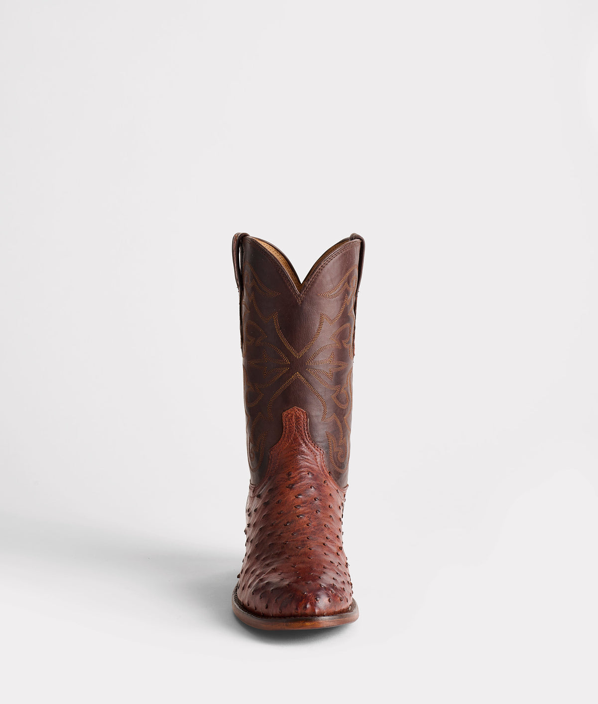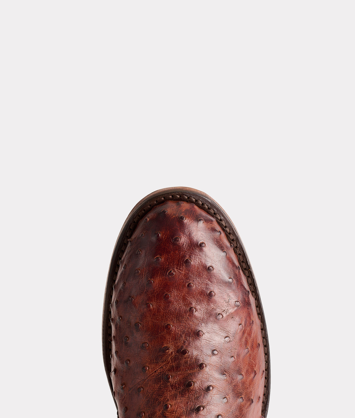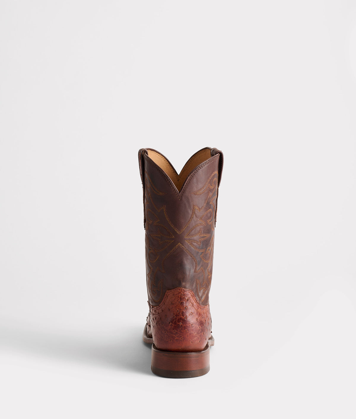 Our No. 1-selling exotic has a prized aesthetic suitable for board meetings and special occasions while also being tough enough for riding and rigorous outdoor activity. Ostrich is supple and molds nicely to the foot. Maximizing quill pattern is something we do more thoughtfully than any other bootmaker. When fit perfectly, full-quill ostrich makes the ultimate cowboy boot.