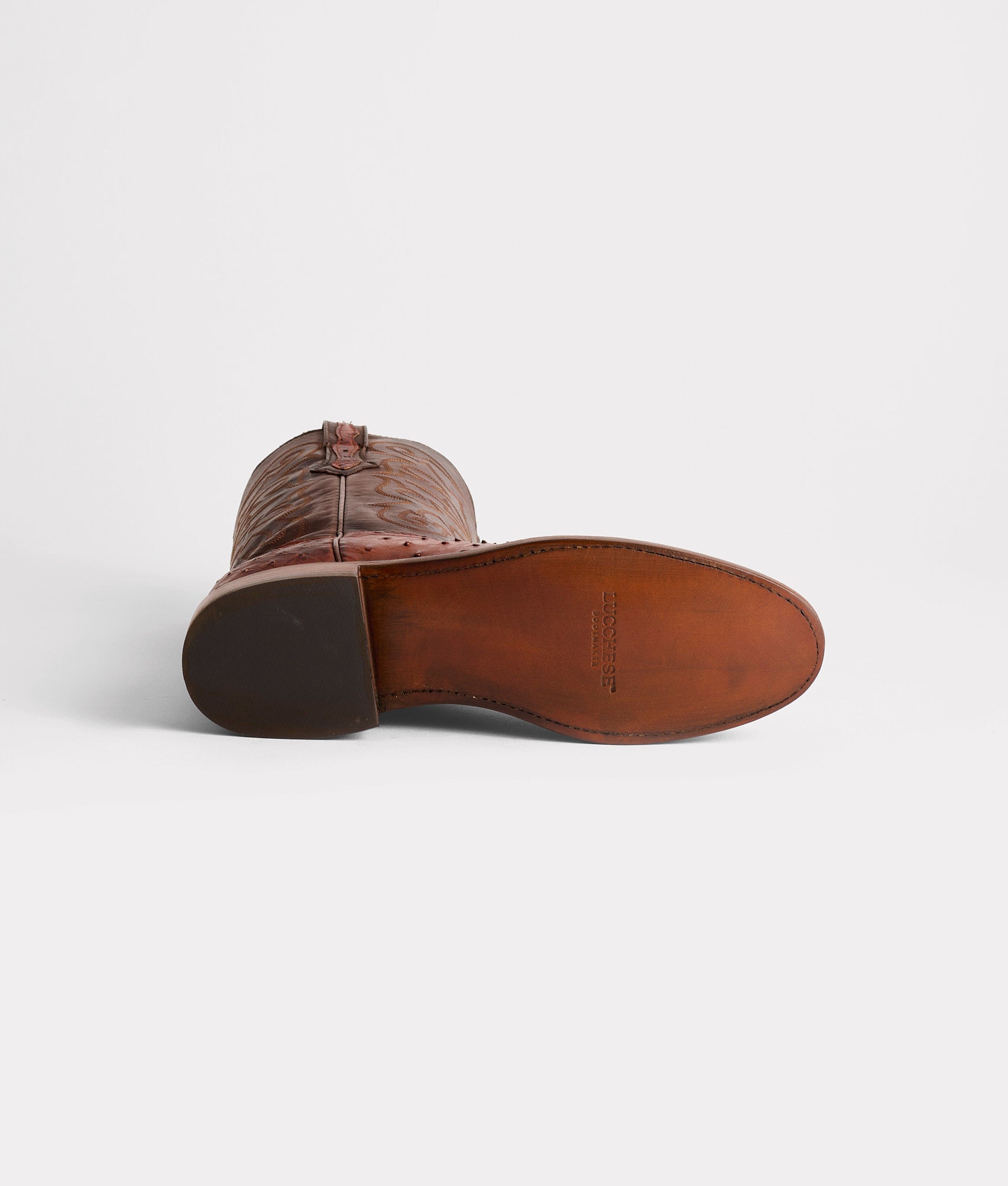The Hudson honors Lucchese’s tradition and ushers to the refined cowboy. While the boot’s silhouette is iconic, the quarters are perfectly crafted with sinuous lines and precision. A beautifully detailed stitch pattern is adorned with exotic overlayed pull straps. Each vamp of this roper has been hand-stained with rich, bright color – harking back to classic cowboy hues. Handmade in Texas