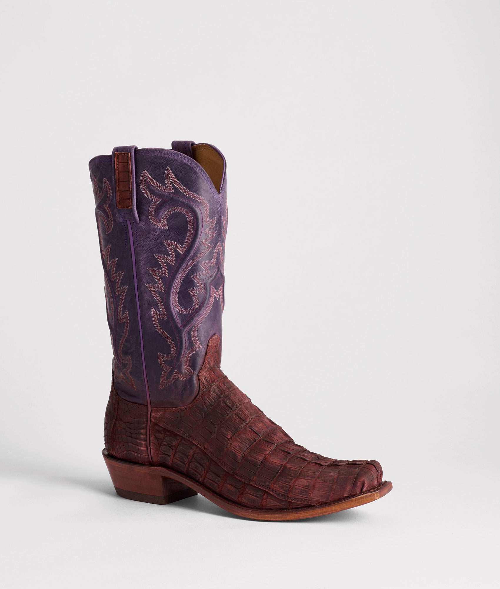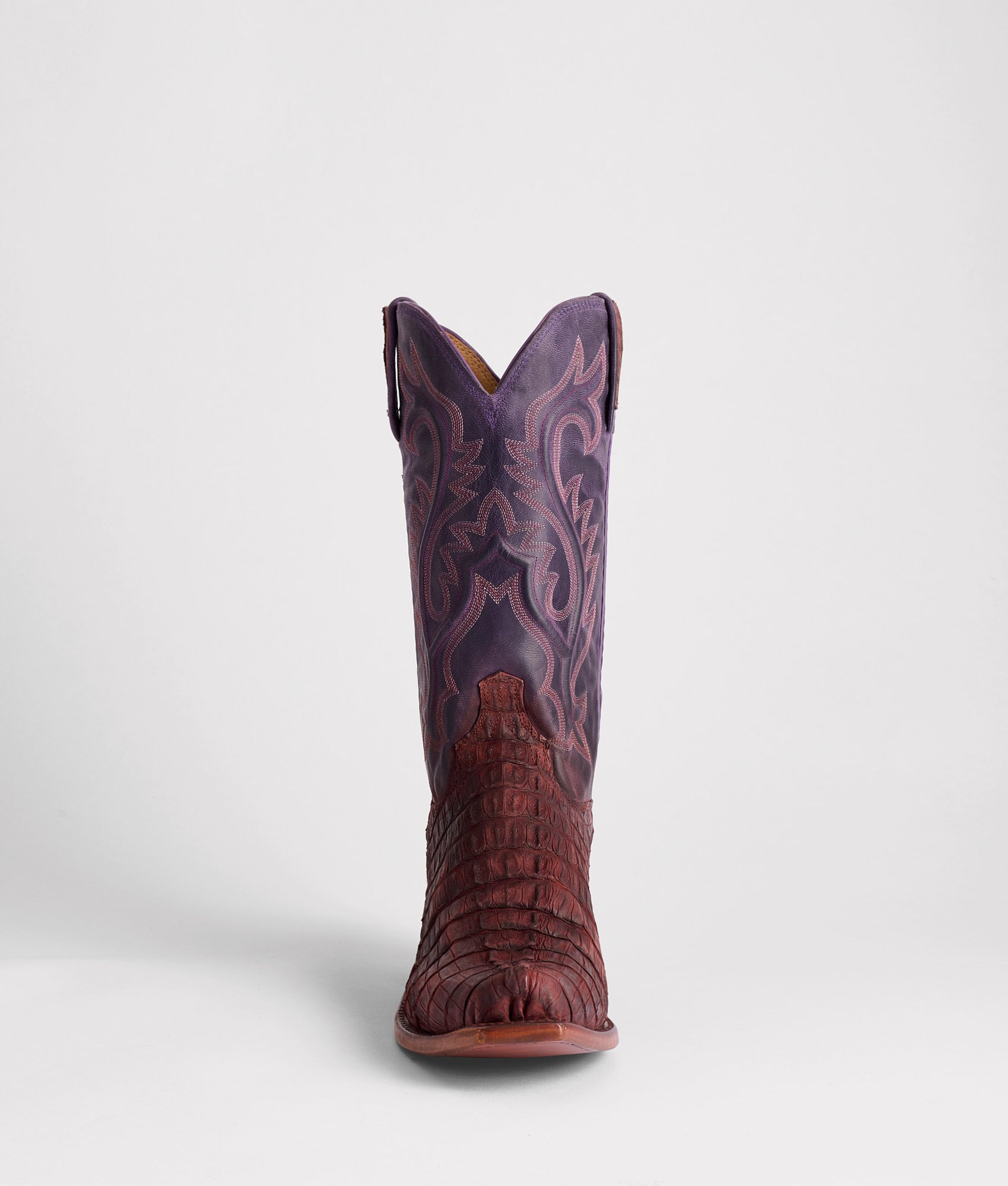 In 1883, the first recorded rodeo in history took place in Pecos, Texas, a defining moment for Western tradition and for every cowboy who’s spent a lifetime earning their way into the arena. Just beyond that historic ground runs HWY 285, the namesake of our newest boot and a tribute to the miles of quiet work that happen long before the crowds ever gather. To honor that, we’re introducing a brand-new leather to the Lucchese line: Sueded Hornback Caiman, a remarkable dichotomy of pairing a velvety suede finish with the rugged ridges of Hornback Caiman. Handmade in Texas.