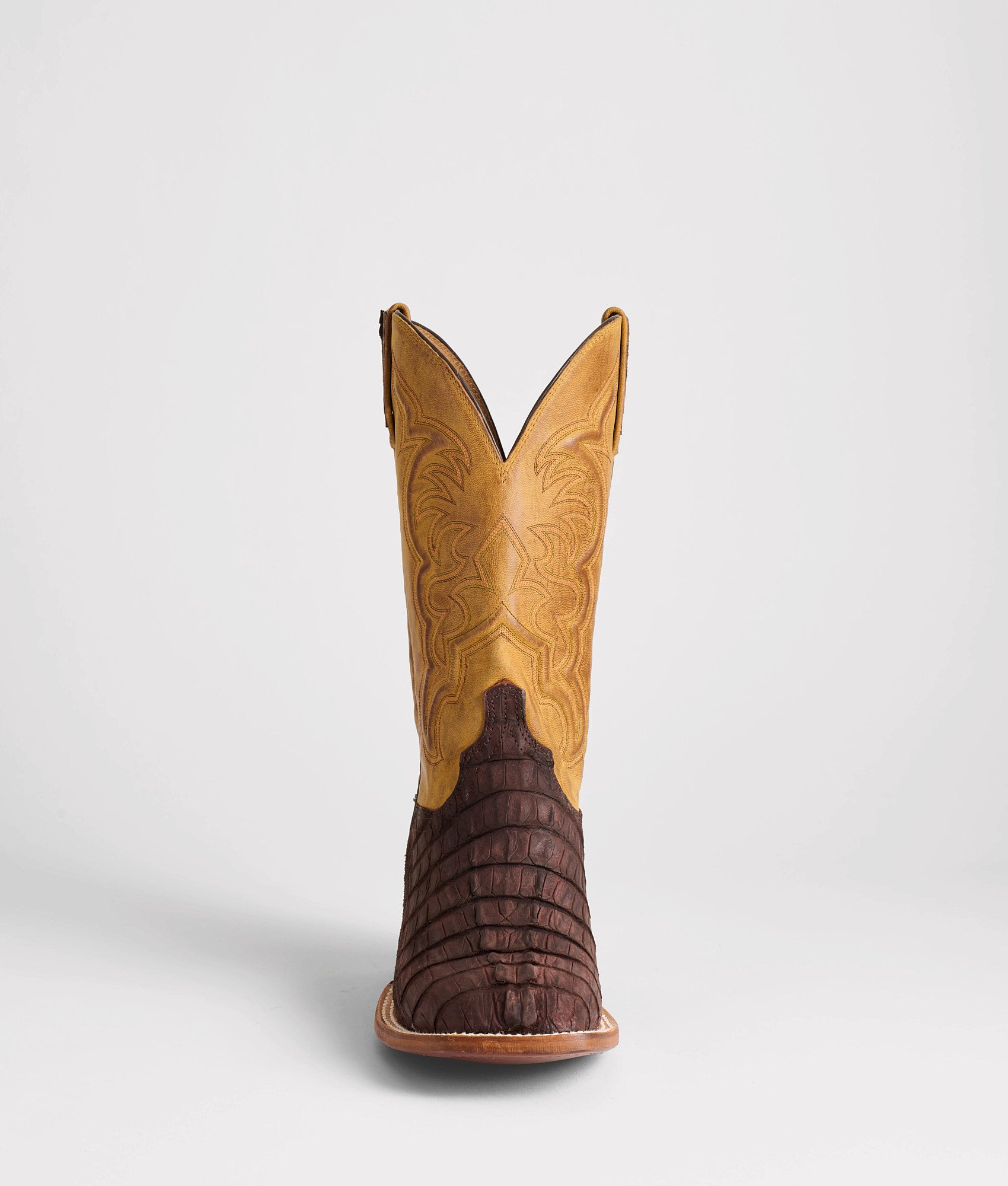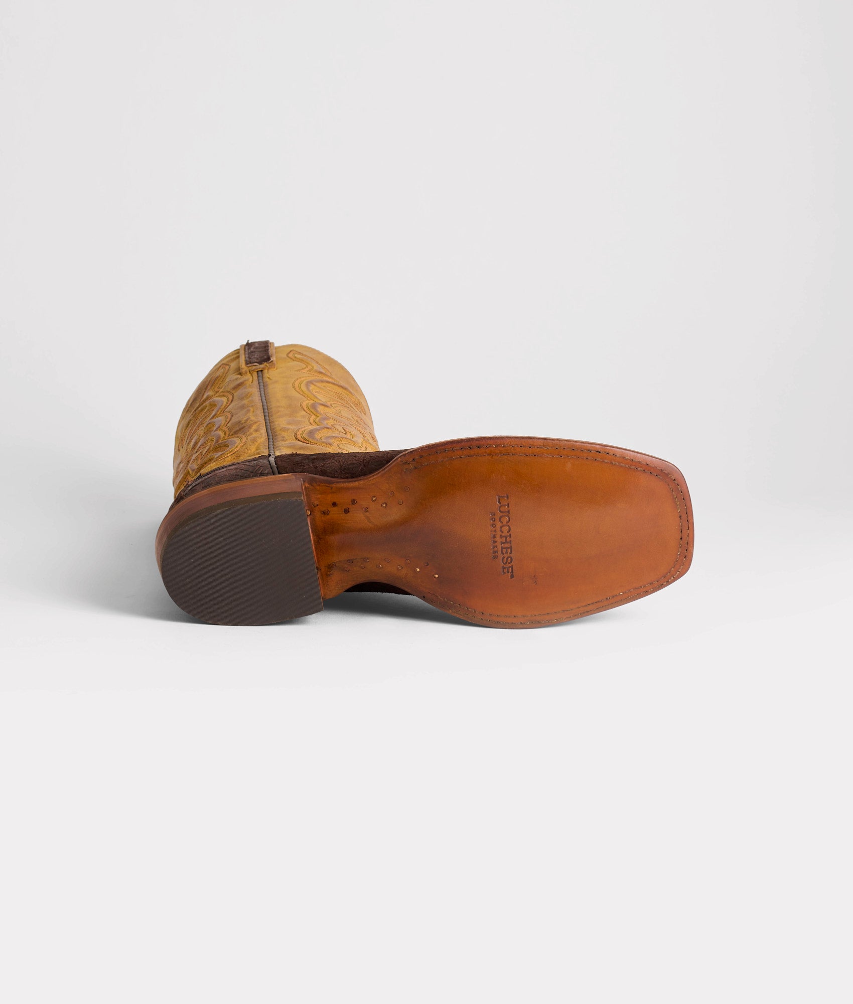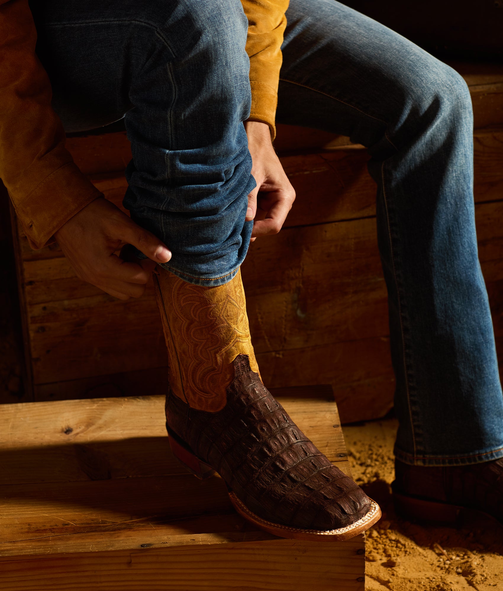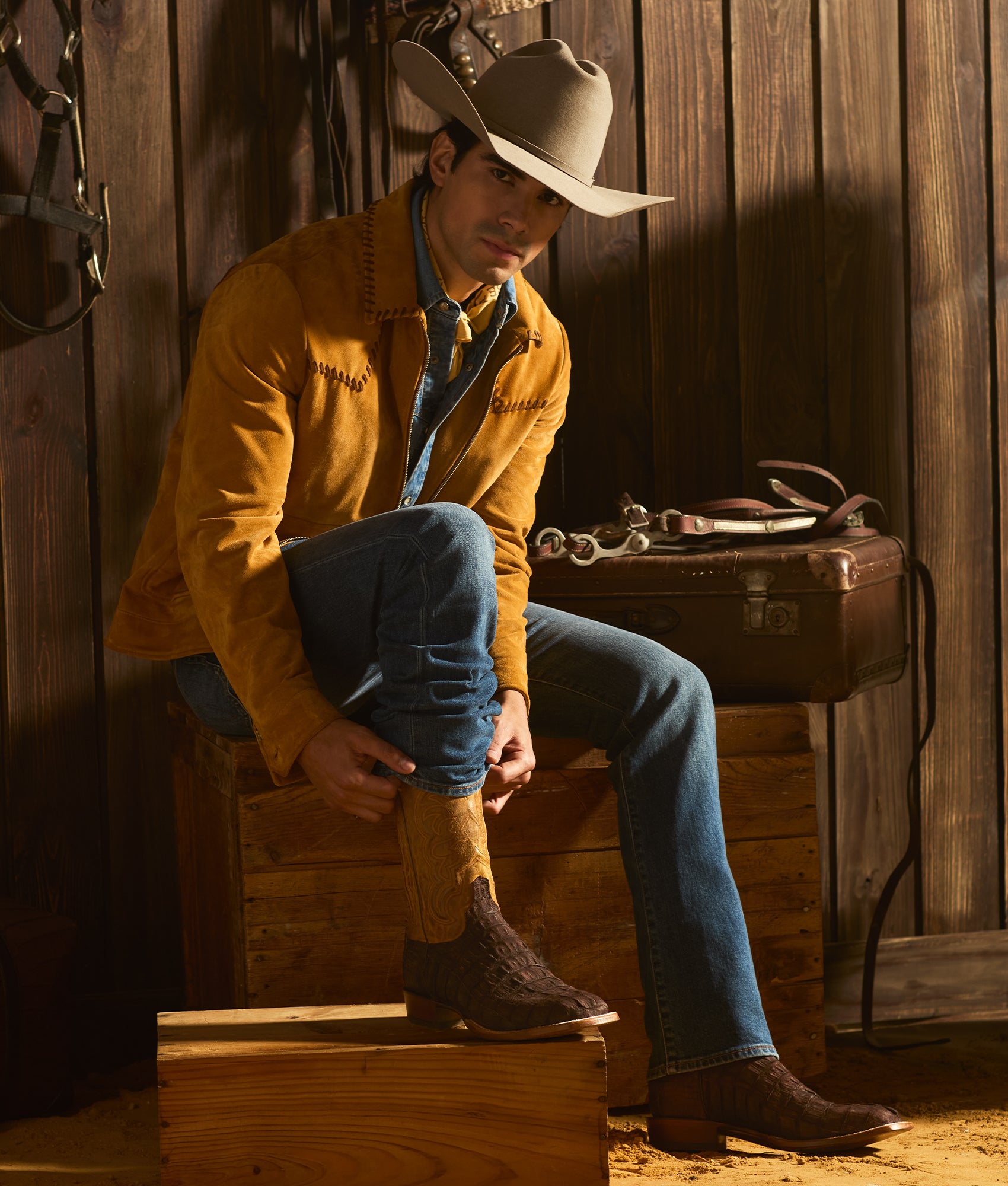 In 1883, the first recorded rodeo in history took place in Pecos, Texas, a defining moment for Western tradition and for every cowboy who’s spent a lifetime earning their way into the arena. Just beyond that historic ground runs HWY 285, the namesake of our newest horseman and a tribute to the miles of quiet work that happen long before the crowds ever gather. To honor that, we’re introducing a brand-new leather to the Lucchese line: Sueded Hornback Caiman, a remarkable dichotomy of pairing a velvety suede finish with the rugged ridges of Hornback Caiman. Handmade in Texas.