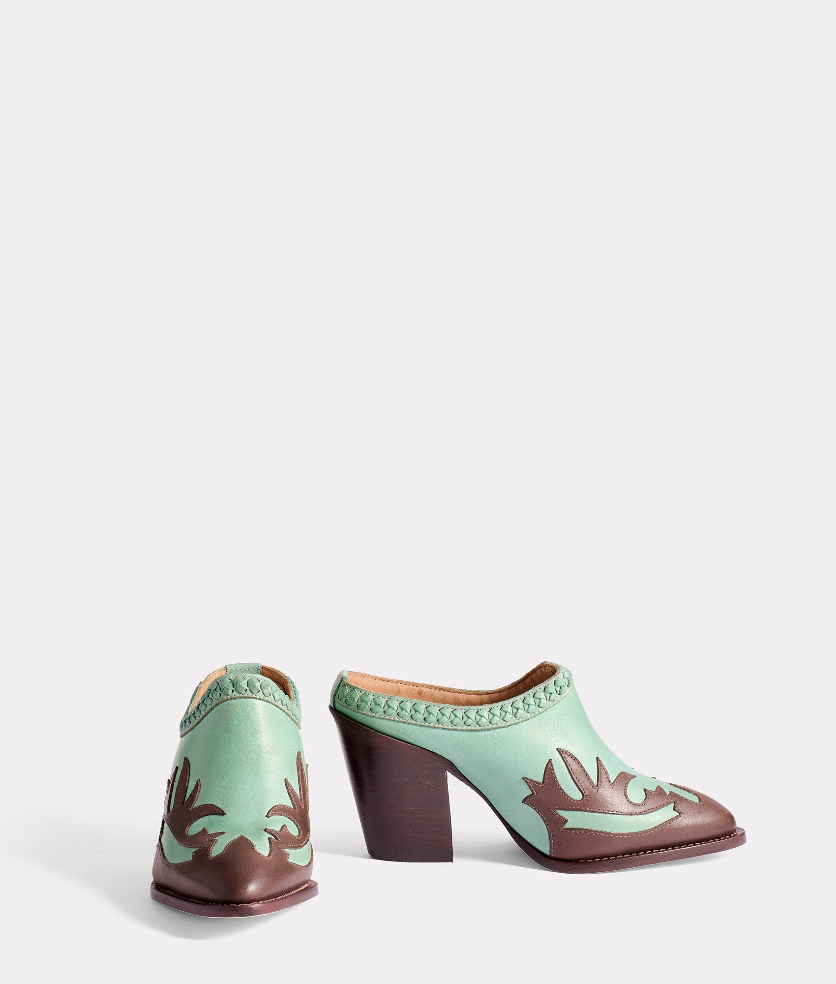 The newly released sister of popular Patti, this midheel mule is a gorgeous addition to any wardrobe. Handmade from supple cowhide, Patti II blends contemporary styling with a Western whipstitch and contrasting wingtip in one fashion-forward shoe.