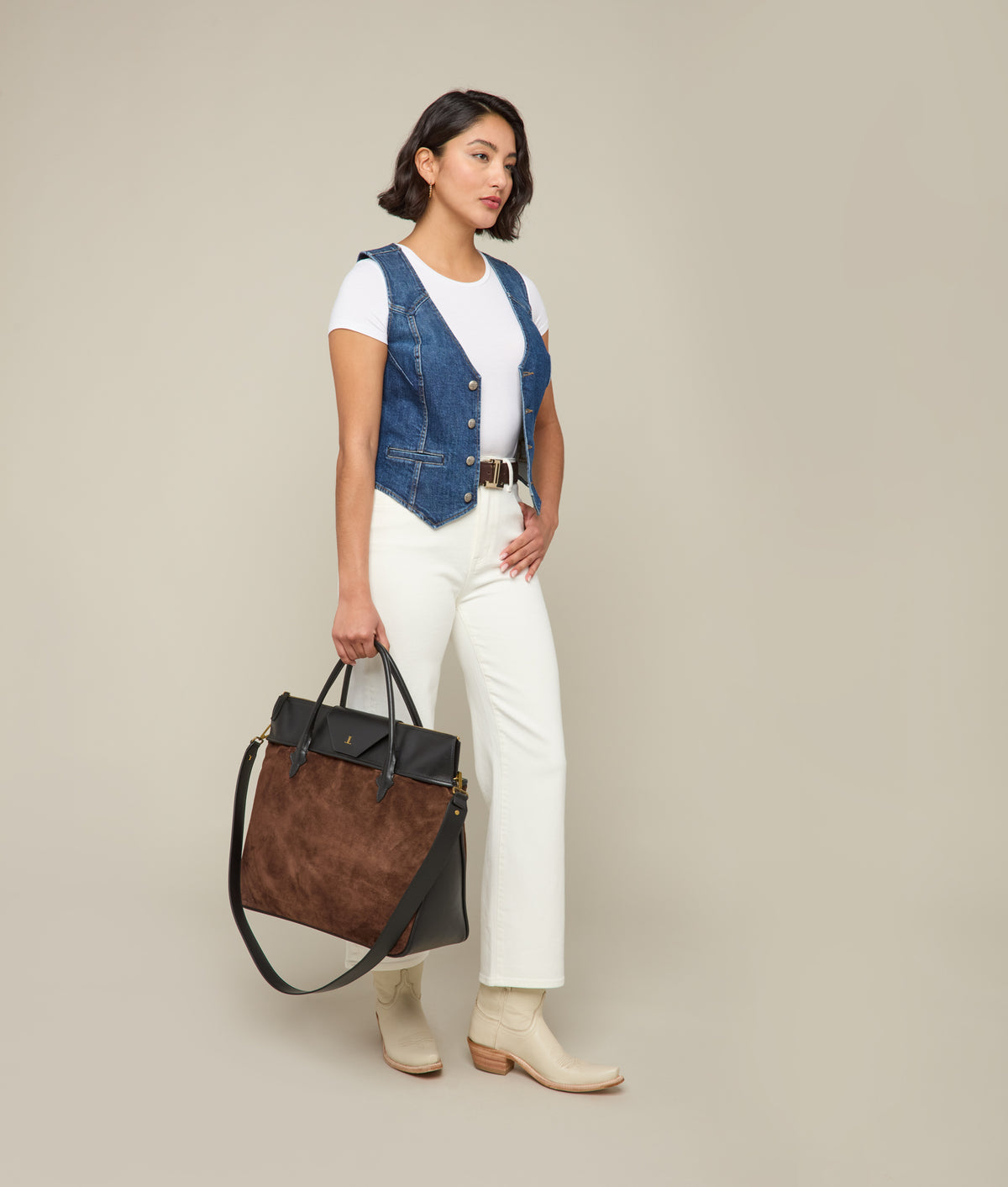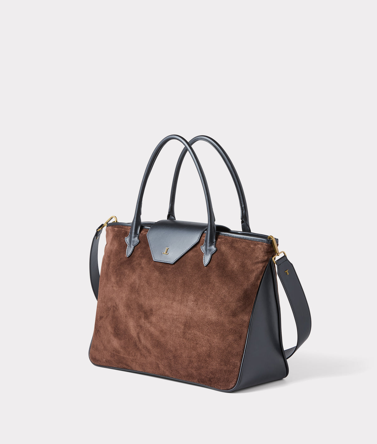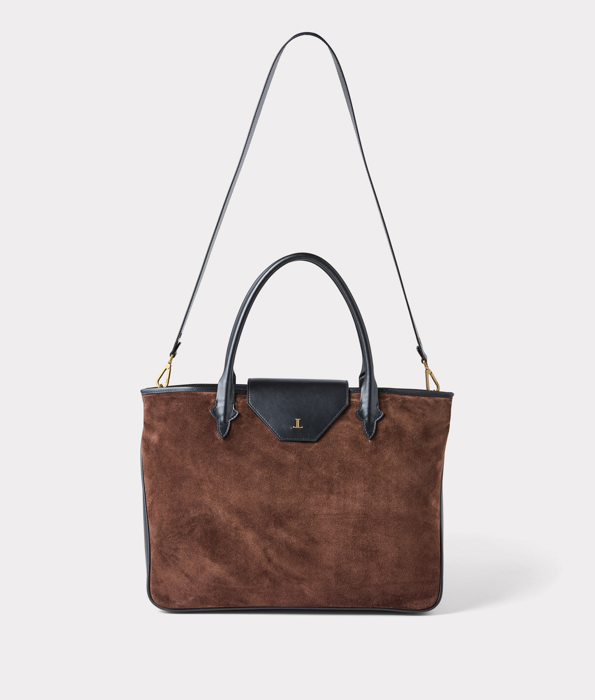 Intelligently designed with elevated style to hold all of your must-have essentials, the Large Roma Suede Tote is handcrafted from exquisite Italian Calf Suede. Accented with brushed gold hardware, the Italian Nappa trim features a top separated zipper that can be fully unzipped to fit a large laptop or folded down creating a shopper style tote. Carry by hand or on the shoulder with the matching strap, this carry-all travel tote is both versatile and functional. This Lucchese tote comes with a detachable insert that converts to a stylish crossbody bag, ultimately giving you 2 bags in 1. Handmade in Italy