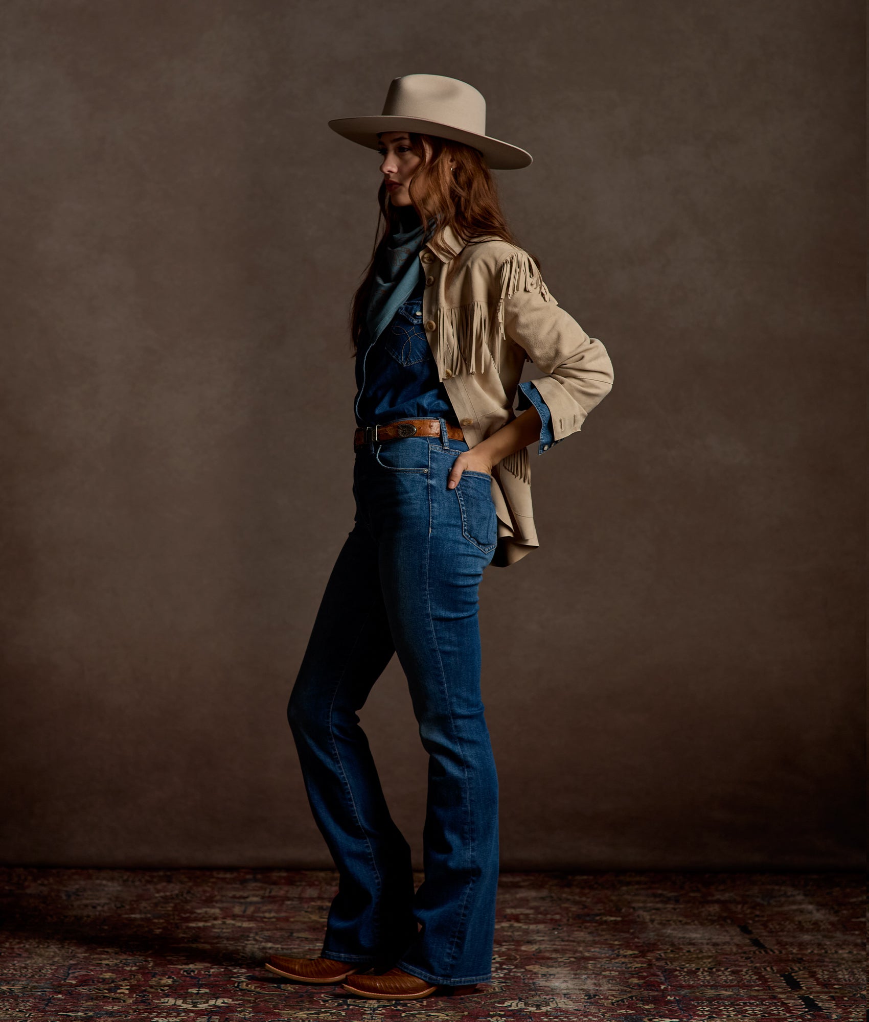 Liberty’s vision came from a time of vintage bootcut jeans. The Mid-Rise waist sits right below the belly button for a versatile aesthetic. From waist to knee, the fit is slim – below the knee, the denim begins to widen for that classic Bootcut fit. An upper thigh suppression built into the denim pattern defines the shape of any repertoire. The high-low color brings out the wash's depth, emphasizing a well-dressed woman's curves. Liberty is cut from luxe Turkish denim that contains a special polyester fiber for a soft hand and ultimate fabric recovery. Liberty has our iconic boot toe medallion embroidered on the back pockets.