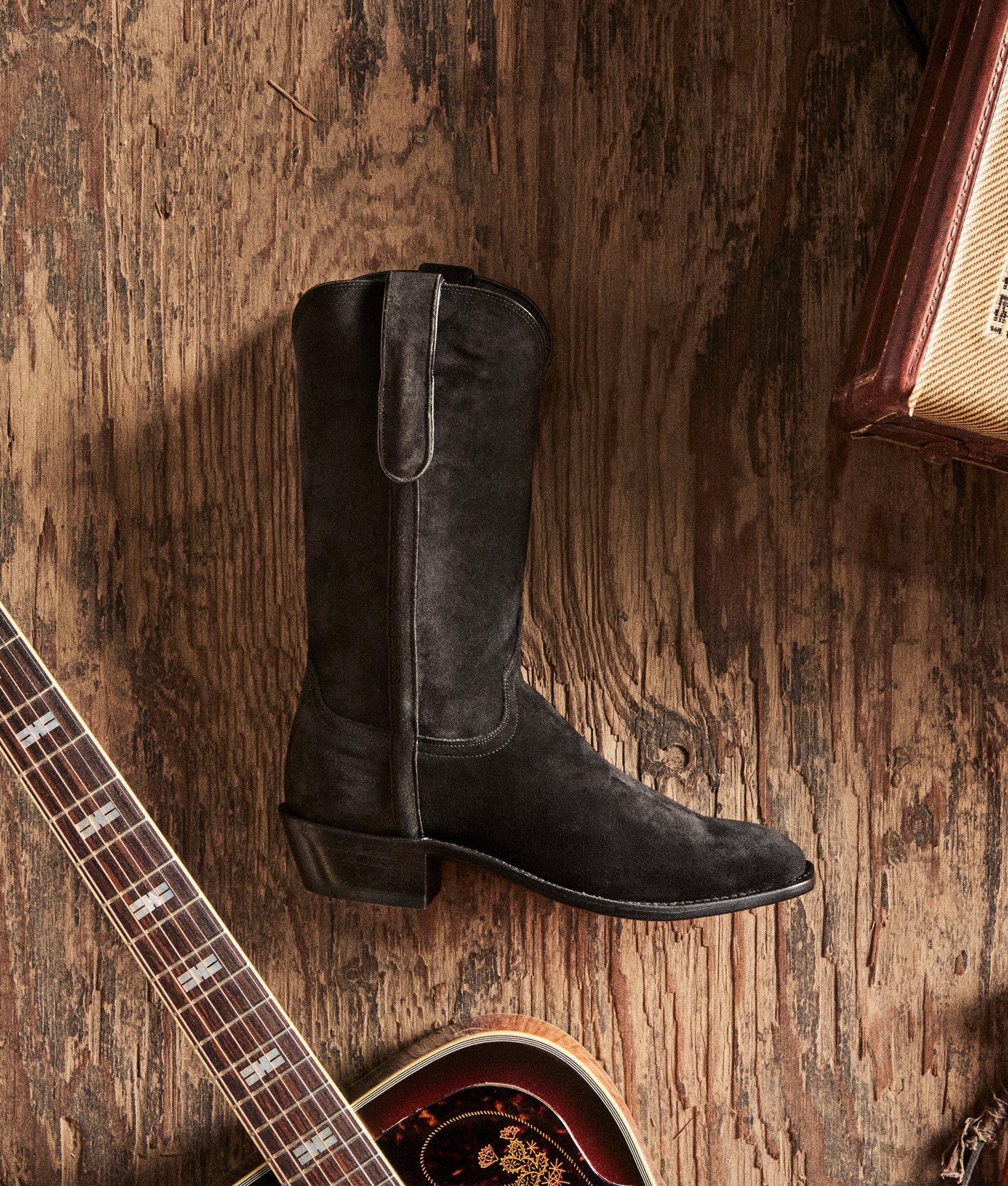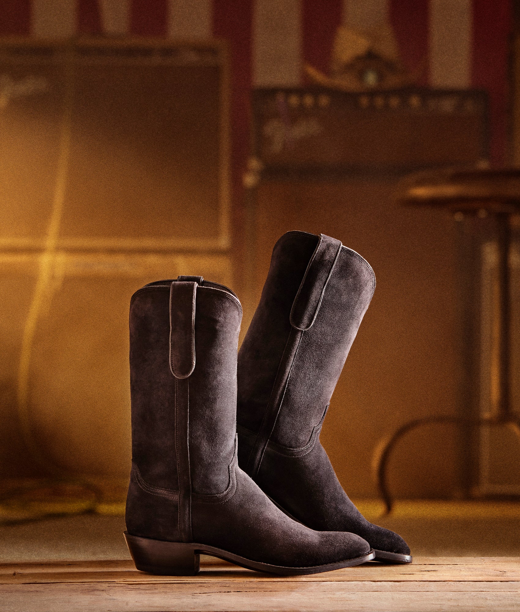 Part of the Chris Stapleton collection, the Old Friend pays homage to Chris' heroes. Rugged in nature and vintage in design, the Old Friend is a piece of the "songwriters’ uniform". This Western silhouette bridges the gap between grit and traditionalism with silky Italian suede and classic Mule Ear pull straps - a Torero side seam lends visual texture to a timeless boot. Handmade in Texas.