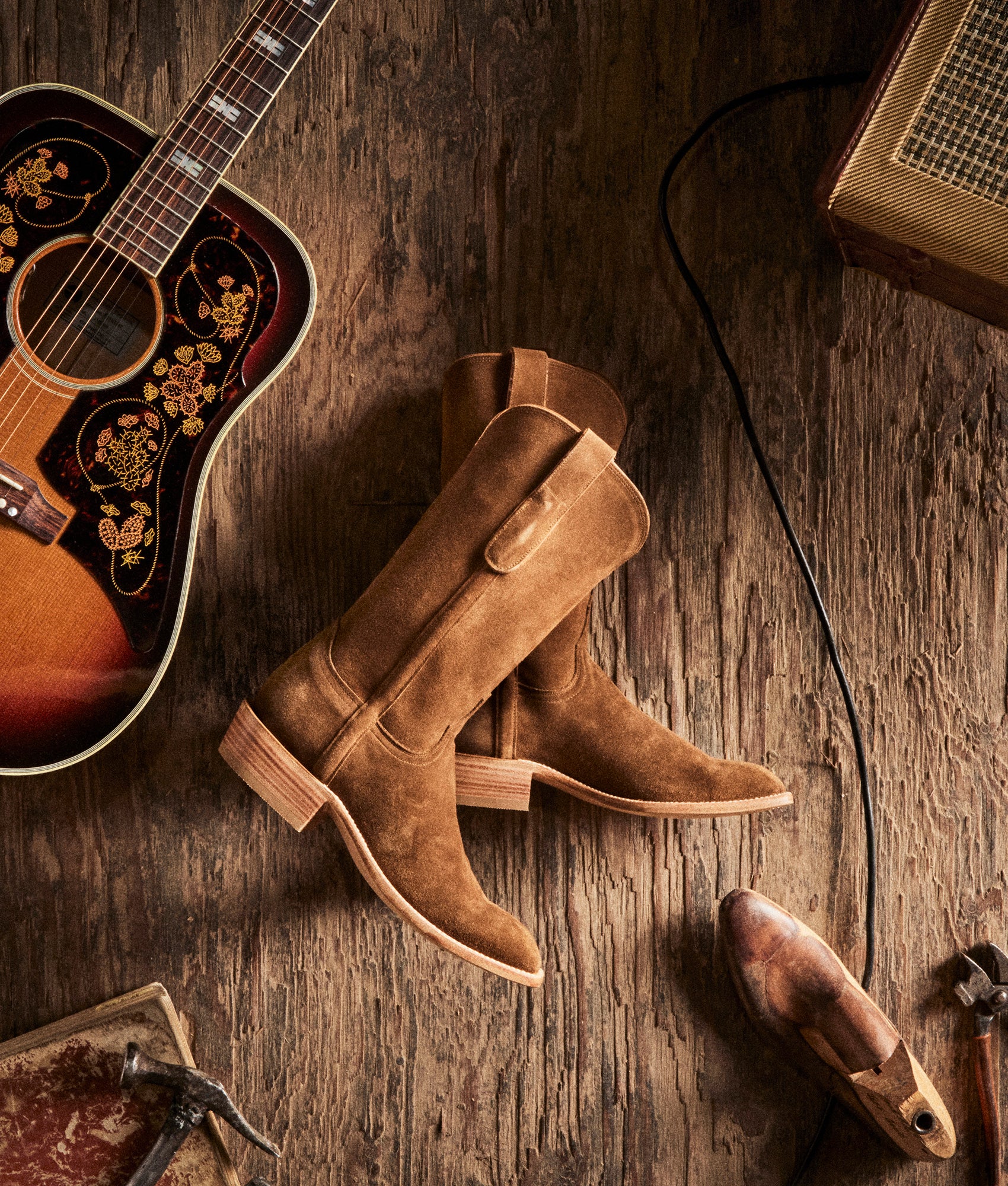 Part of the Chris Stapleton collection, the Old Friend pays homage to Chris' heroes. Rugged in nature and vintage in design, the Old Friend is a piece of the "songwriters’ uniform". This Western silhouette bridges the gap between grit and traditionalism with silky Italian suede and classic Mule Ear pull straps - a Torero side seam lends visual texture to a timeless boot. Handmade in Texas.